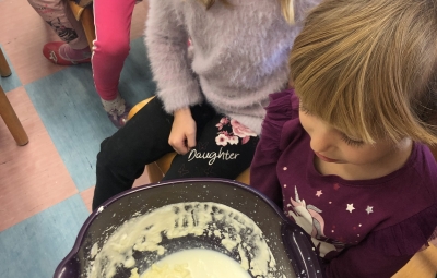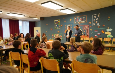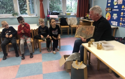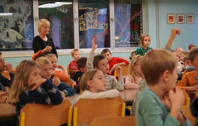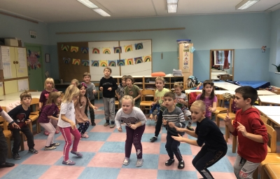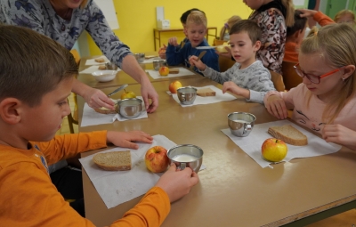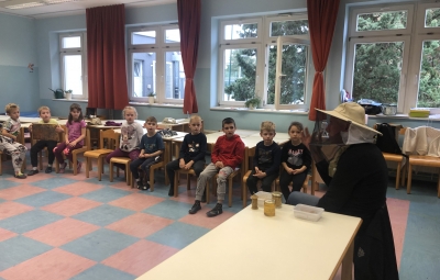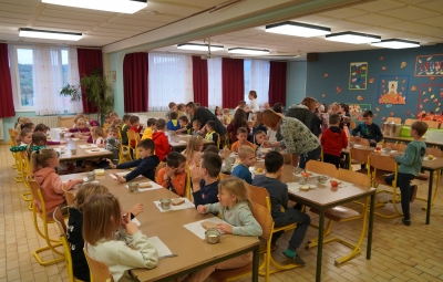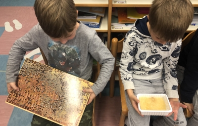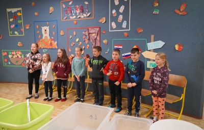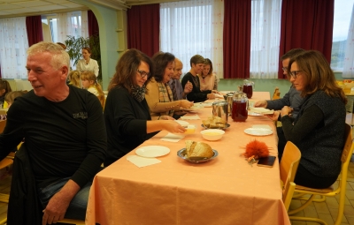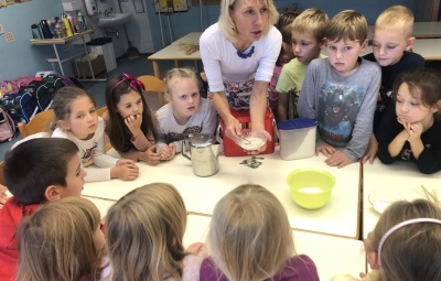 18. novembra smo ob dnevu slovenske hrane na šoli obeležili Tradicionalni slovenski zajtrk. Prvošolci in drugošolci smo se zbrali v jedilnici, kjer nas je pozdravil ravnatelj Uroš Kobal, župan Franc Mužič in ostali predstavniki občine Brda. Učiteljica Klementina Medvešček nam je predstavila pomen dneva in lokalne dobrote, ki smo jih uživali. Po zajtrku smo se odpravili v učilnice, kjer nas je obiskal čebelar Oskar Kristančič, ki nam je predstavil svoje delo in delo čebel. Nadaljevali smo z likovnim ustvarjanjem in čebeljim plesom. Prvošolci pa smo pobližje spoznali še pot od zrna do kruha ter pot mleka in si pripravili jogurt.