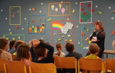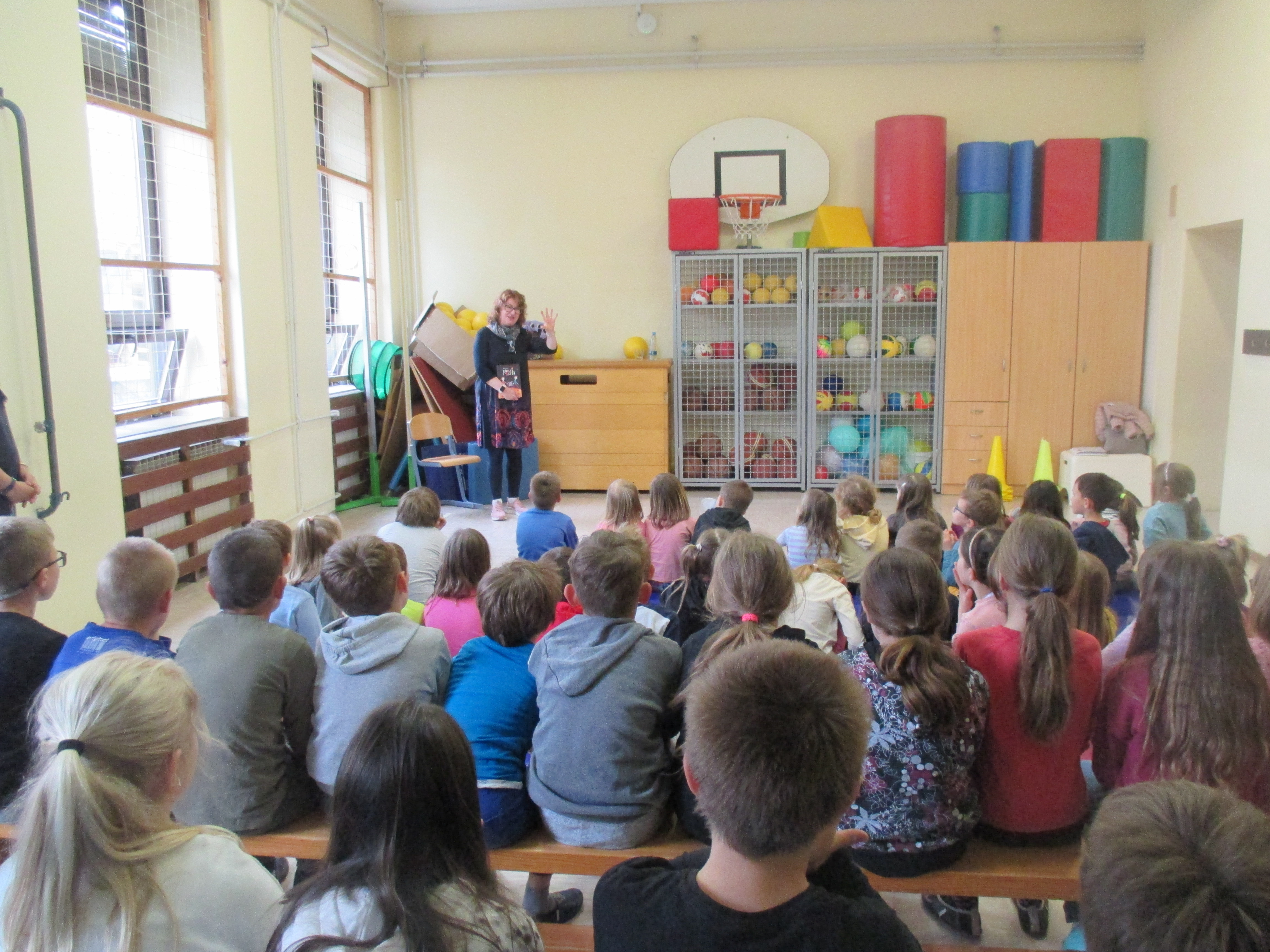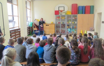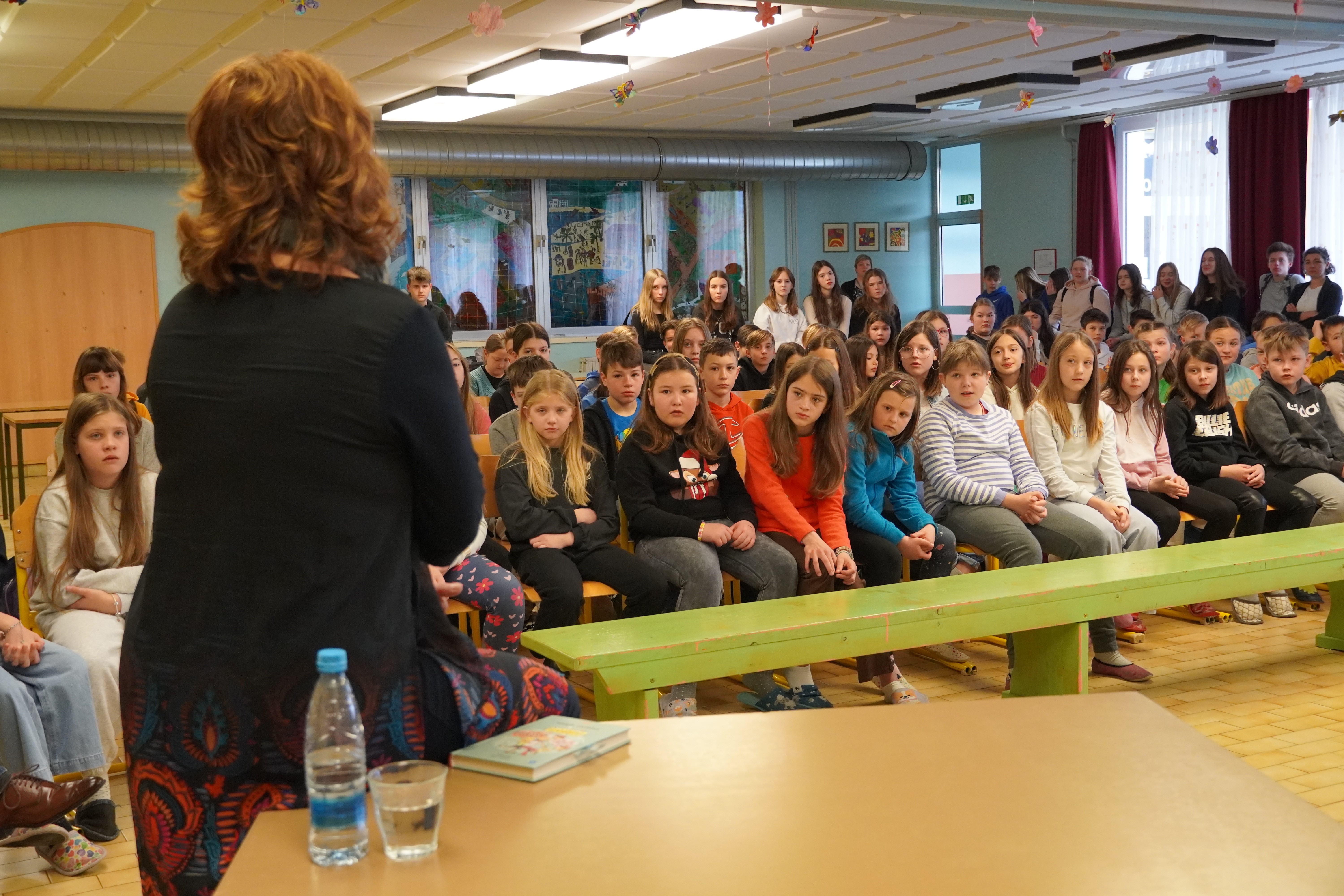 Pisateljica nam je predstavila svoji knjigi Sposojena babica Štefi in Kdo si pa ti?. Navduševala nas je za branje knjig. Prireditev so popestrili naši prvošolci in recitatorji.