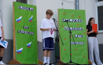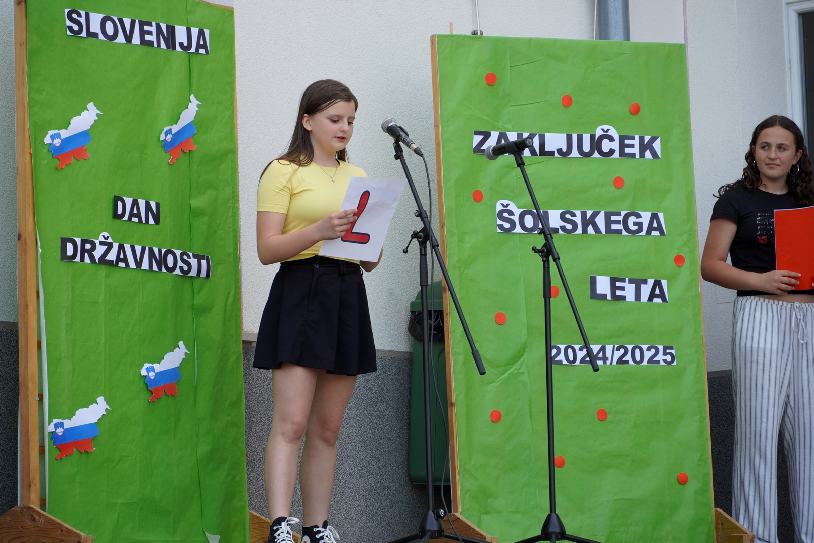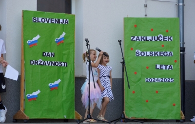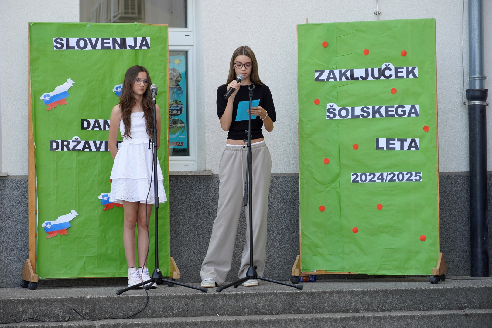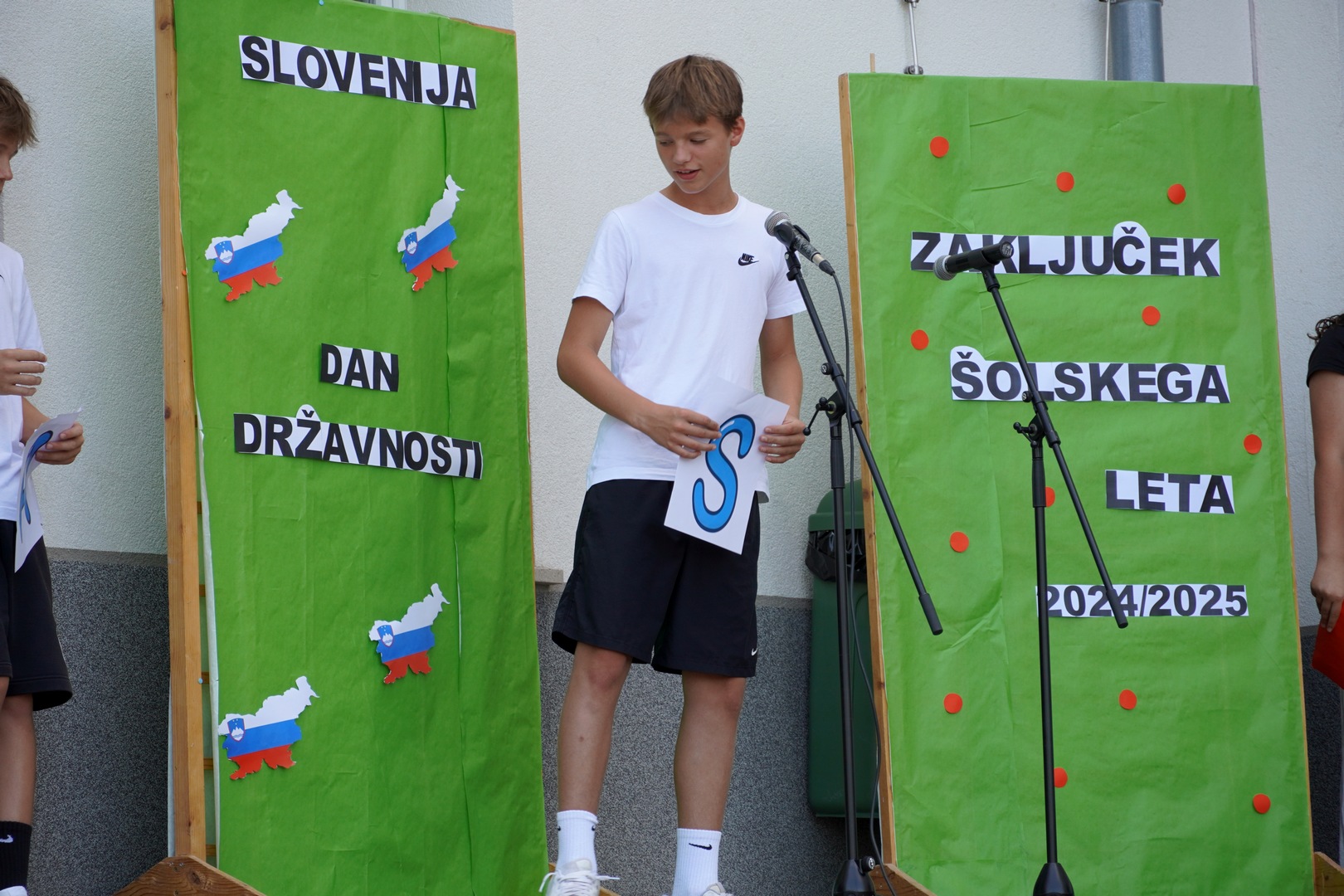 Začeli smo z dvema urama, v katerih so učenci skupaj z razredniki pogovorili o vseh pomembnih trenutkih letošnjega šolskega leta. Poudarili smo dosežke, se dotaknili prihodnjih ciljev in si izmenjali vtise. Po tem smo na šolskem igrišču proslavili dan državnosti – spremljali smo pevce, otroški zbor ter atraktiven plesni nastop. Po slovesnem delu je sledila osvežitev z okusnim sladoledom.