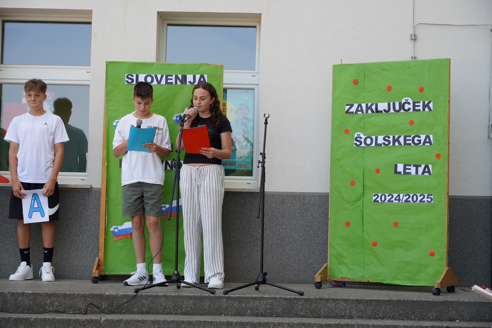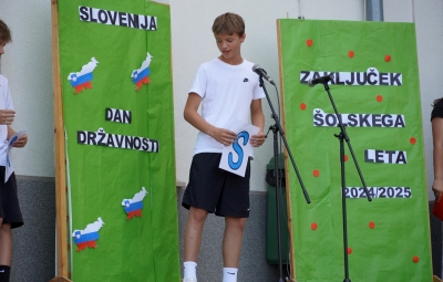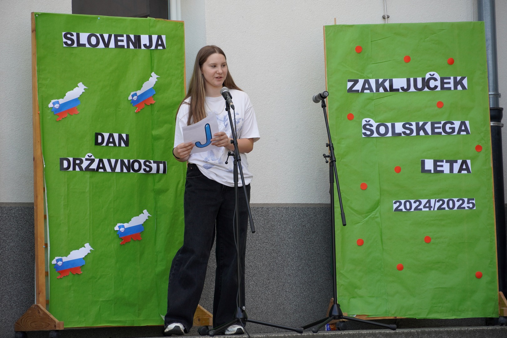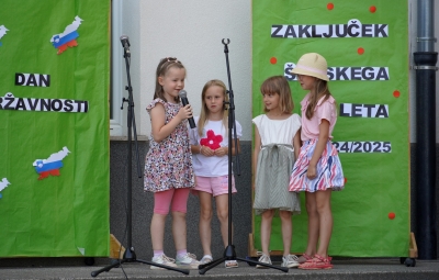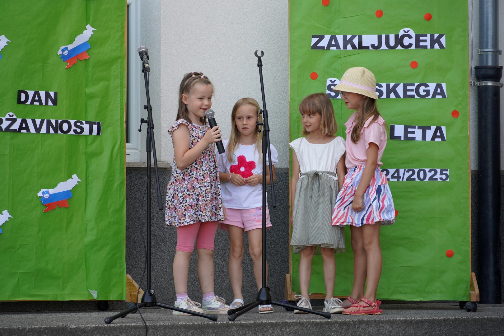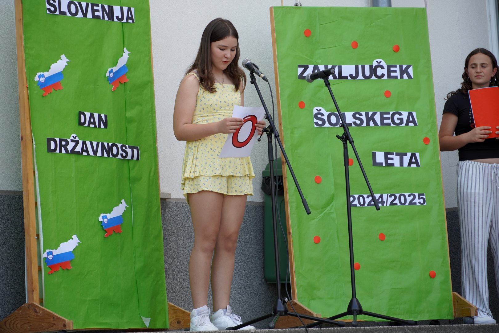 Začeli smo z dvema urama, v katerih so učenci skupaj z razredniki pogovorili o vseh pomembnih trenutkih letošnjega šolskega leta. Poudarili smo dosežke, se dotaknili prihodnjih ciljev in si izmenjali vtise. Po tem smo na šolskem igrišču proslavili dan državnosti – spremljali smo pevce, otroški zbor ter atraktiven plesni nastop. Po slovesnem delu je sledila osvežitev z okusnim sladoledom.