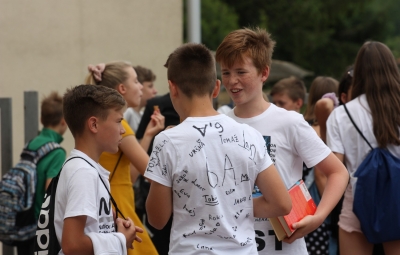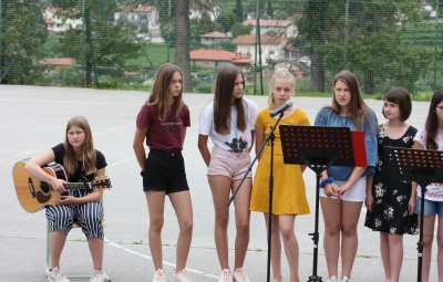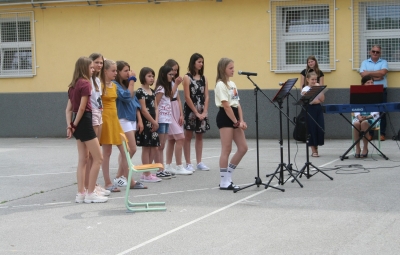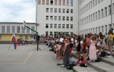 24. junija smo na šolskem igrišču s kratko proslavo obeležili dan državnosti, podelili zlata in srebrna priznanja najuspešnejšim učencem in se za dobra dva meseca poslovili od šolskih klopi.