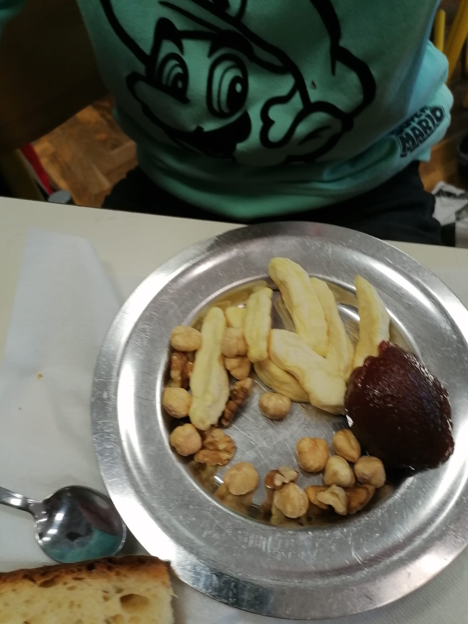 Na razpolago smo imeli domače marmelade, maslo, jogurt, kosmiče, oreščke, brusnice in jabolčne krhlje. Privoščili smo si tudi umešana in jajca na oko. Na servirni mizi ni manjkalo niti svežega sadja.