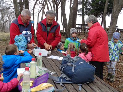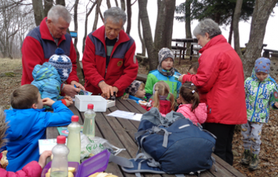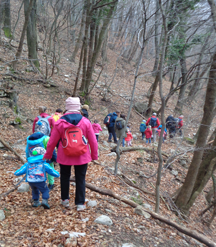 Iz odcepa za Slapnik nas je planinska pot vodila proti Vrtačam. Na poti smo lahko opazovali, kako se narava že prebuja. Zacveteli so zvončki, trobentice, pa tudi srni sta nam popestrili dan. Pred vasjo Vrtače smo imeli krajši postanek za prigrizke. V sami vasi nas je prijazno pozdravila domačinka ter nas pogostila z čokoladicami. Pot nas je nato vodila mimo cerkvice sv. Genderce do samega vrha Korade. Pred kočo smo imeli malico in žigosanje planinskih izkaznic. Žal pa zaradi slabšega vremena nismo imeli lepega razgleda na oddaljene vrhove.