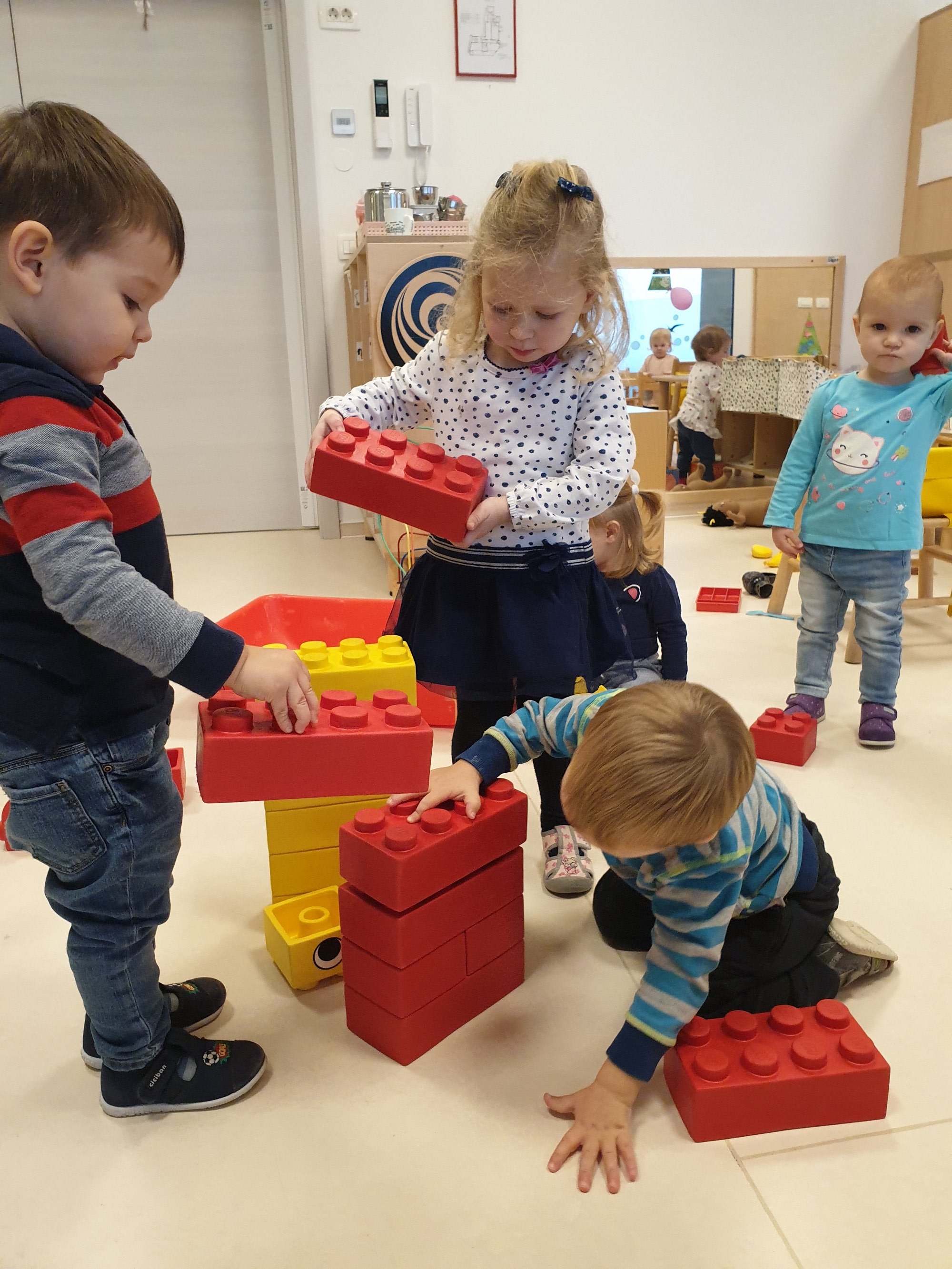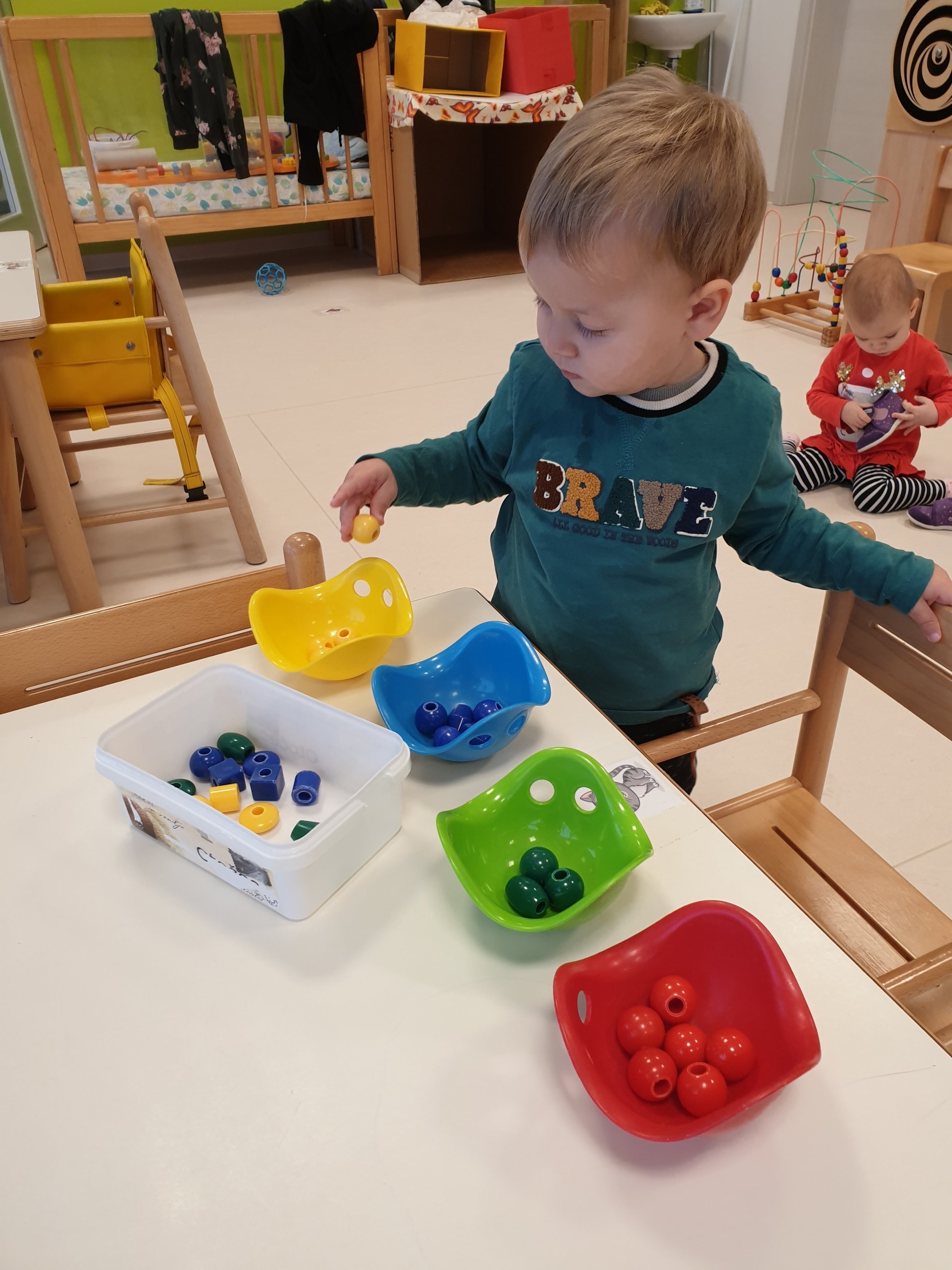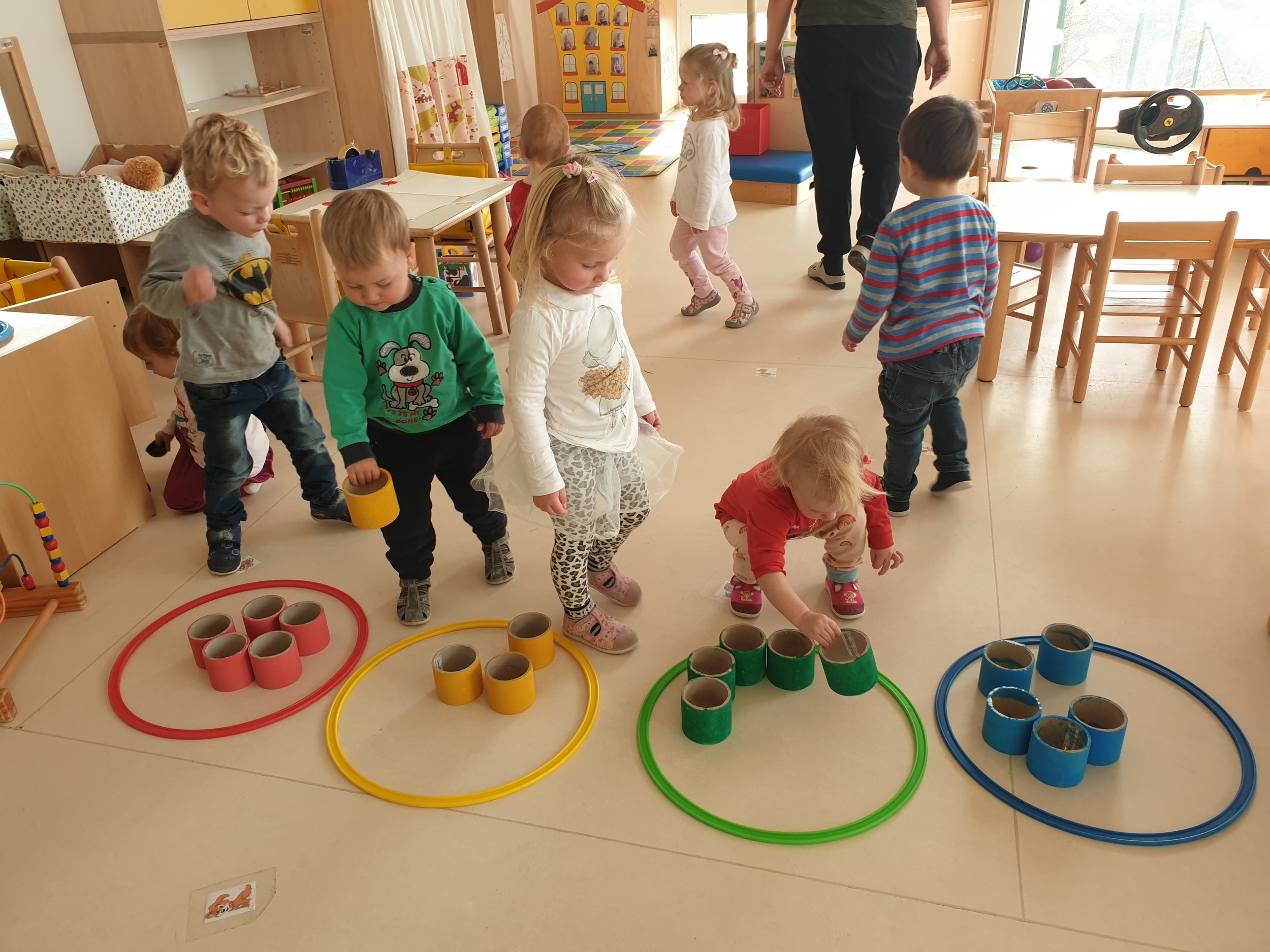 V januarju smo se pri Račkah veliko ukvarjali z barvami. Spoznali smo pisanega slona Elmerja in njegove dogodivščine ter uživali v rimah Andreja Rozmana Roze. Igrali smo se z barvo, tako, da smo slikali z rokami in prsti ter odtiskovali odpadno embalažo. Nizali smo barvne kroglice, se igrali z žogami, kockami in plastelinom različnih barv. Zabavali smo se z ročnimi lutkami – barvnimi možici, ki živijo v barvnih žepih predpasnika. Različne predmete smo razvrščali po barvah in spoznali drevesni diagram. V petek je bilo še posebej zabavno, saj smo praznovali Rdeči dan, ko smo v vrtec prišli oblečeni v nekaj rdečega.
