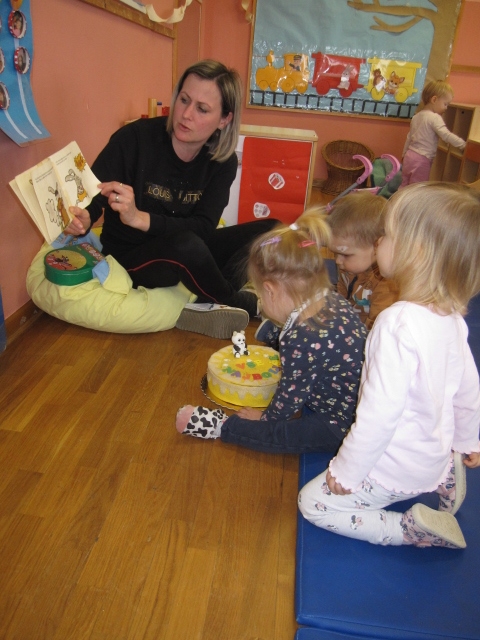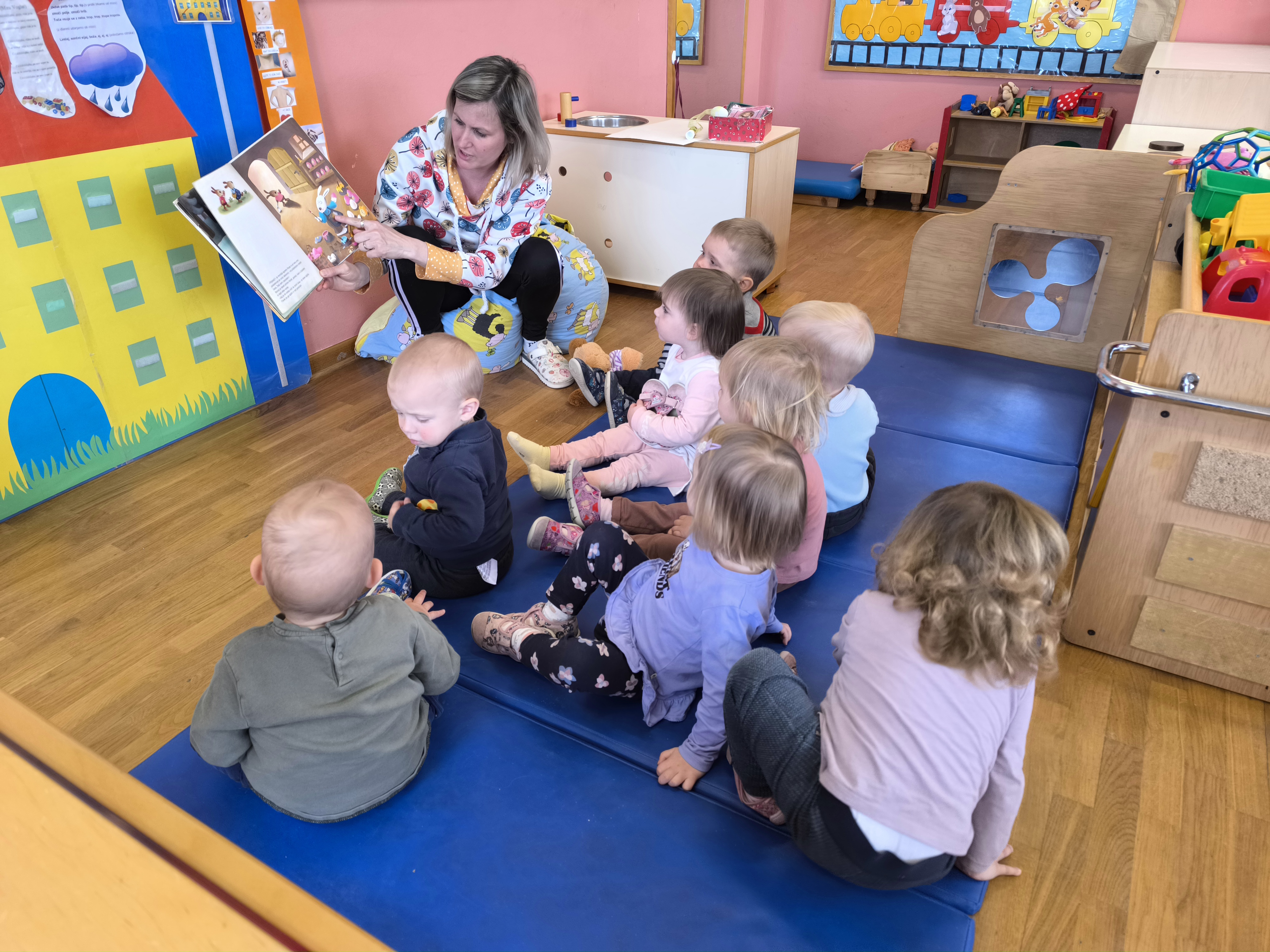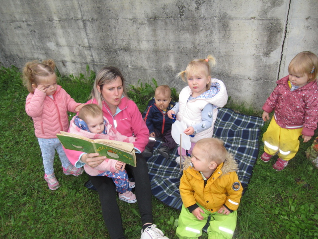 Tudi pri najmlajših smo redno izvajali bralne urice, bodisi v naravi bodisi v igralnici. Otroci so z navdušenjem poslušali pravljice in dejavno sodelovali pri aktivnostih, ki so sledile po branju. Njihova vztrajnost pri poslušanju pravljic se je postopoma podaljševala.