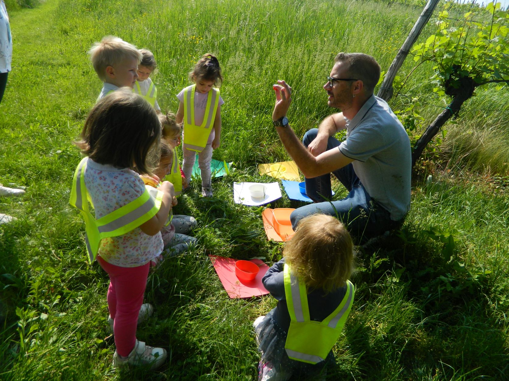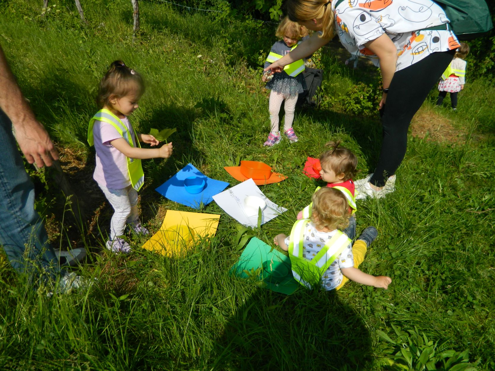 V skupini Žogice smo spoznavali barve. Barve smo iskali in razvrščali tudi v naravi, ki je v tem času zelo barvita. Odpravili smo se na bližnji travnik, kjer smo našli veliko raznolikih barv, katere smo poimenovali in razvrstili.