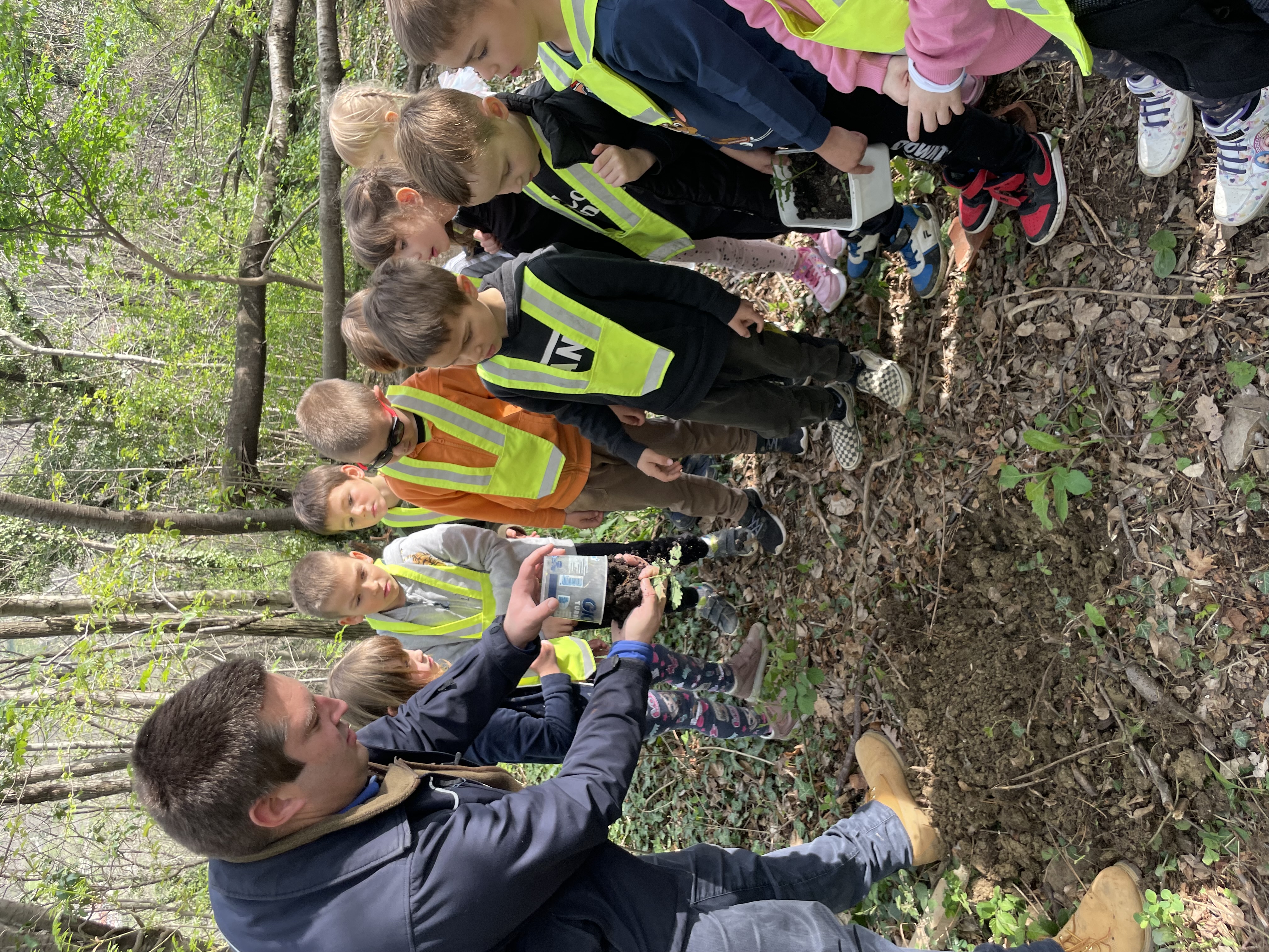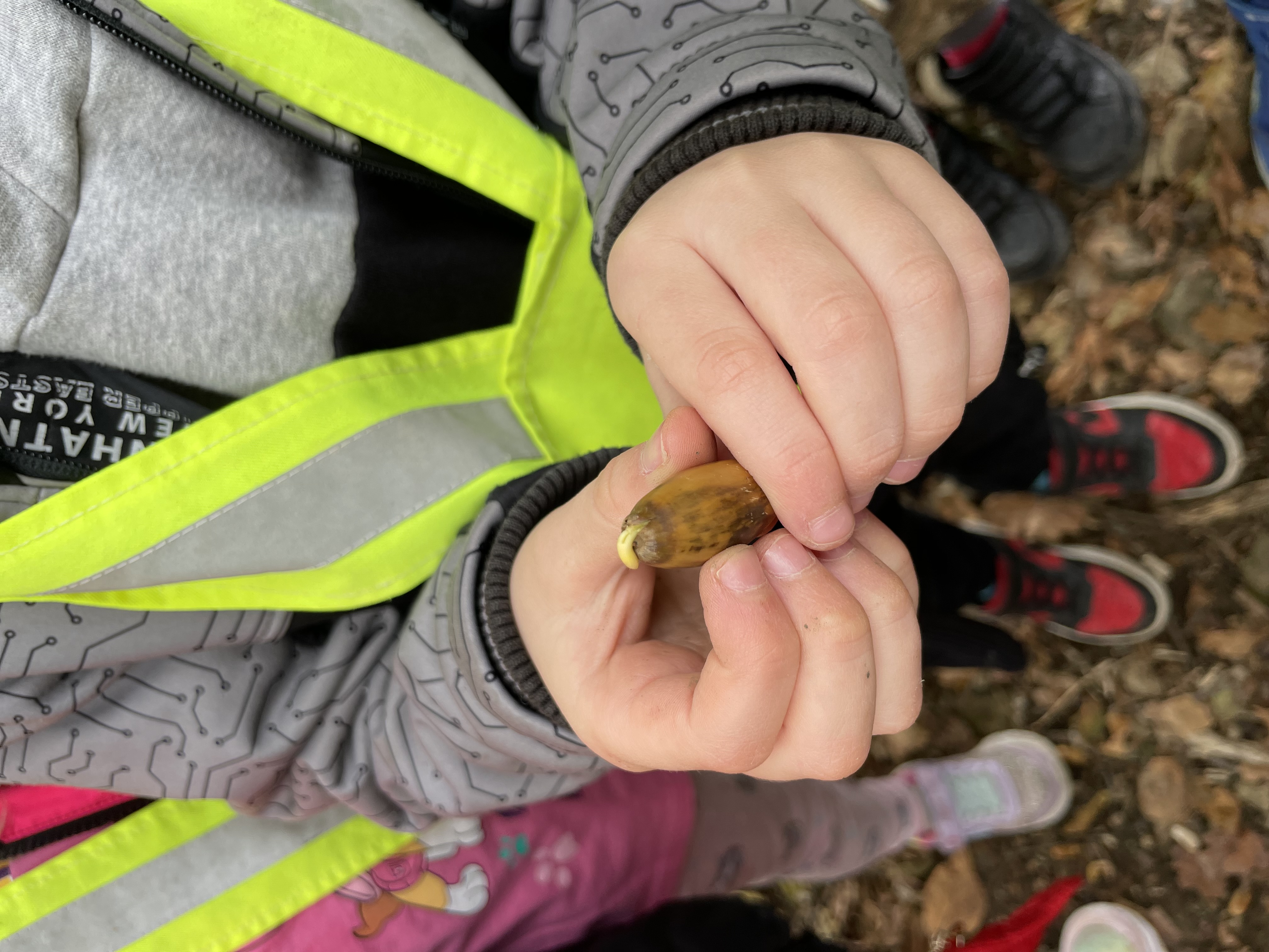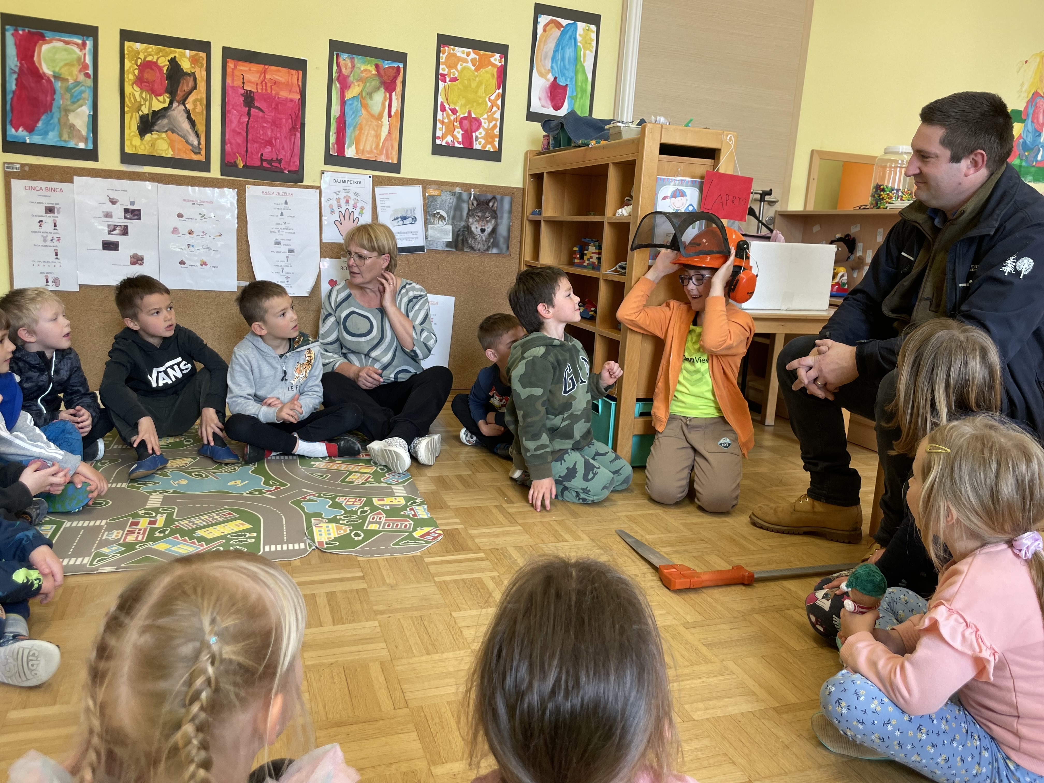 Deček je pri igri našel želod, iz katerega je bilo opaziti kalček. Odločili smo se, da ga odnesemo v vrtec, kjer smo se pogovorili kaj lahko z njim storimo. Želod smo posadili ter narisali tabelo za spremljanje njegovega razvoja. Spoznavali smo, kaj rastlina potrebuje za rast, ter mladiko pridno zalivali. Ko je ta dovolj zrasla smo se odločili, da jo posadimo v naš gozdiček. Za pomoč smo prosili gozdarja, očeta, deklice v skupini, ki nam je z veseljem priskočil na pomoč in nam veliko povedal o pomenu gozda in dreves za nas in obstoj planeta. Nima vsak otrok možnosti, da lahko posadi svoje drevo. Nam pa je bilo to omogočeno.