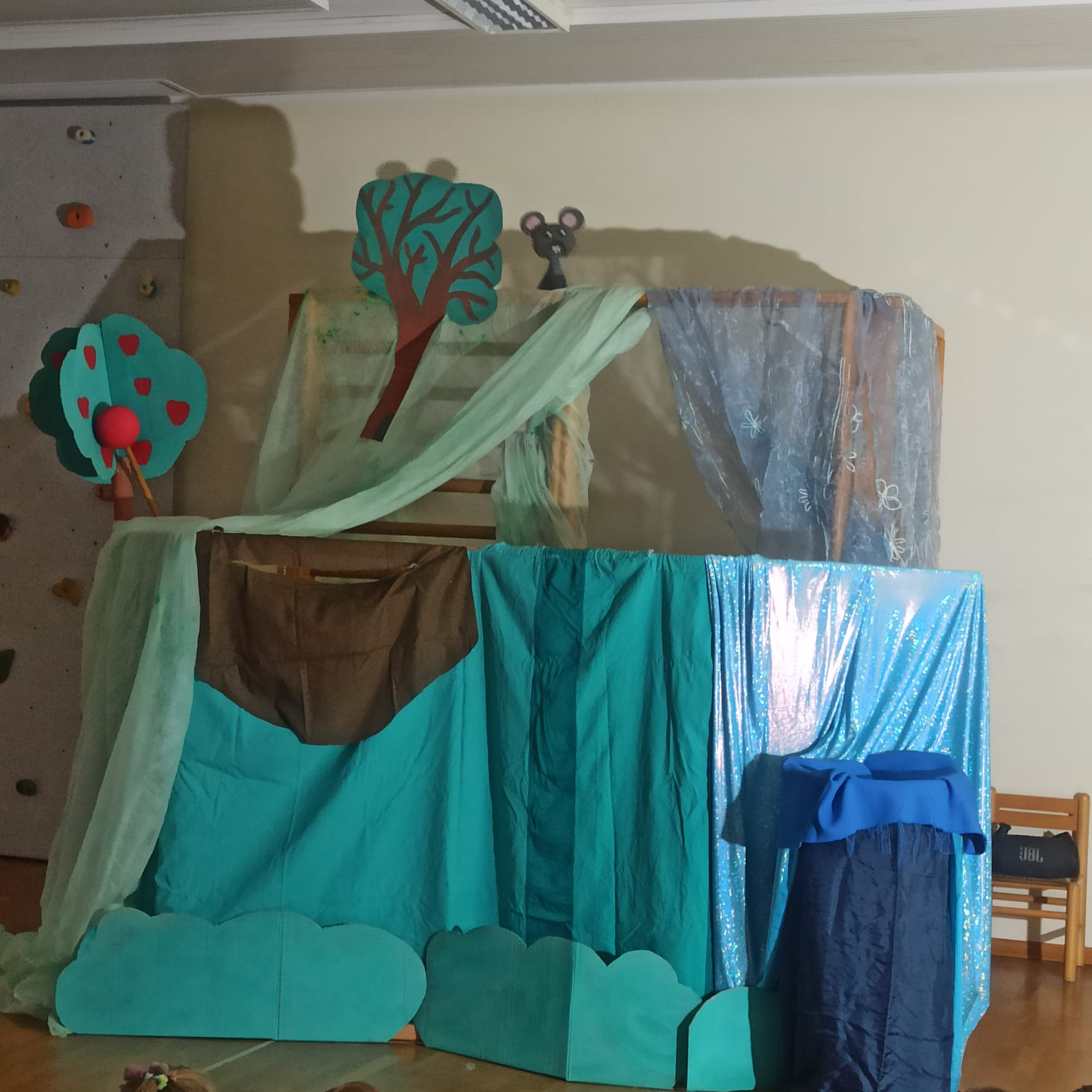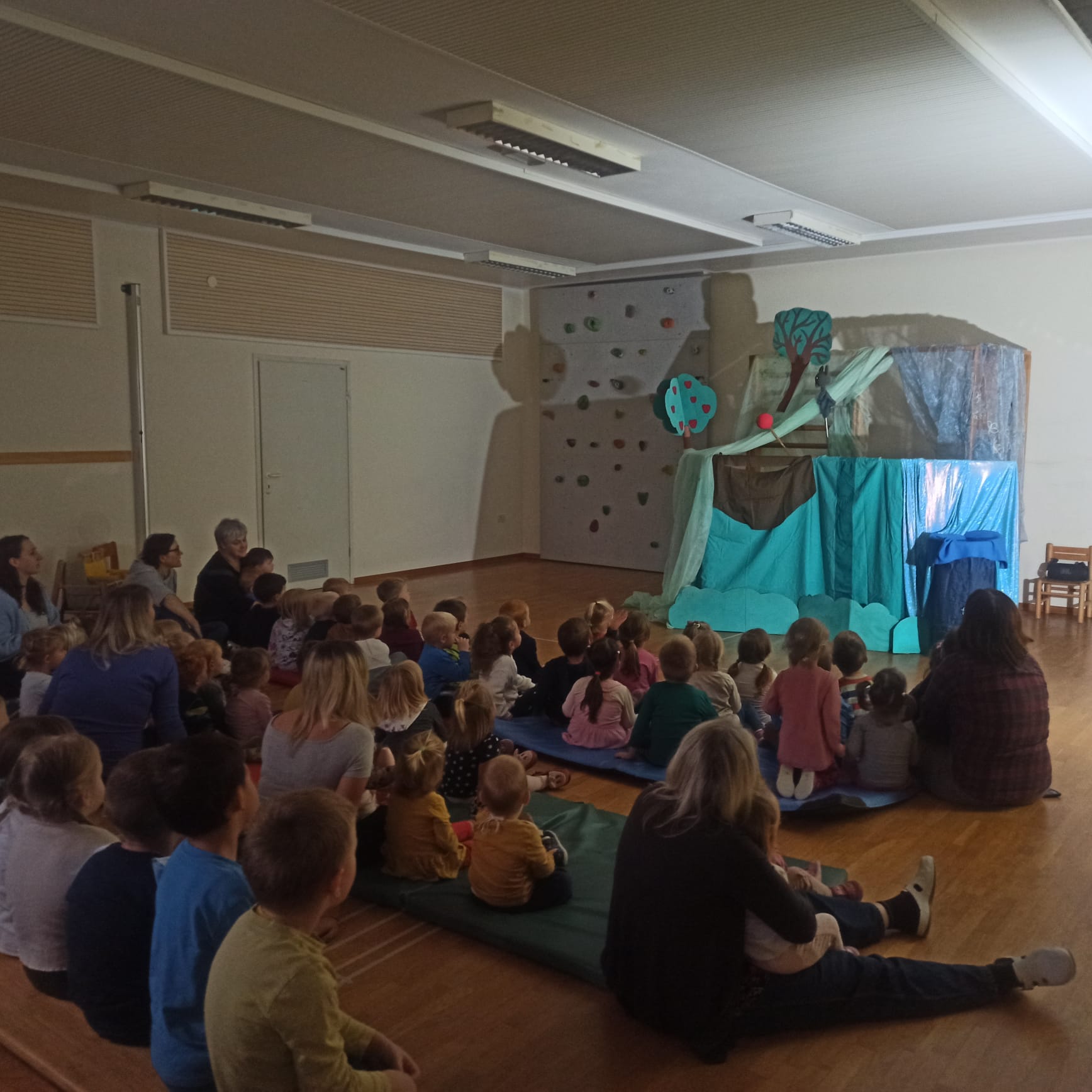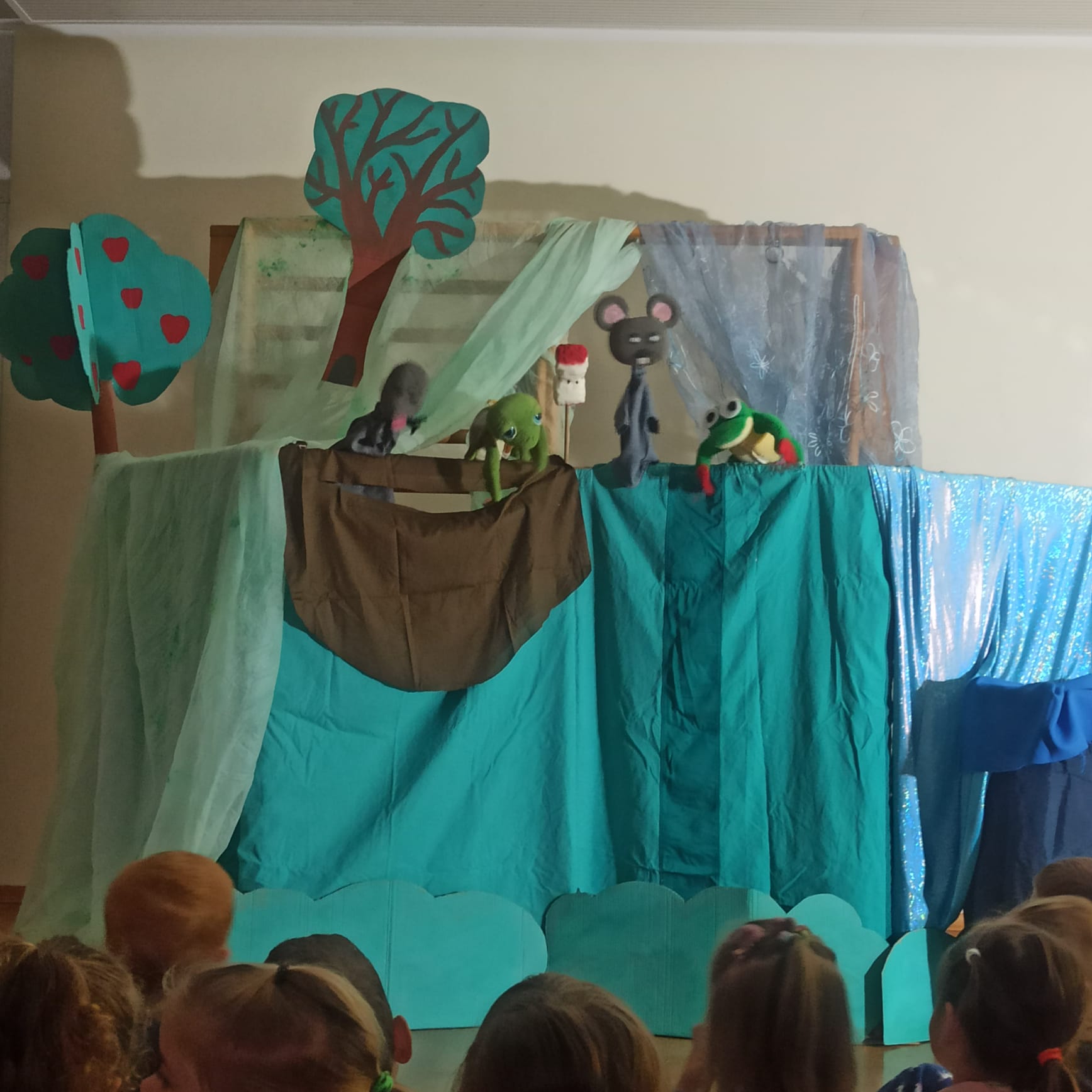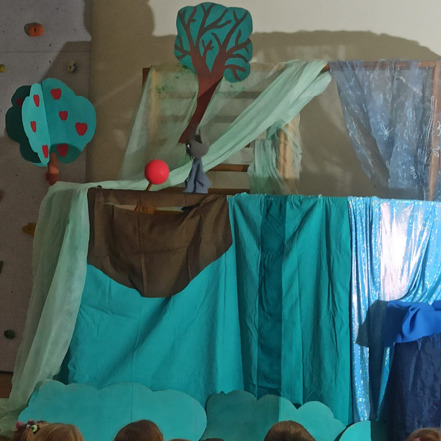 V tednu otroka smo strokovne delavke za vse otroke pripravile lutkovno predstavo "Mala miška in veliko rdeče jabolko".