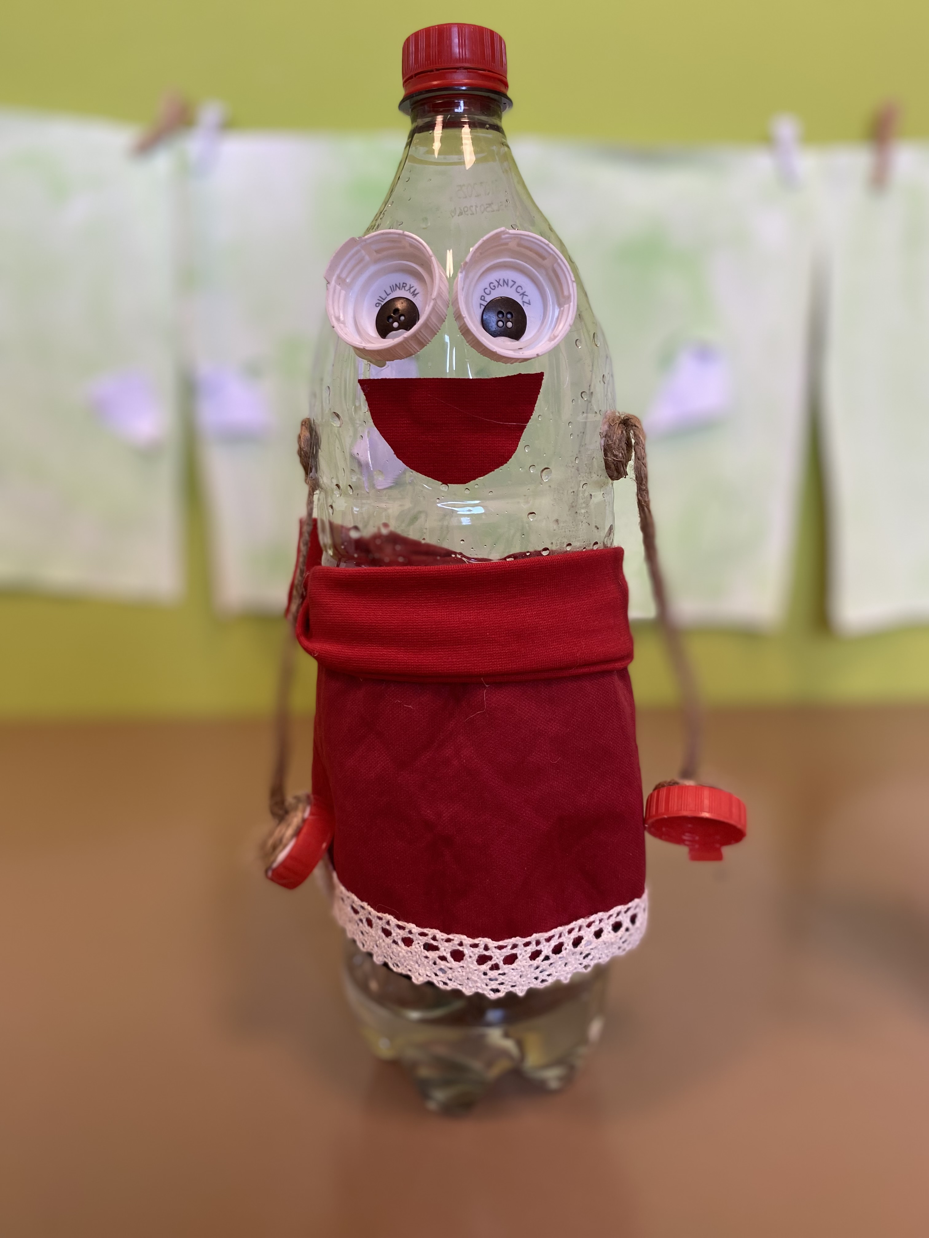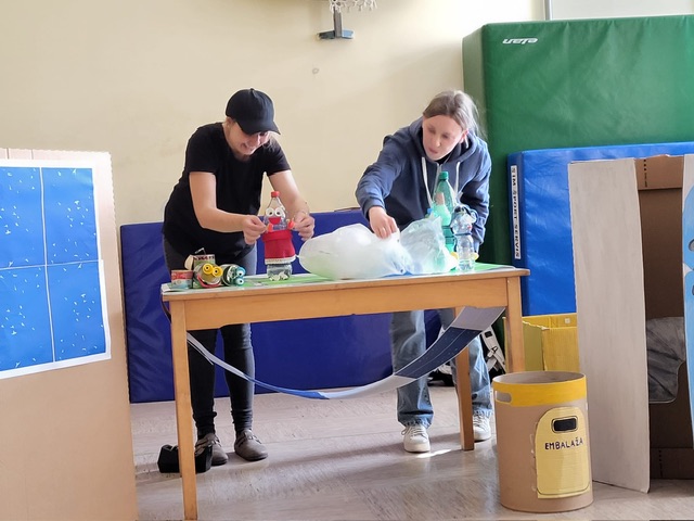 Skladno s sporočilom so bili  vsi rekviziti, scena in lutke za predstavo izdelani iz odpadnih materialov.