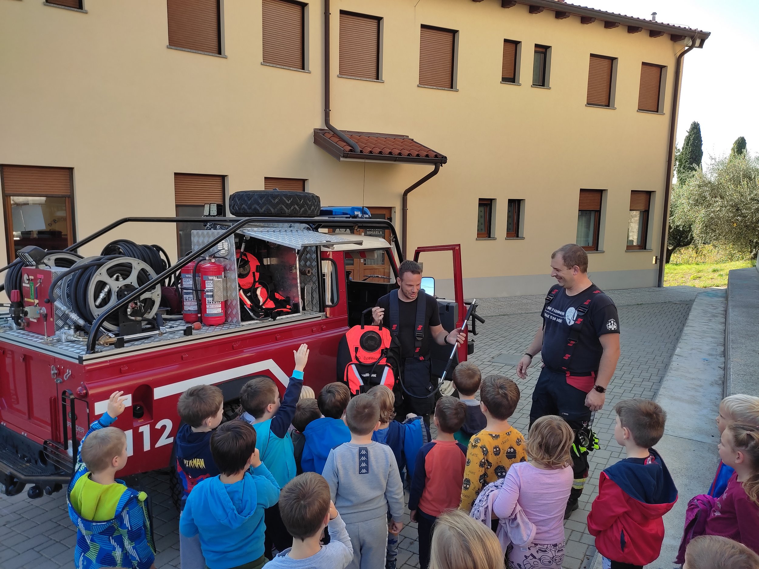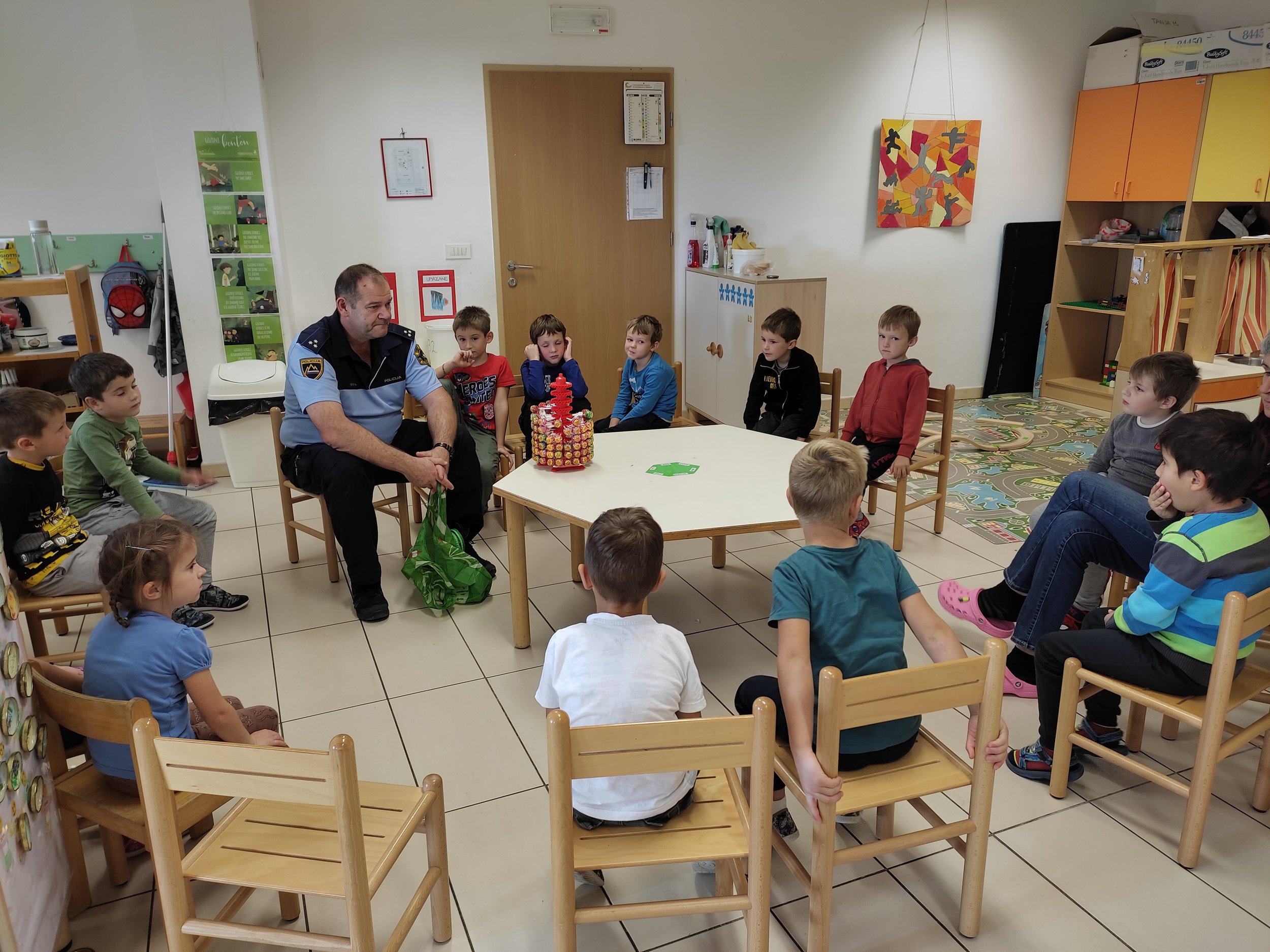V mesecu oktobru, mesecu varnosti, smo v skupini ZELENI PALČKI večino časa namenili prav tej temi. Najprej nas je v skupini obiskal policist Samo, ki nas je poučil o tem, kako se moramo kot pešci obnašati v prometu. Z nami se je odpravil tudi na sprehod po naselju. Sledil je obisk gasilcev, ki so nam predstavili njihove obleke in opremo in z veseljem odgovarjali na številna naša vprašanja, zlasti o požaru na krasu. Pričeli pa smo tudi s projektom Pasavček. To je mednarodni projekt, katerega osnovni namen je spodbuditi dosledno in pravilno uporabo otroških varnostnih sedežev in pripetost otrok med vožnjo. Slogan projekta je "Red je vedno pas pripet". Tako smo izdelali obeske Pasavčka, ki nas bodo spomnili, da se moramo v avtu vedno pripasati, pa čeprav je vožnja še tako kratka. Pasavčka smo risali, se naučili njegovo pesem, v tabelo pa beležili ali smo bili na poti do vrtca pripasani. Iz odpadnega materiala smo izdelovali različna vozila in prometne znake. Izdelali pa smo tudi avto v katerega se lahko usedemo. Opremili smo ga s pravim avtomobilskim sedežem, ki nam ga je priskrbel Anejev tata, volanom in otroškim sedežem.