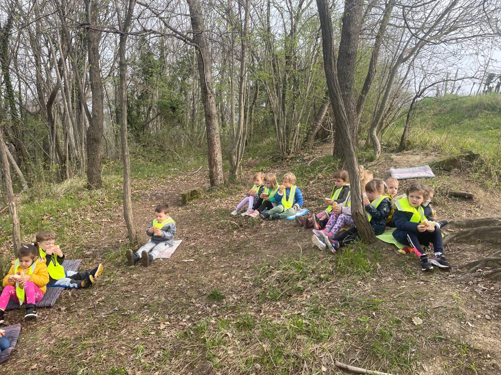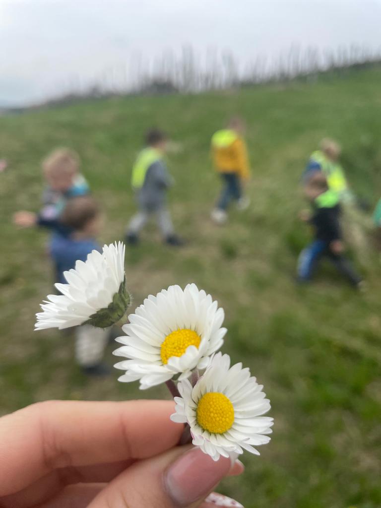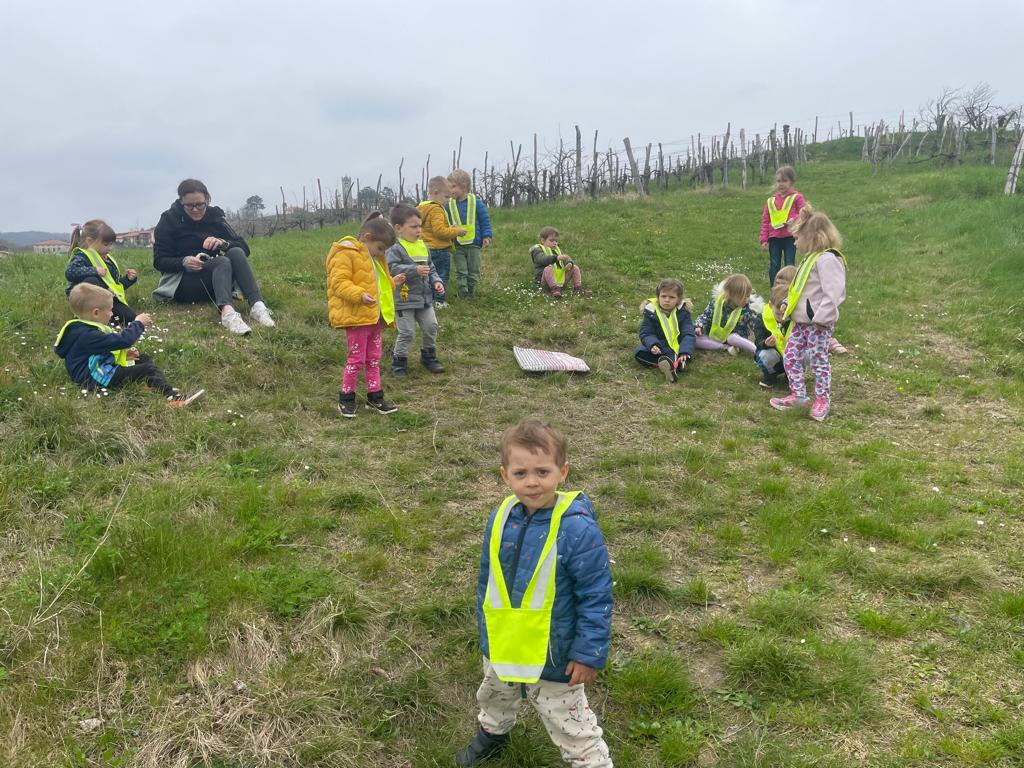 Na prvi pomladni dan smo se z otroki skupine Lisicke odpravili do bliznjega gozdicka, kjer smo najprej pojedli malico, nato pa si izdelali vsak svojo zapestnico ali kronico iz pomladnega cvetja.