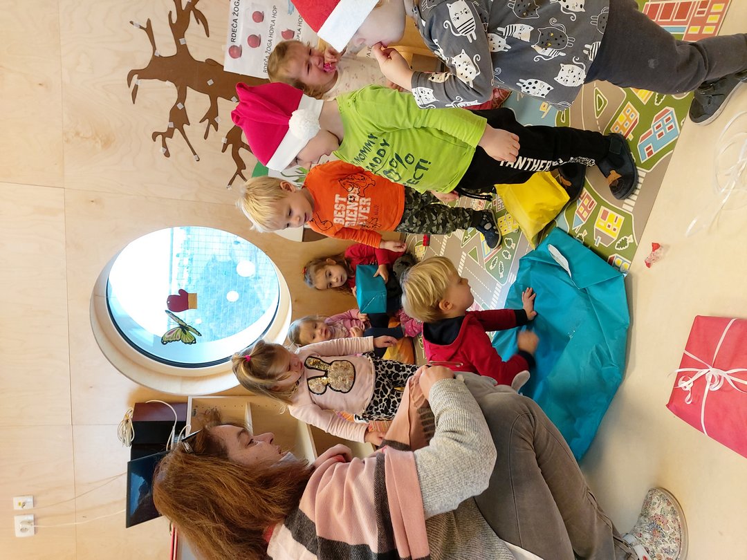 V skupini Žogice nas je obiskal dedek Mraz. Prinesel nam je bonbone in darila. Skupaj smo zapeli pesmico Ringa, ringa, raja, dedek Mraz prihaja.
