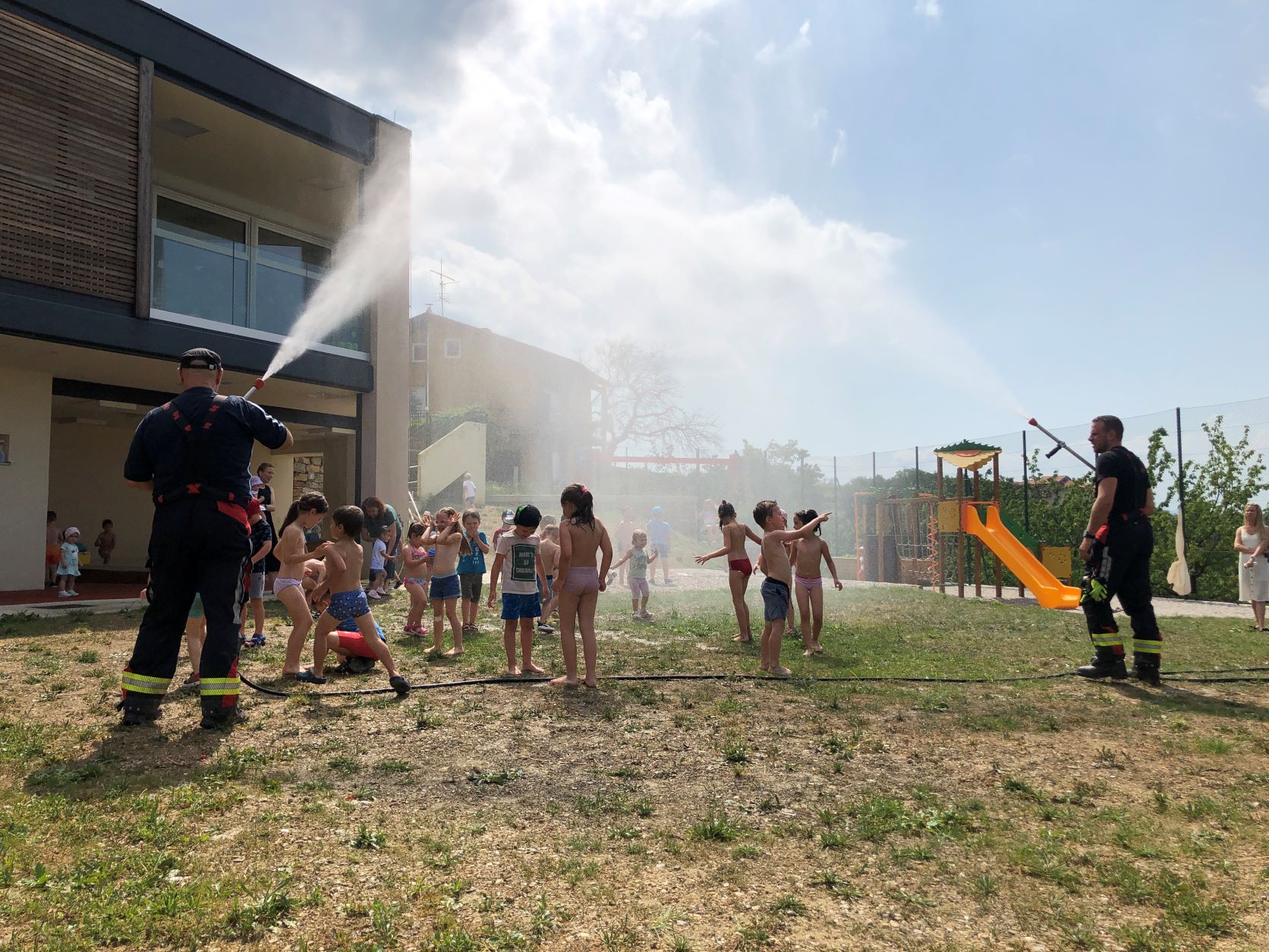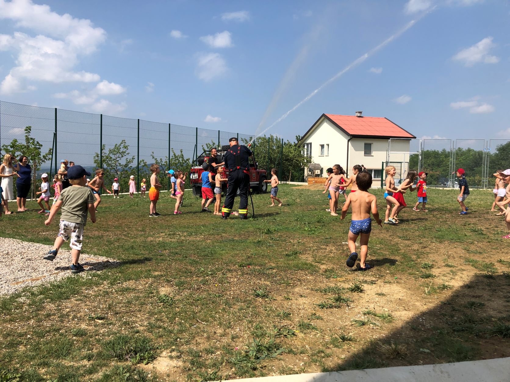 V vrtcu sta nas obiskala člana prostovoljnega gasilskega društva Dobrovo. Razkazala sta nam gasilsko vozilo in nam pripravila prijetno osvežitev.