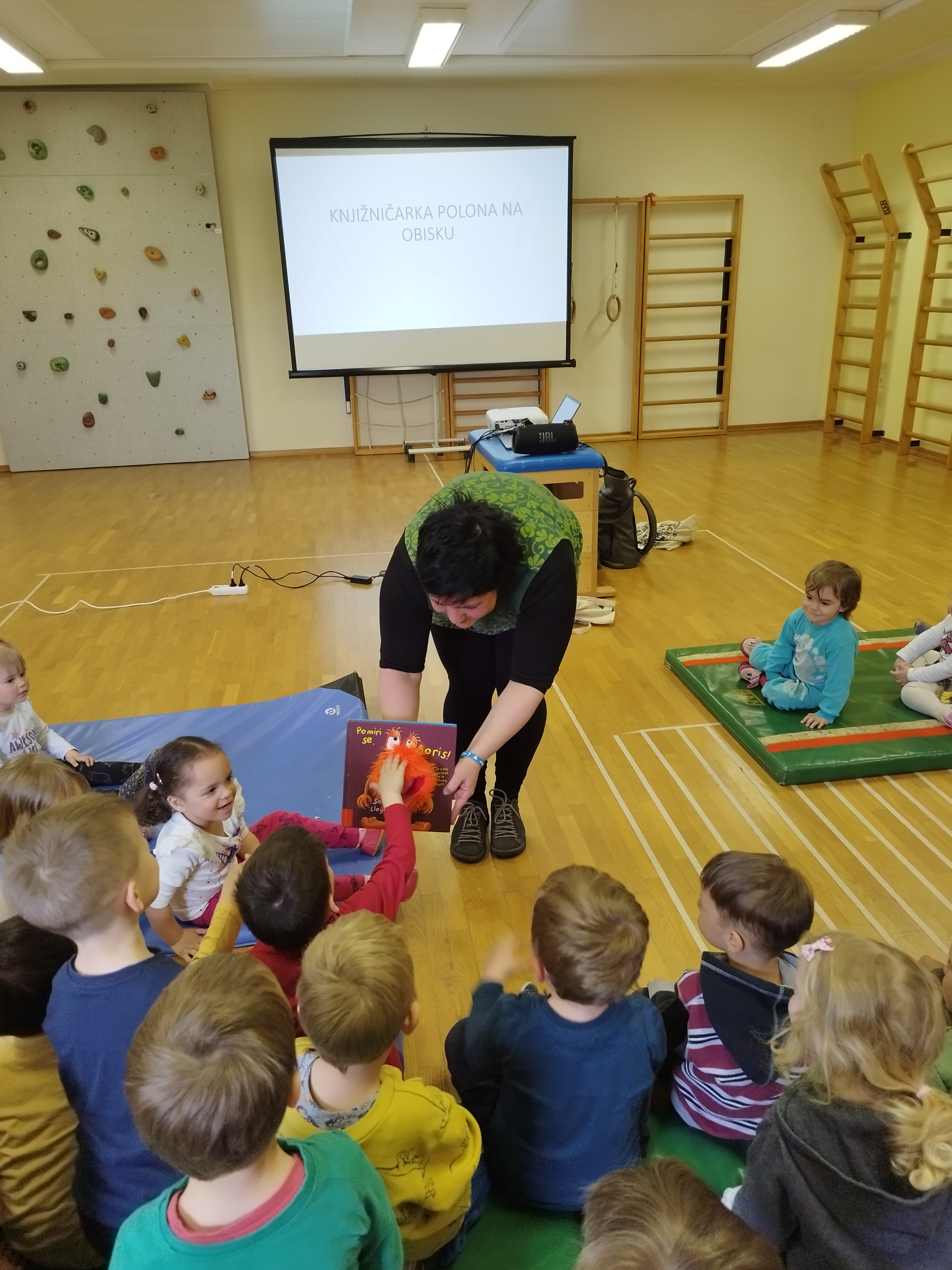 V sklopu projekta Zeleni nahrbtnik nas je obiskala knjižničarka Polona iz Goriške knjižnice Franceta Bevka. Predstavila nam je njeno delo, poleg tega pa nam je prinesla veliko najrazličnejših knjig. Spoznali smo, da si v knjižnici lahko ogledamo in izposodimo knjige z lutkami, v obliki torbice, zelo zelo majhe pa tudi tako velike, da jih ne moremo pospraviti v avtomobil.