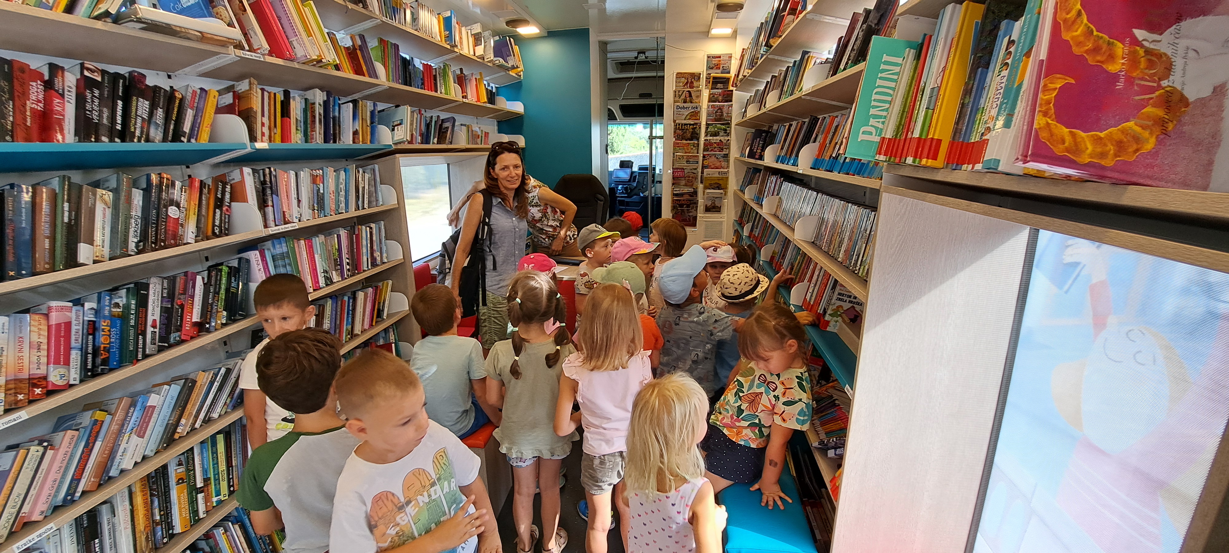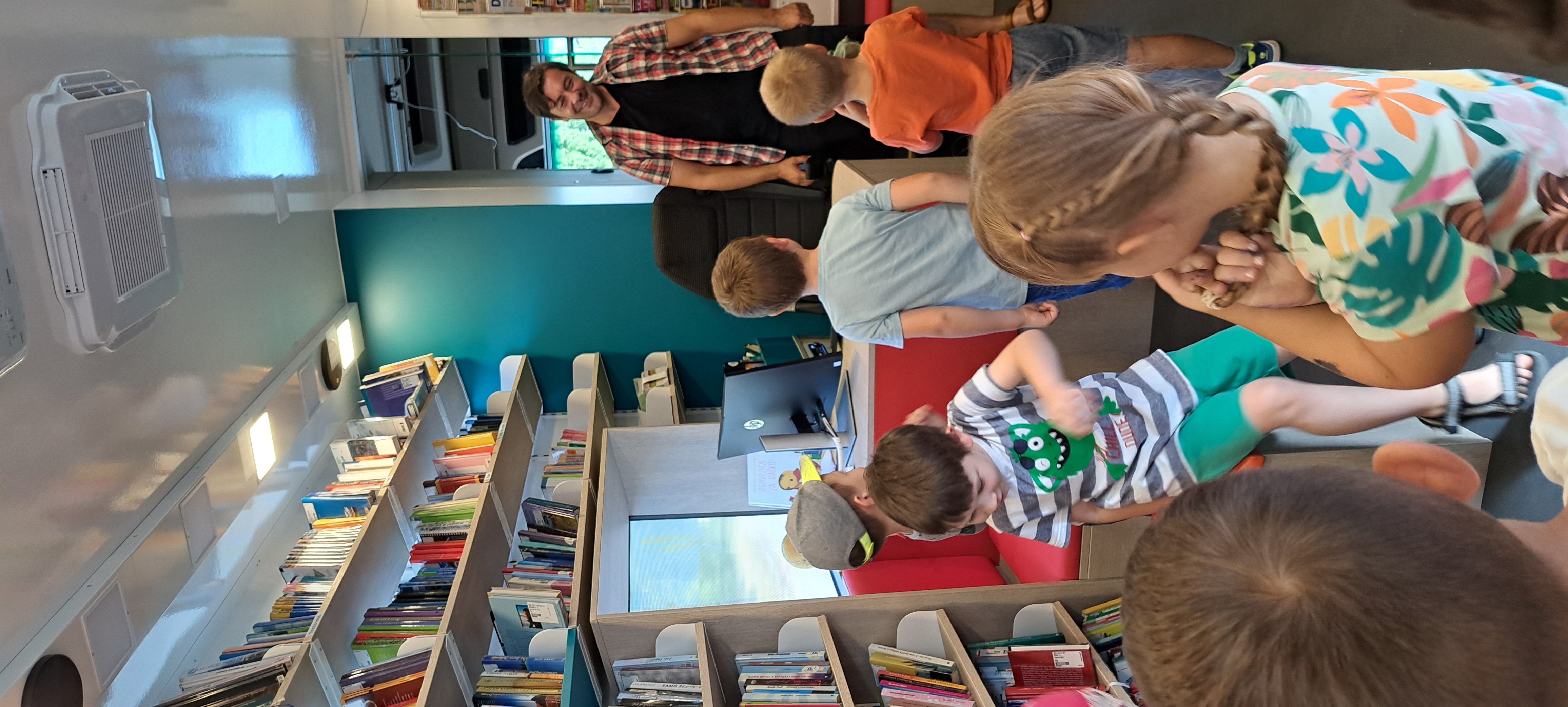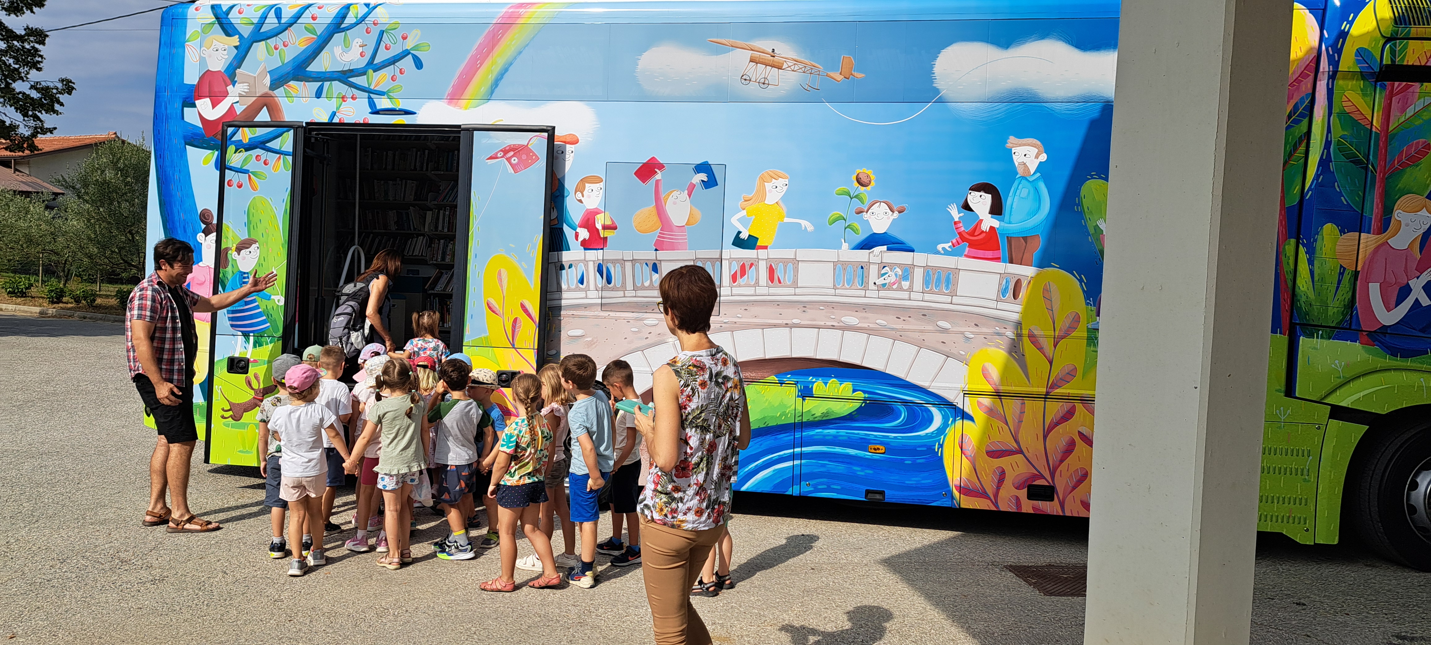 Iz goriške knjižnice Franceta Bevka smo v torek, 3. 9. 2024 dobili povabilo, da si ogledamo njihov nov BIBLIOBUS. V Biljano je pripeljal velik moder kamion z lepimi poslikavami. Knjižničarka in šofer sta nam ga z veseljem razkazala in nam izdala, da smo njihovi prvi obiskovalci.
