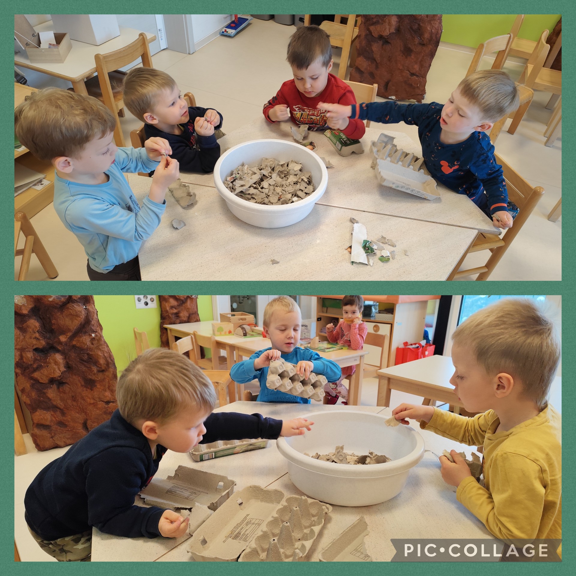 • 400-500g papirne kaše iz papirja, ki smo ga natrgali in čez noč namočili v vodi