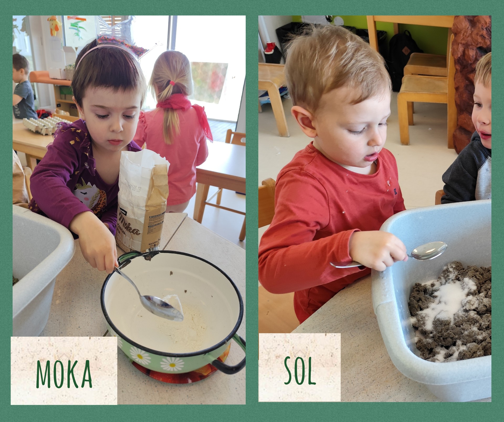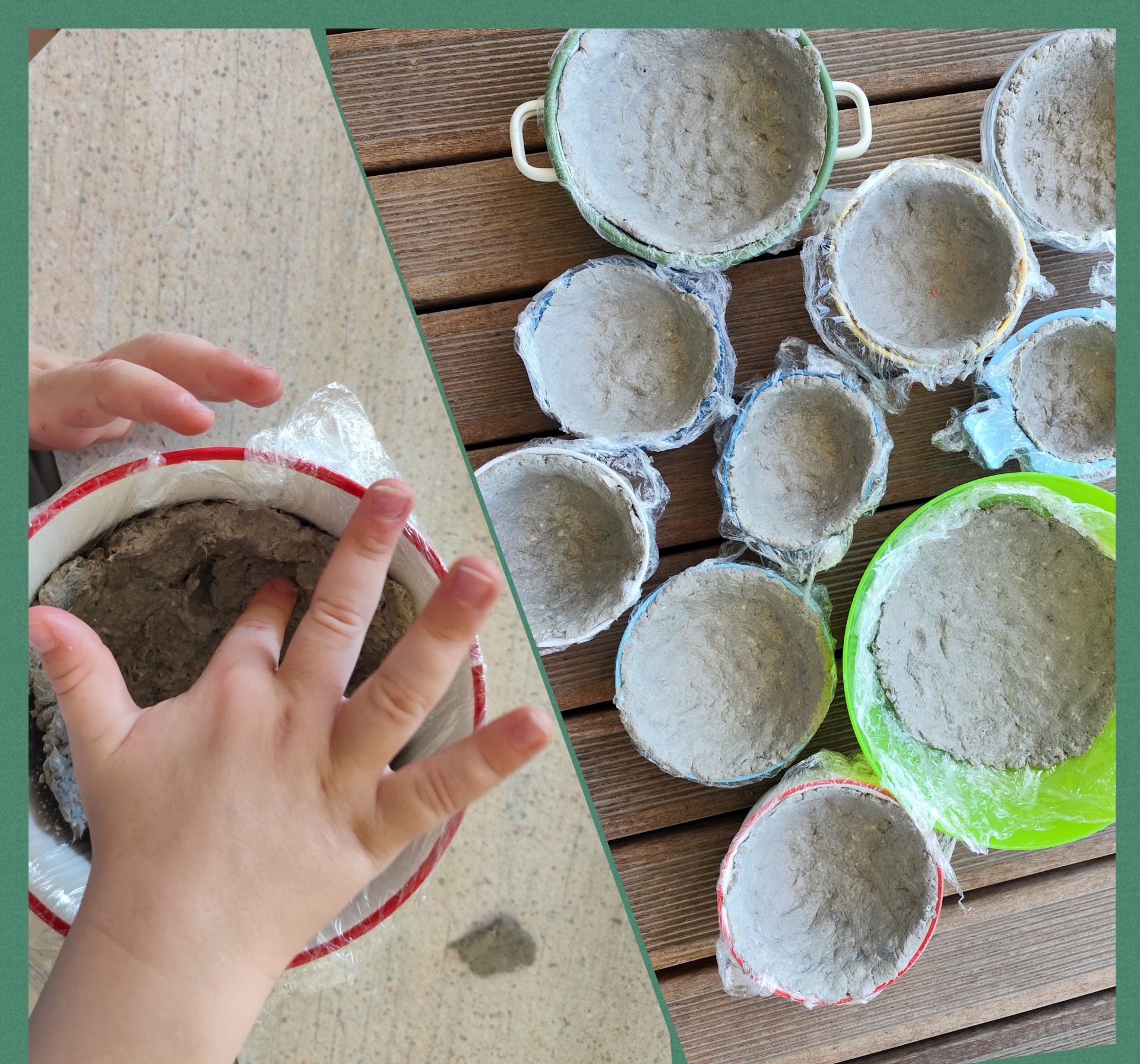 Sestavine zmiksamo in oblikujemo na površini ali v notranjosti skledice ali lončka, ki ga imamo doma.