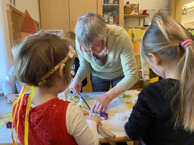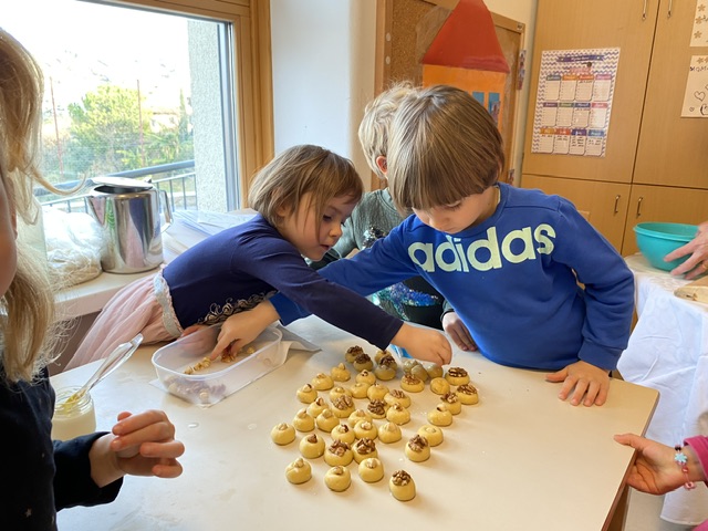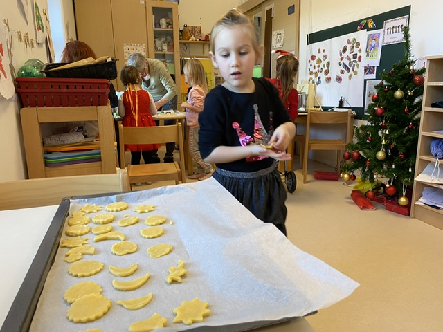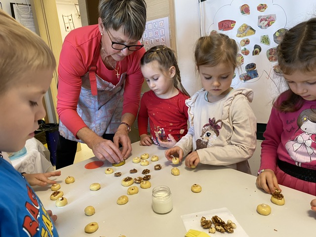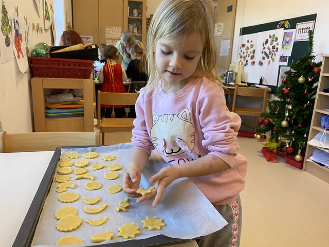 V prazničnem času je tudi pri Vevericah v vrtcu Kojsko zadišalo po piškotih. S pomočjo naših non; Rosande in Vesne smo spekli božične piškote.