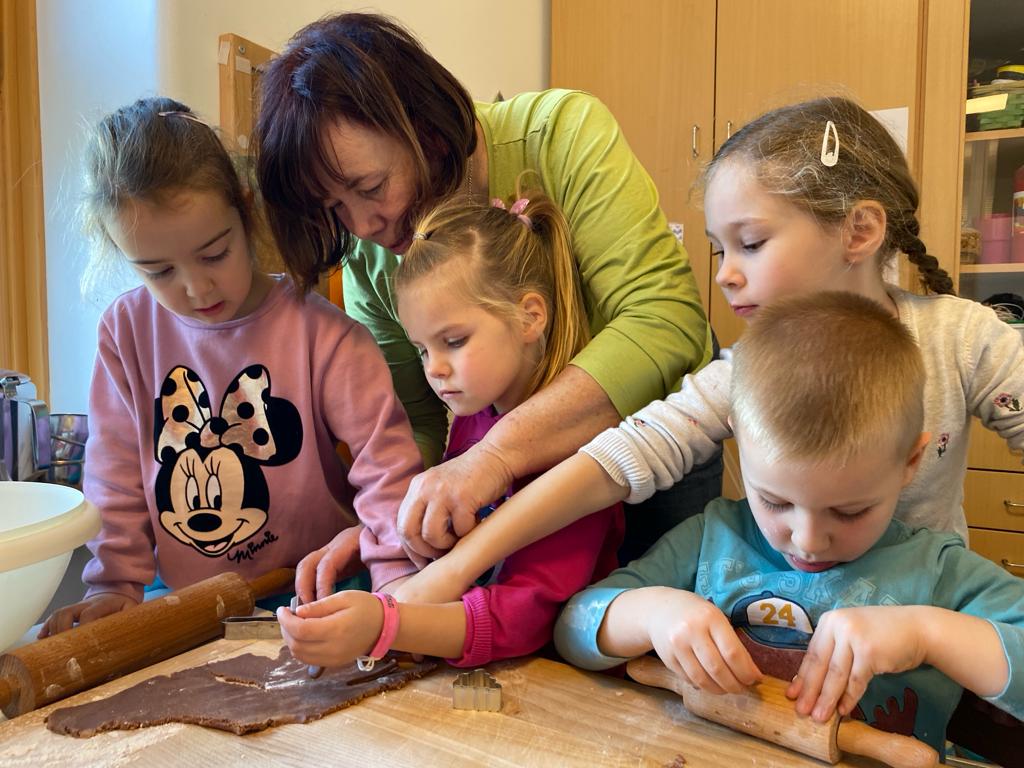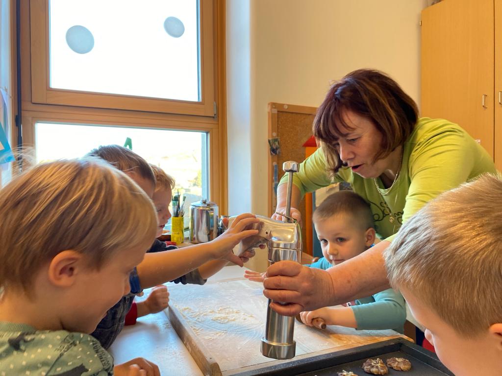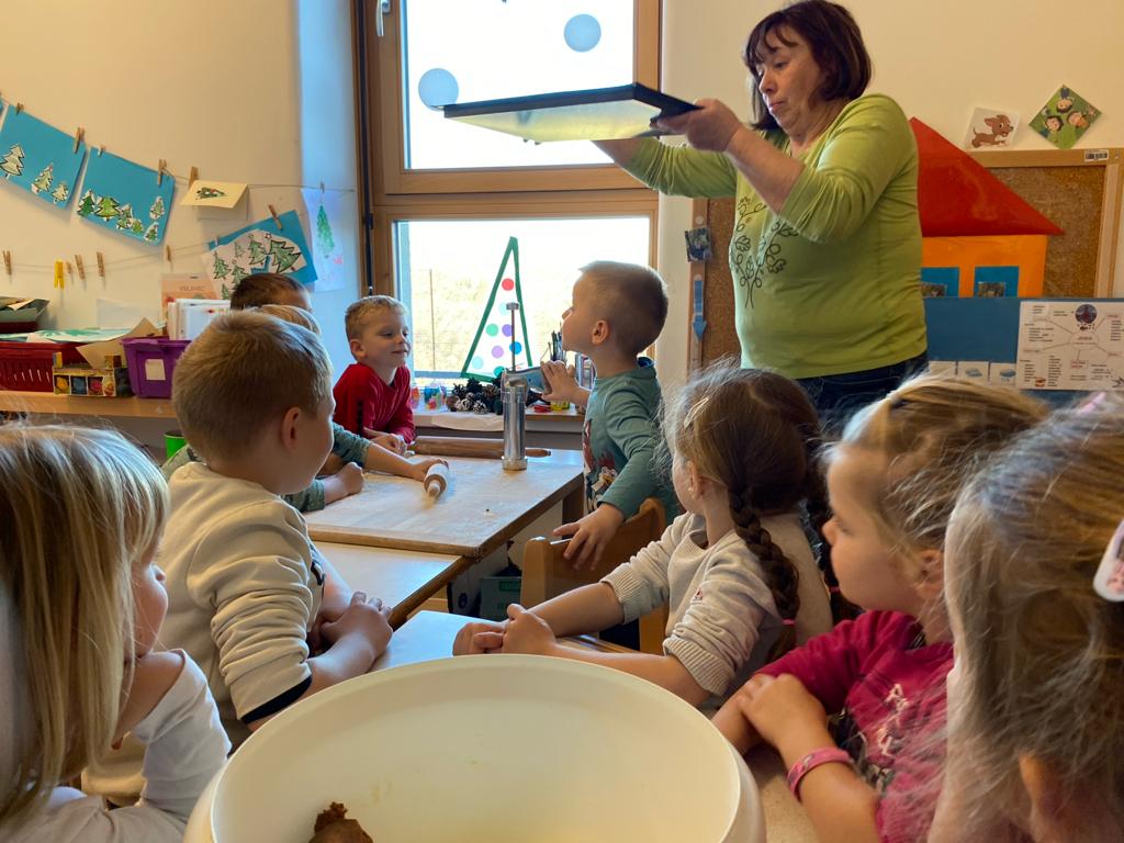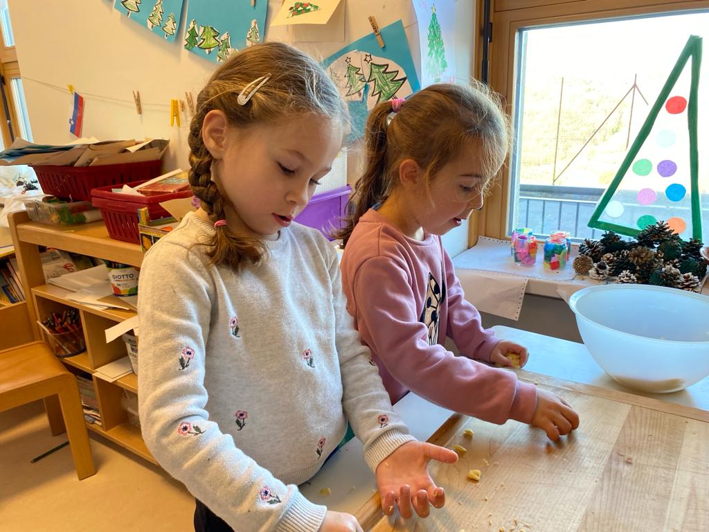 V ponedeljek, 18. decembra, je v vrtec Kojsko prispela nona Nataša Filej, ki je skupini otrok navdušeno pokazala, kako se pripravijo najokusnejši piškoti. Skupaj smo oblikovali testo, ustvarjali različne oblike in nestrpno čakali, da so se piškoti spekli. Po peki so si vsi skupaj privoščili slasten priboljšek, ki so ga skupaj ustvarili.