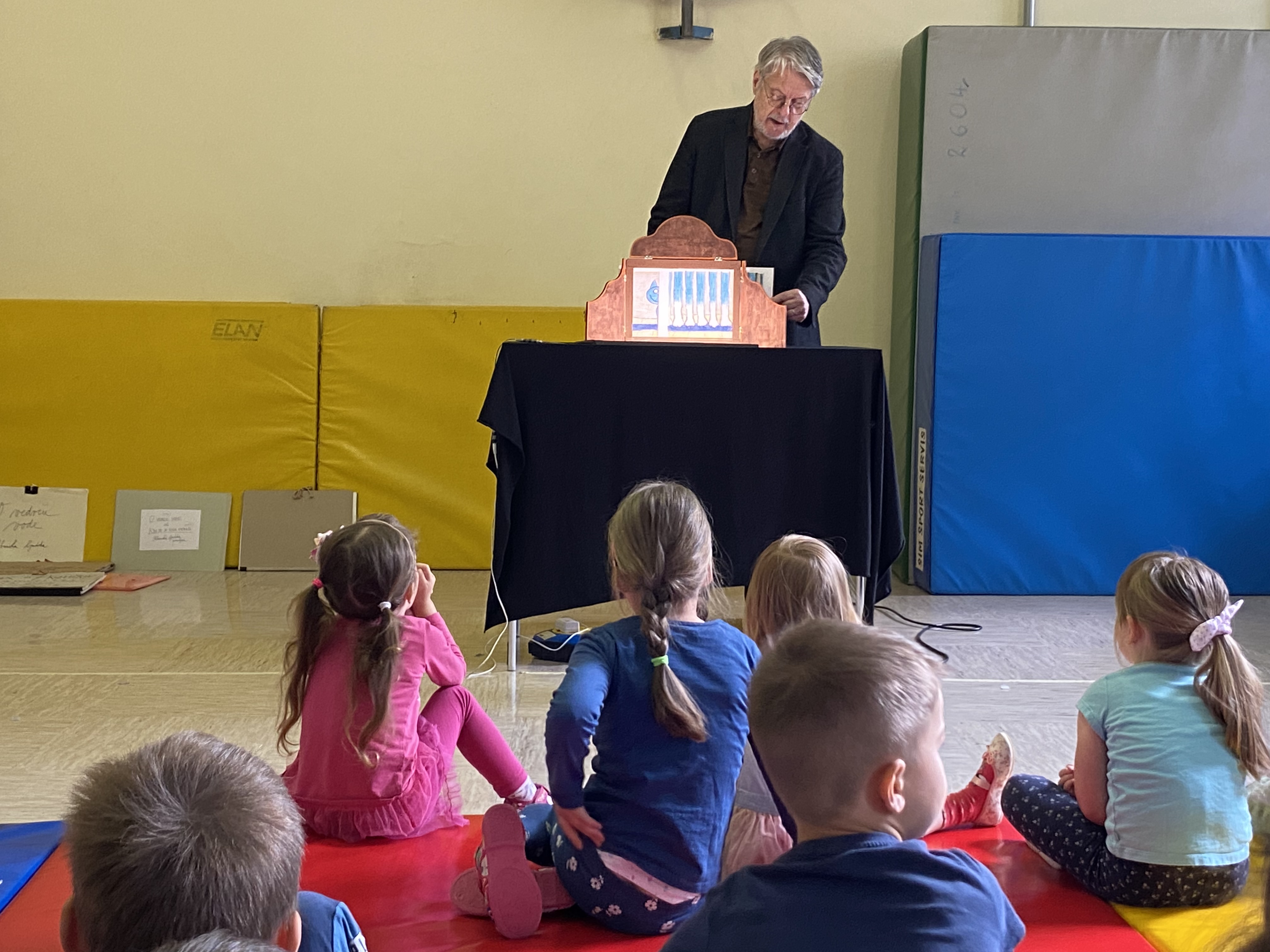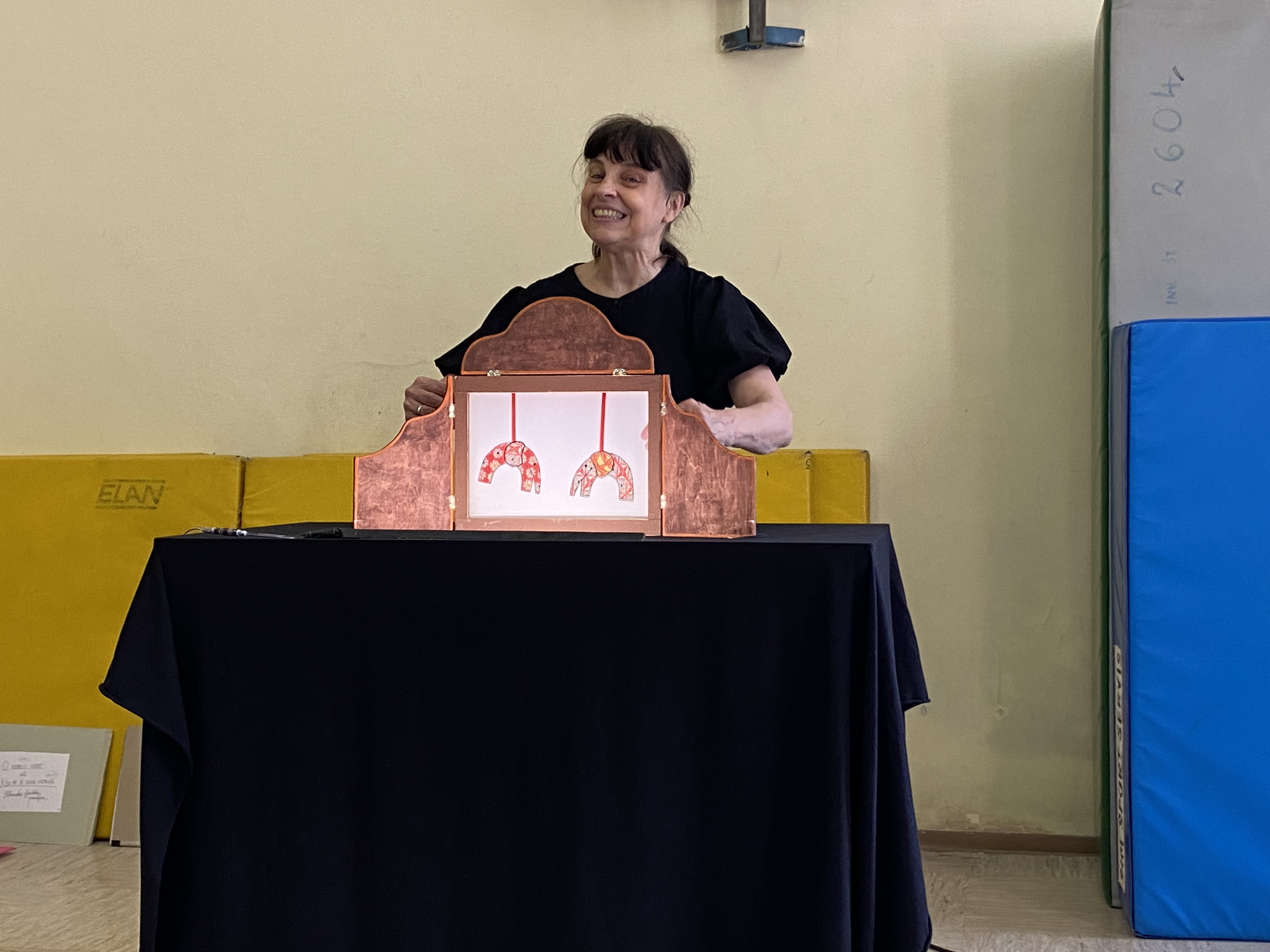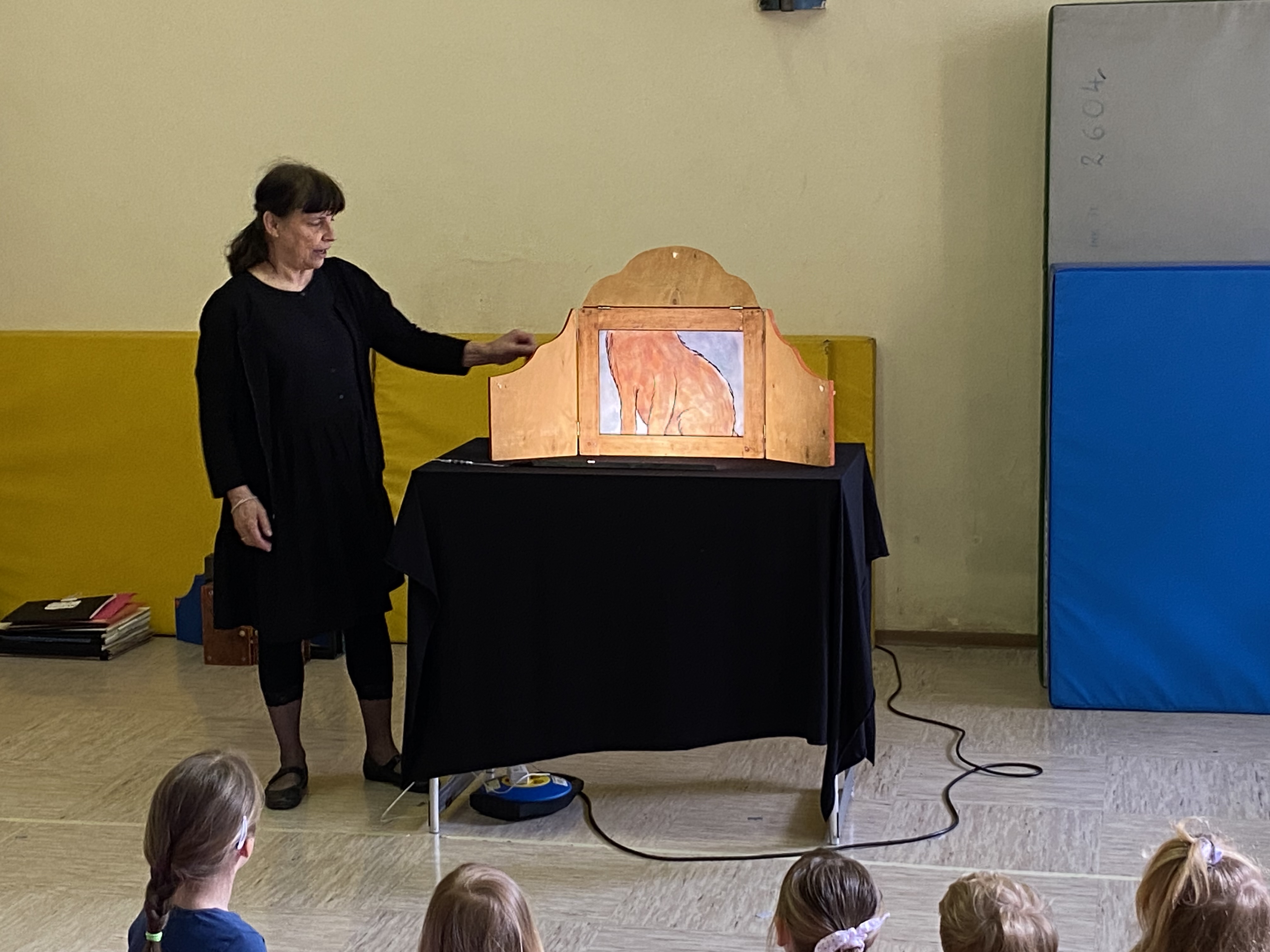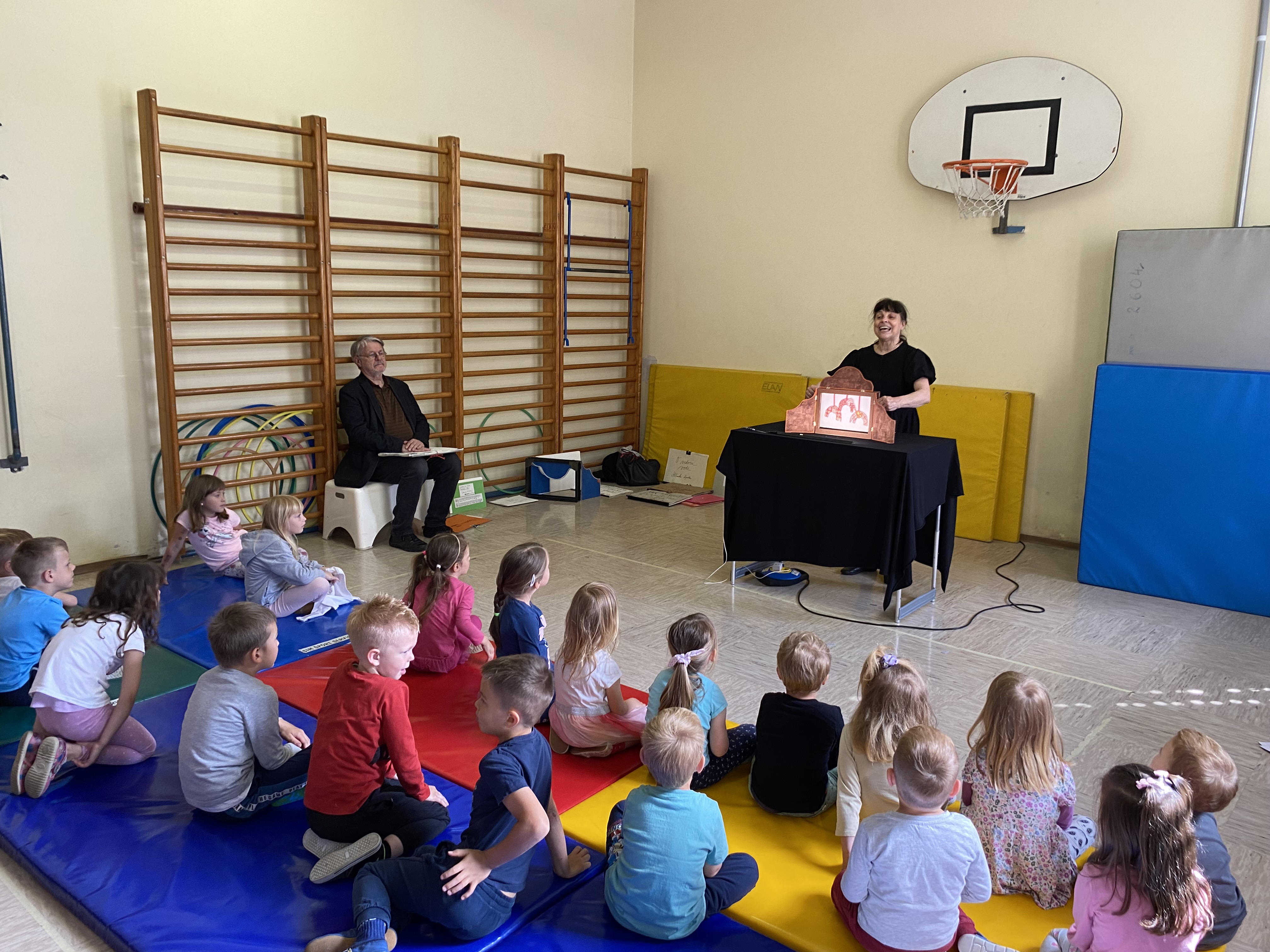 Otroci drugega starostnega obdobja vrtca Kojsko smo si ogledali kamišibaj predstavo pravljic, pesmi in ugank. Priznana lutkarja Igor Cvetko in Jelena Sitar sta izvedla zaokrožen kamišibaj program več kamišibaj zgodb, ob katerih smo neizmerno uživali.