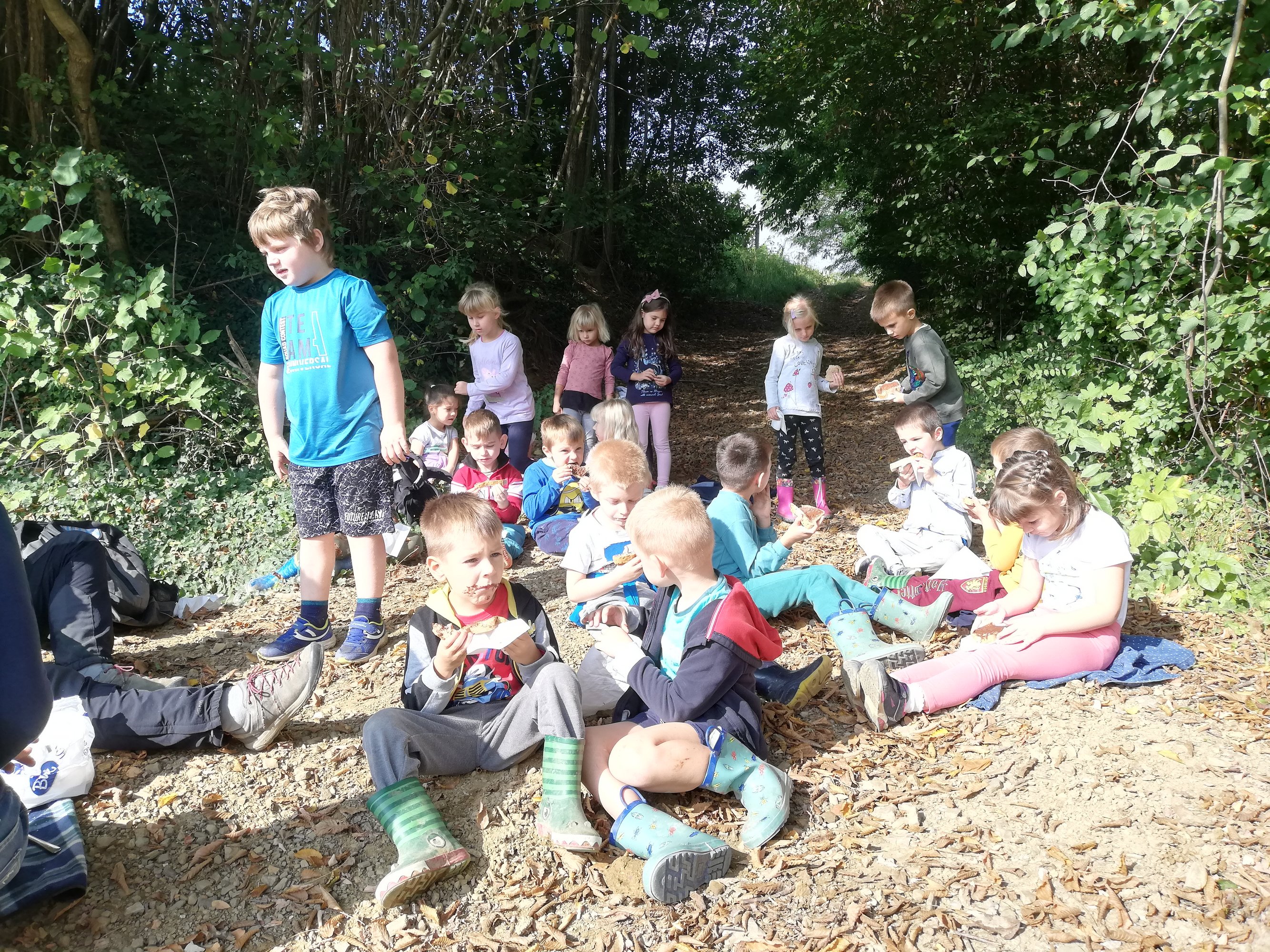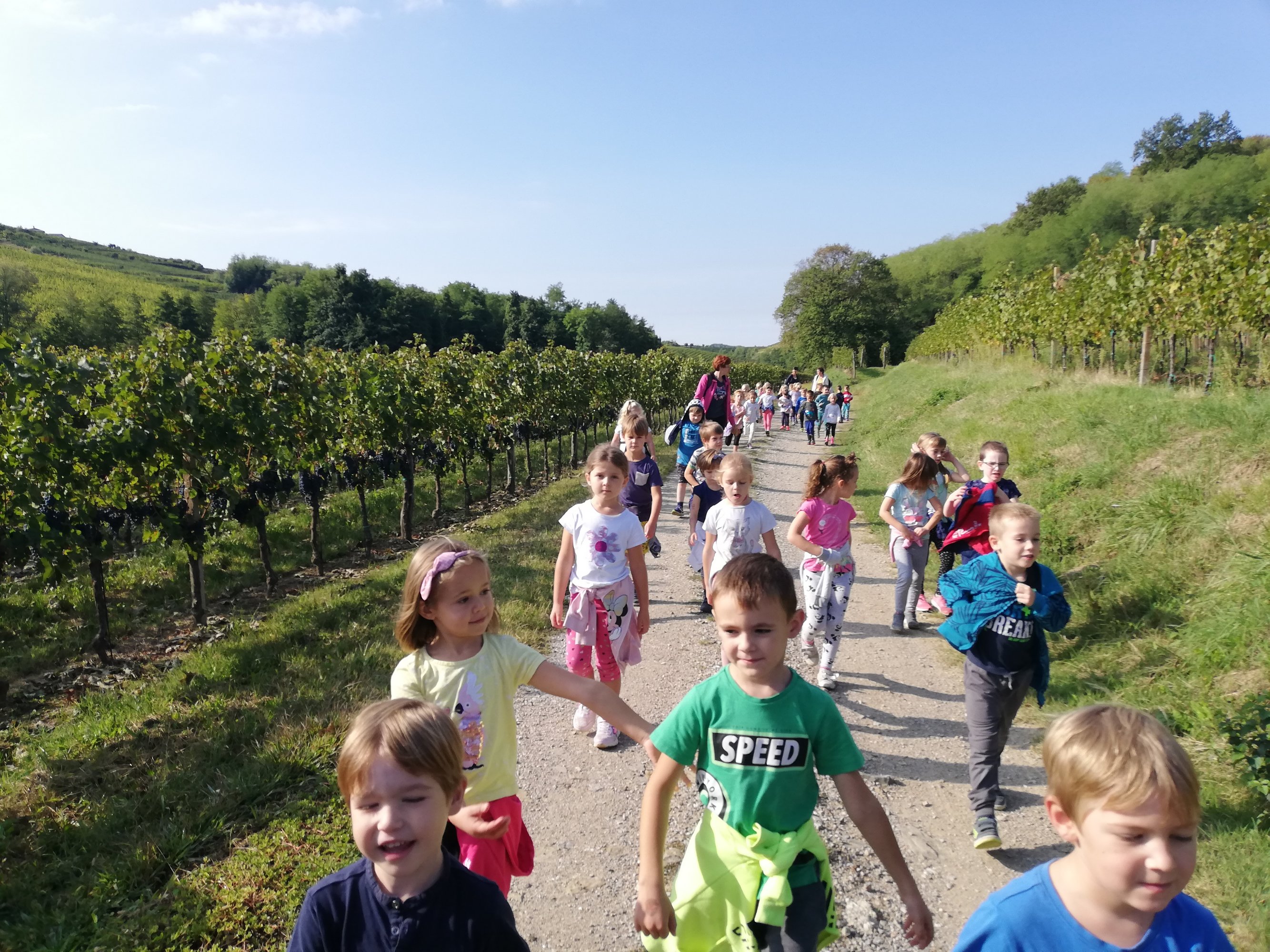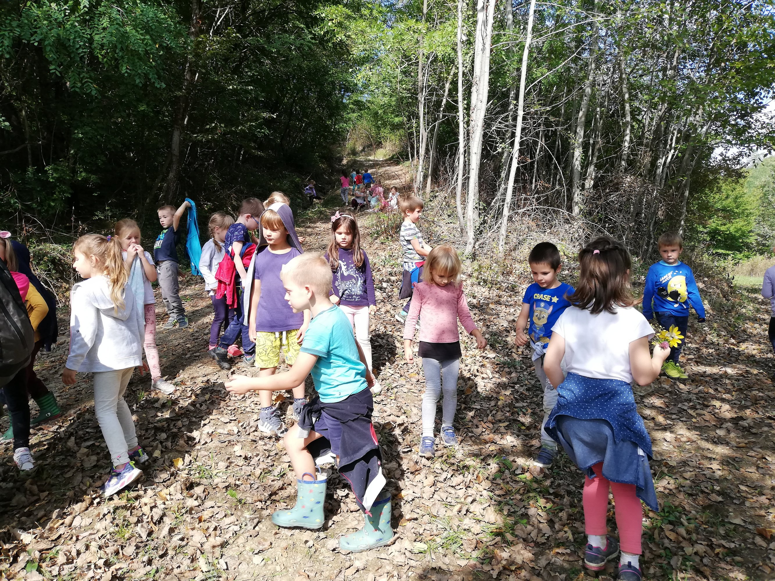 Otroci iz starejših skupin, ki obiskujejo vrtec v Biljani, smo se na prvi jesenski dan odpravili na pohod v okolico vrtca. Po asfaltni cesti smo se spustili do zaselka Župa in nato pot nadaljevali po dolini med Biljano in Kozano. Po poti smo srečali trgače, ki so obirali grozdje, opazovali smo ples jesenskega listja, ki je padalo dreves, hodili pa suhem listju in prisluhnili njegovemu šumenju, v potoku smo opazovali žabe in ribe, hodili smo po vodi, našli smo kostanj…. Po poti smo si poiskali primeren prostor in pomalicali. Preživeli smo lepo dopoldne in se odločili, da bomo pohod ponovili na prvi zimski dan in pogledali, kako se bo do takrat narava spremenila.