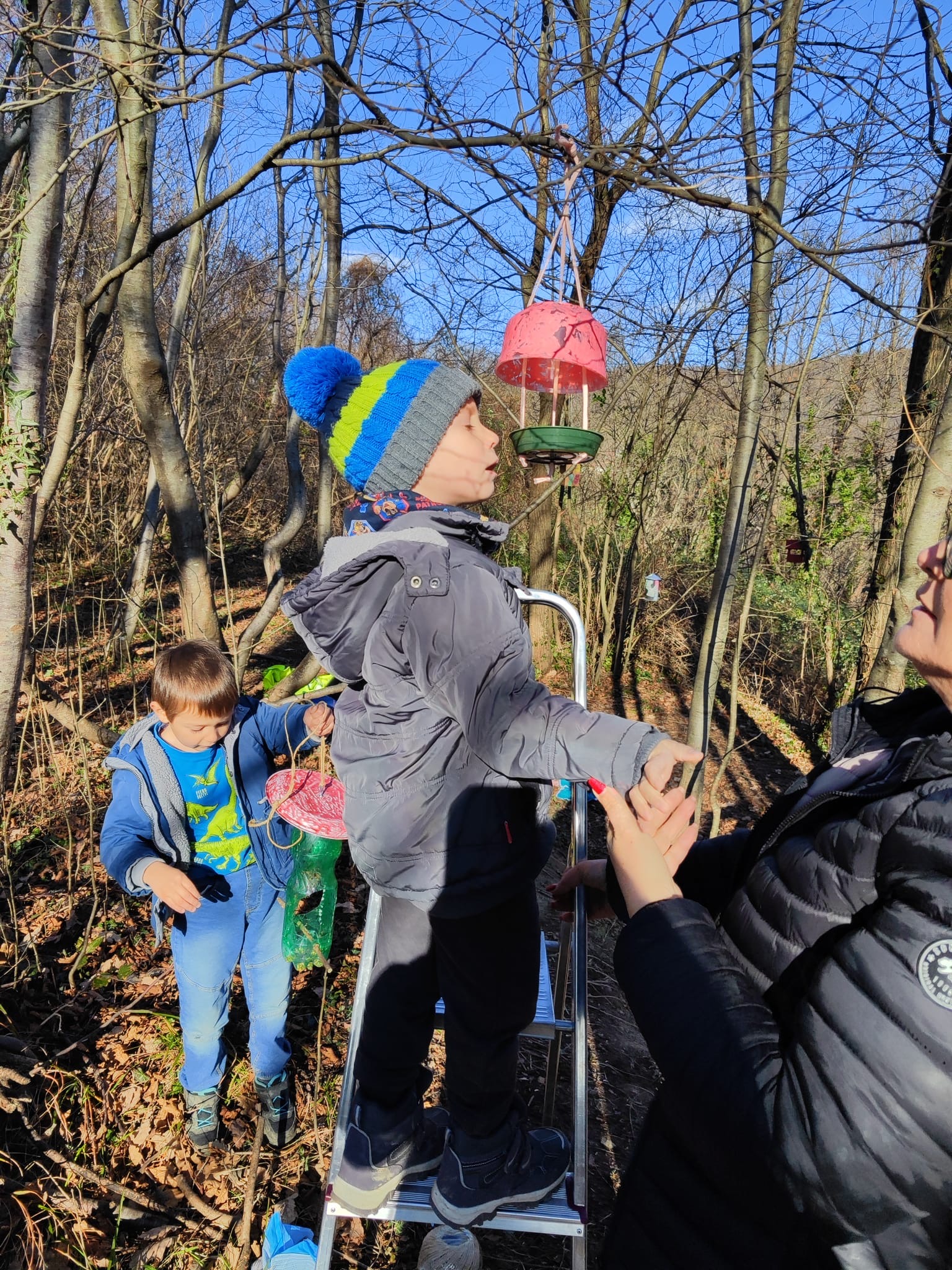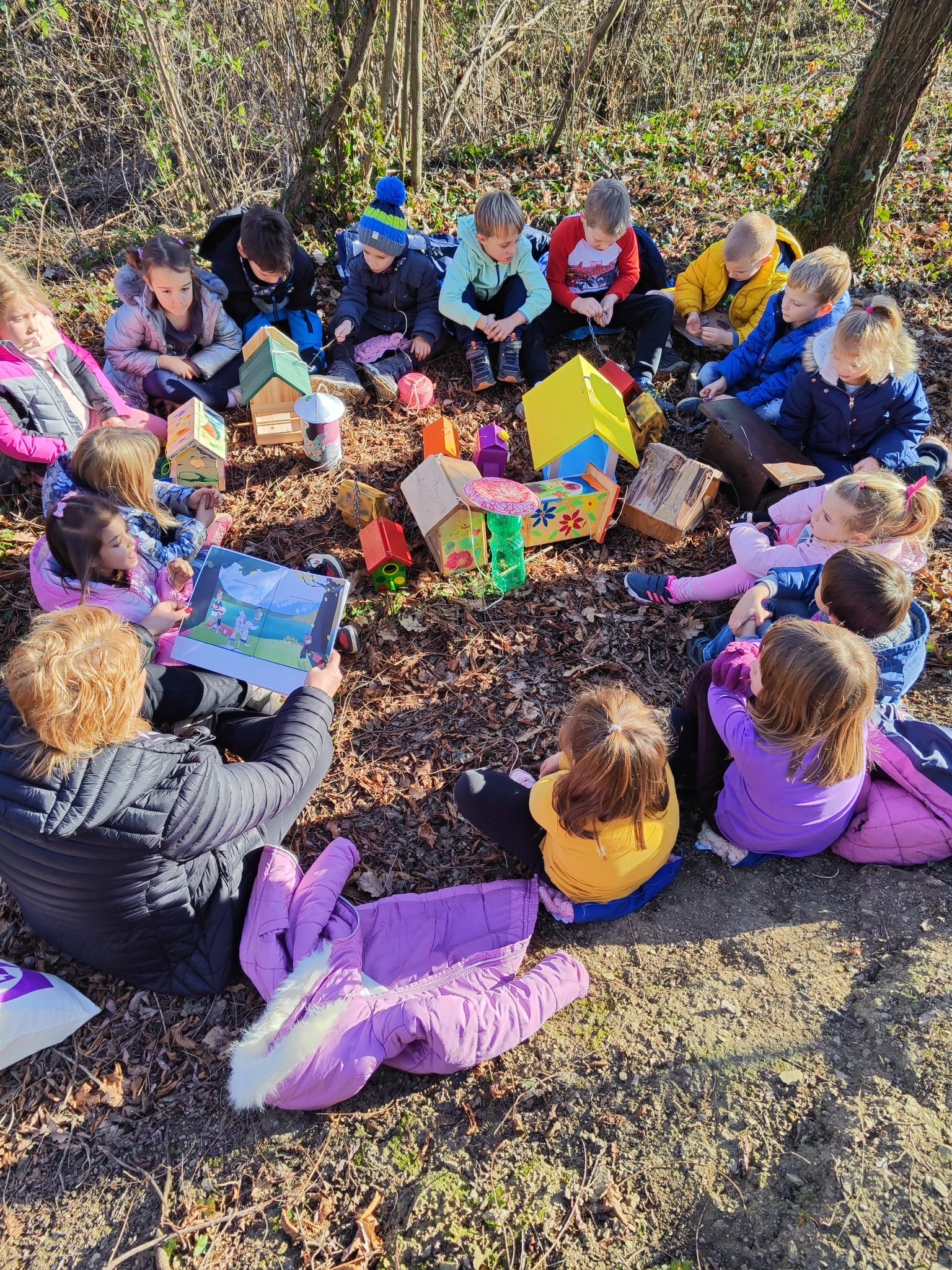 Izhodišče projekta je bila slikanica Zgodba o drevesu avtorice Barbare Vuga, ki nas je spodbudila k razmisleku o skrbi za druge in naravo. Otroci so s pomočjo staršev doma izdelali ptičje krmilnice, ki smo jih skupaj namestili na drevesa v našem gozdnem bralnem kotičku. Ob rednih obiskih gozda otroci opazujejo ptice, poslušajo njihove zvoke in v krmilnice dodajajo semena. Naučili so se tihega prihajanja v gozd, da ne preplašijo ptic, ter skozi opazovanje krepijo spoštovanje do narave. Dejavnost je povezala razvoj odgovornosti, empatije in jezikovnih spretnosti. Skupaj smo ustvarili okolje, ki spodbuja povezanost z naravo in medsebojno sodelovanje. Projekt je čudovit primer, kako lahko narava postane prostor za učenje, igro in razvoj vrednot.