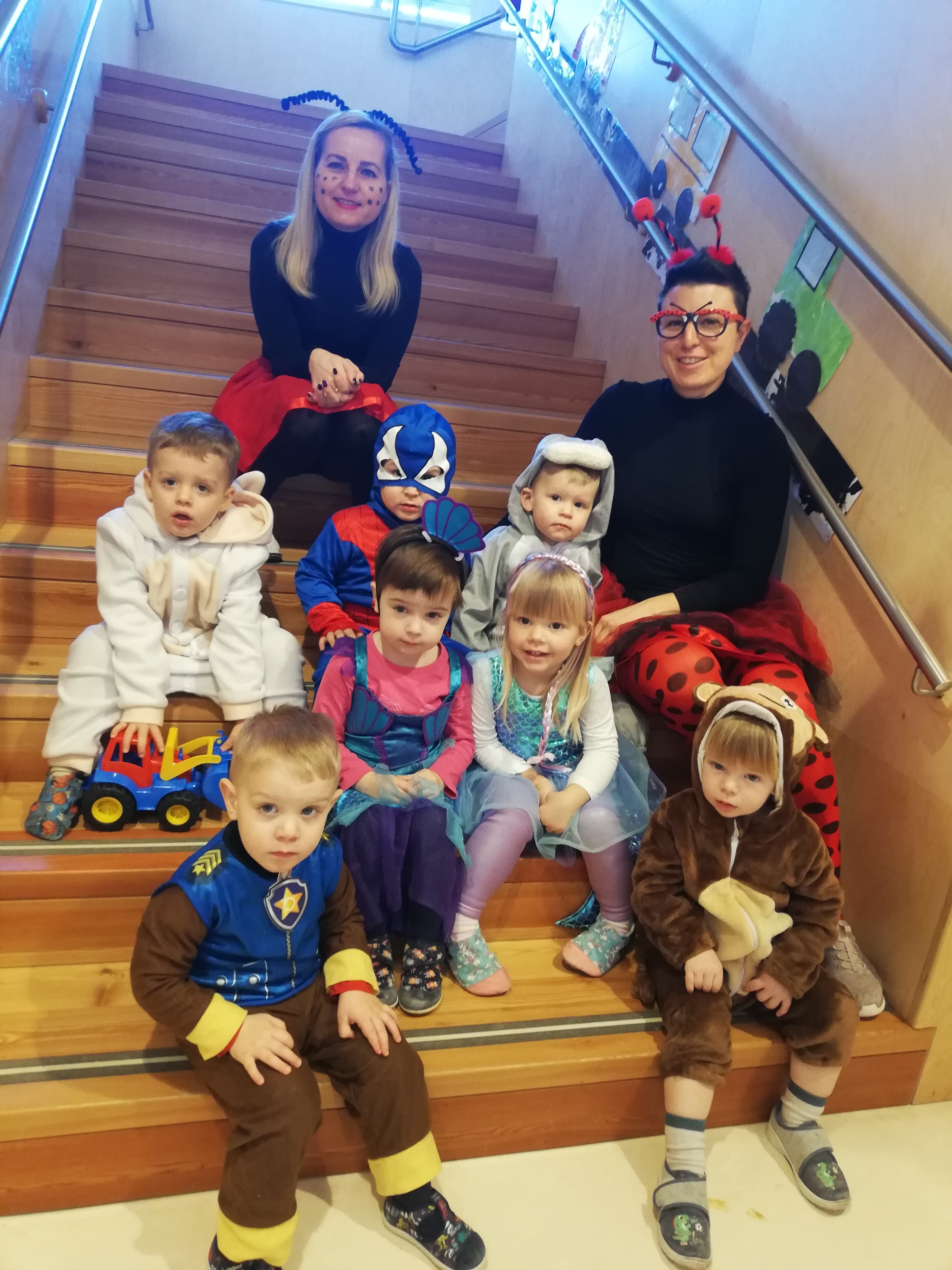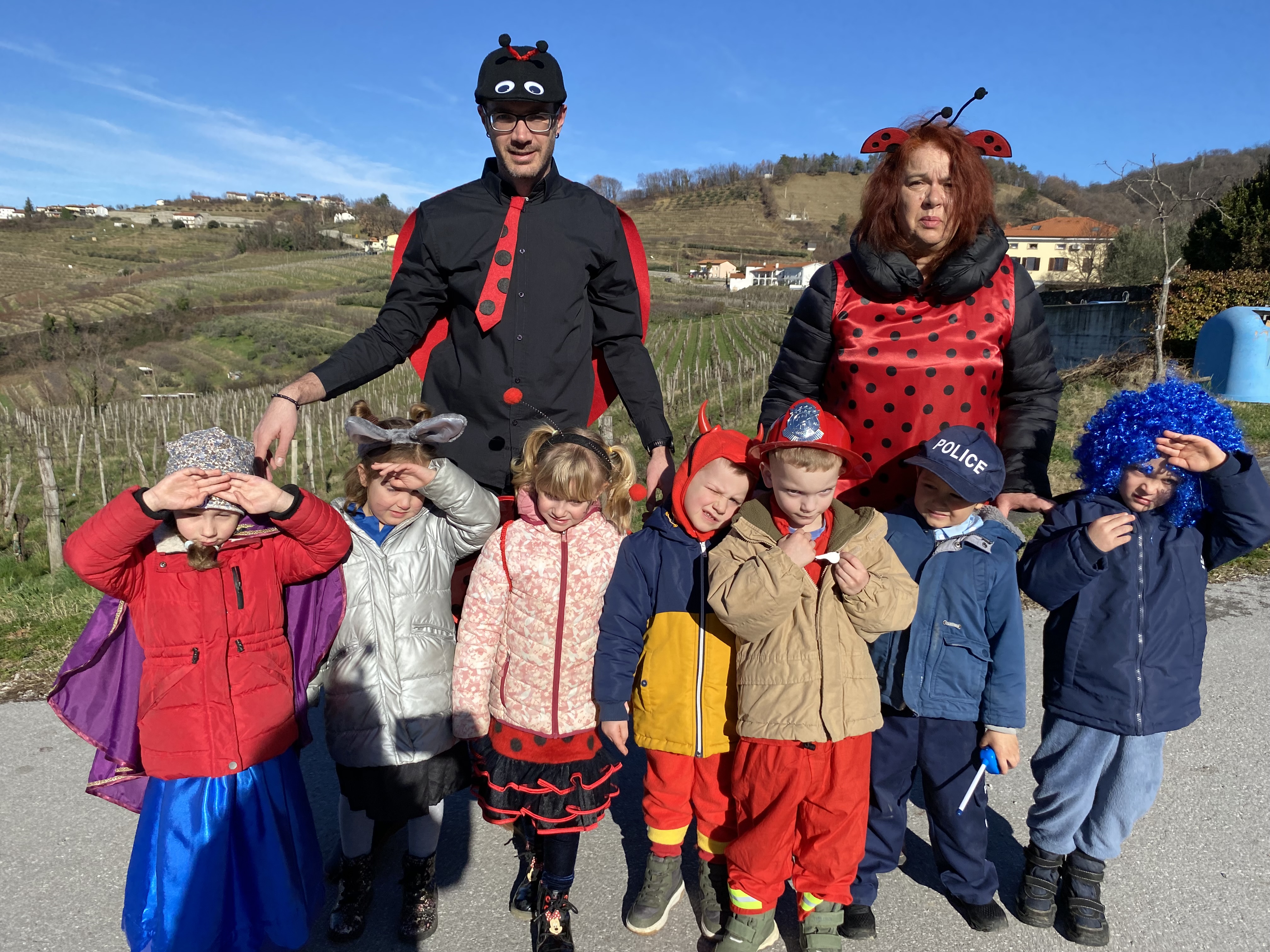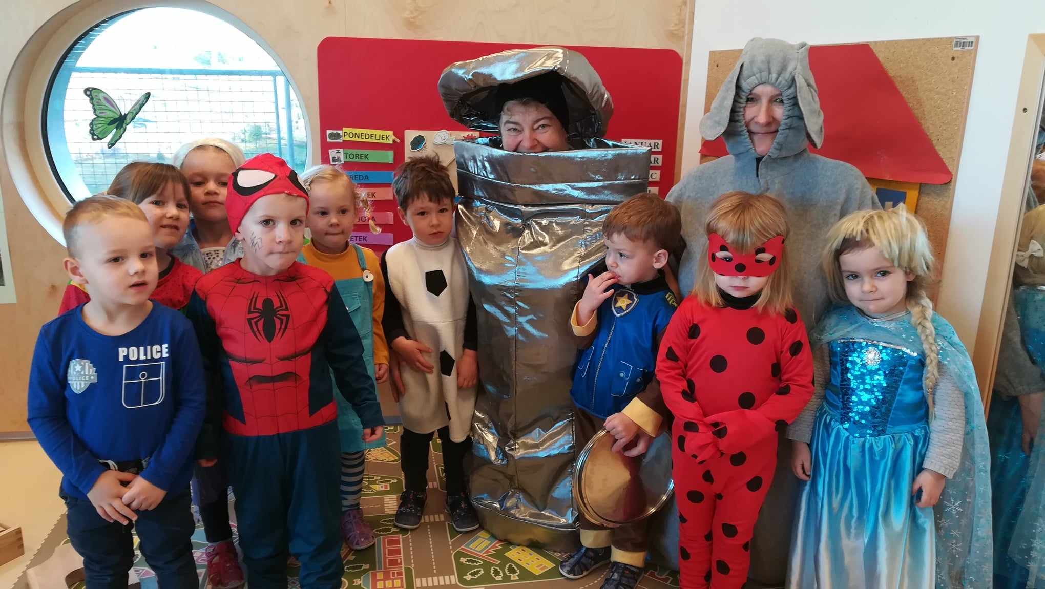 Na pustni torek je bilo tudi v našem vrtcu veselo in norčavo. Namesto otrok so v vrtec prišle pikapolonice, zajčki, policisti, dinozavri, Spidermani, Elze, gasilci, morske deklice, vojaki, gusarji in druge maškare. Najmlajše maškare so zimo odganjale na igrišču, tiste večje pa so v pustnem sprevodu odšle do Ria in tam veselo rajale. Svojo nalogo so dobro opravile saj je pustni torek že dišal po pomladi.