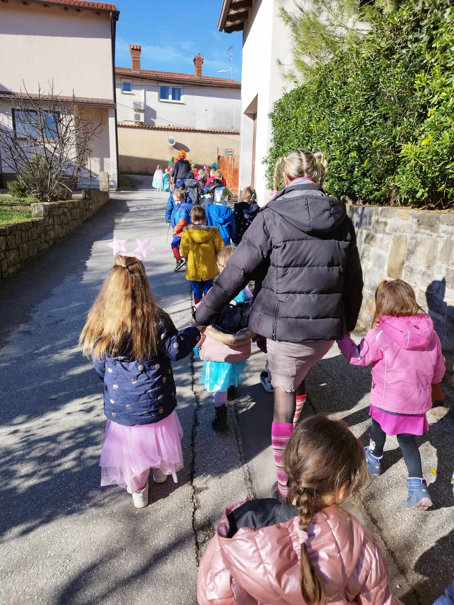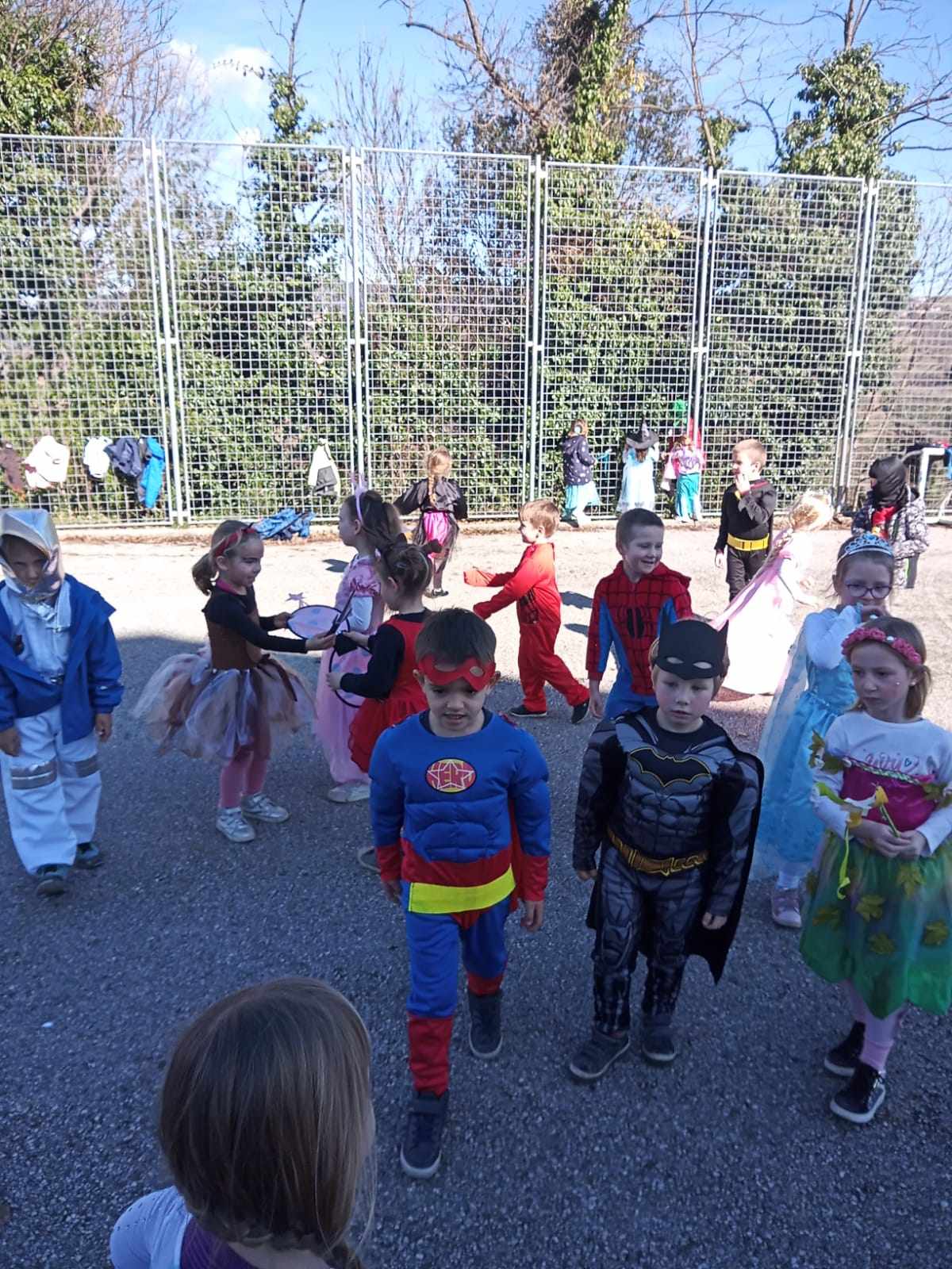 Pust smo začeli s povorko po Biljani, ob tem smo peli in poslušali glasbo. Pustno rajanje pa se je s plesom in glasbo zaključilo na igrišču.