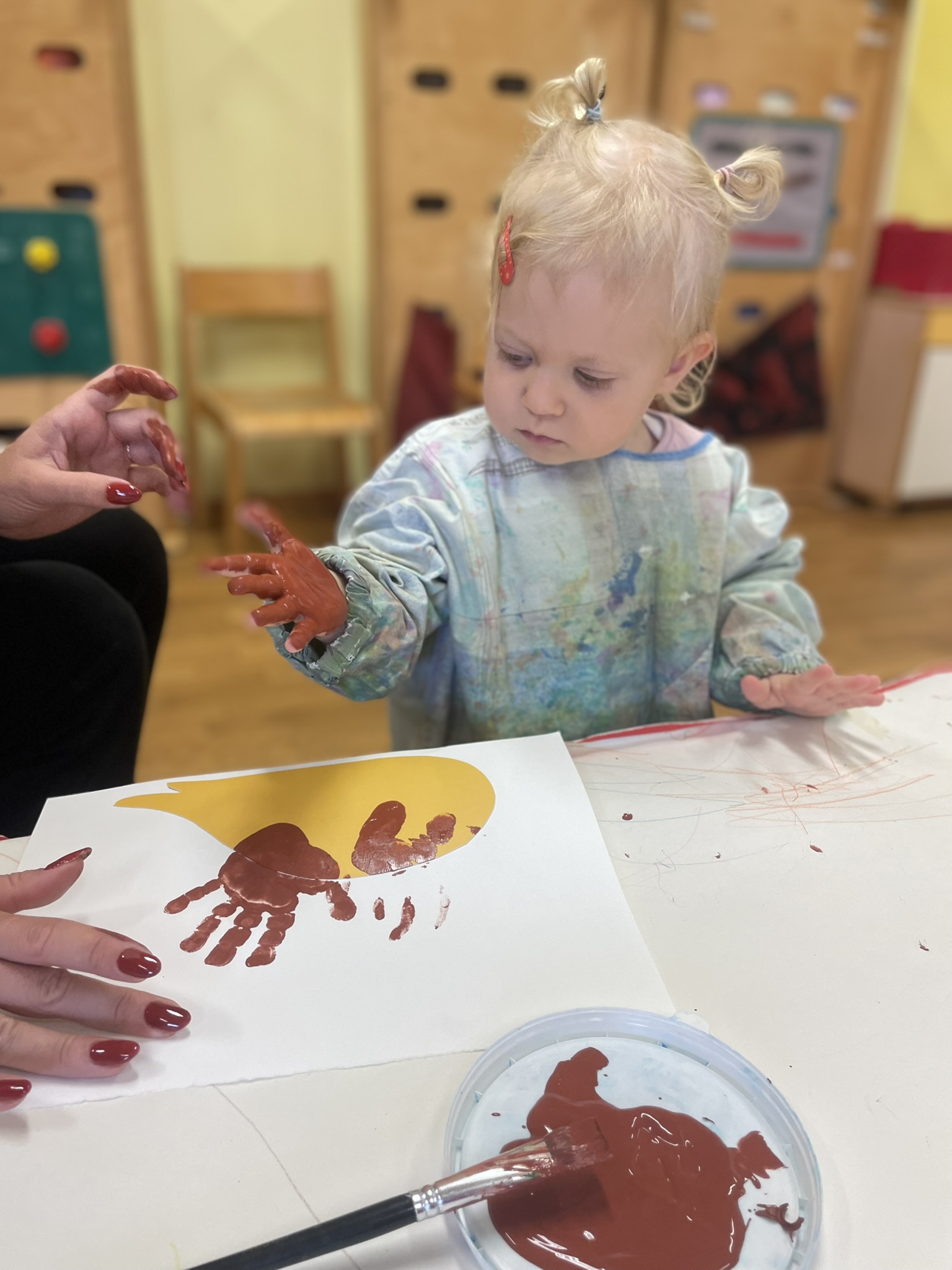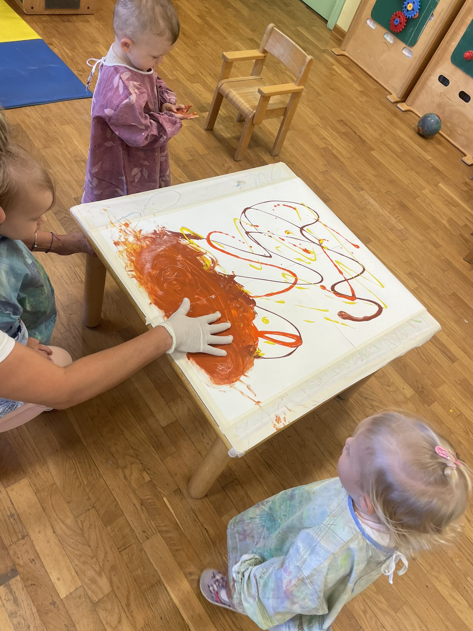 Otroci so imeli možnost uporabe tempera barv, s katerimi smo ustvarili dekoracijo, katera krasi našo igralnico in jedilnici.