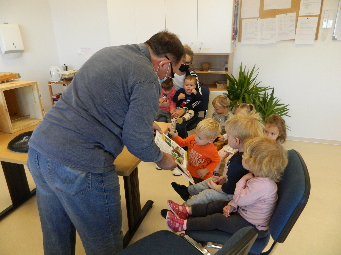 V sklopu teme Zdrava prehrana smo imeli v petek, 19. 11. 2021, slovenski tradicionalni zajtrk. Jedli smo maslo in med, jabolka ter pili mleko. Obiskal nas je tudi čebelar Danilo Štekar.