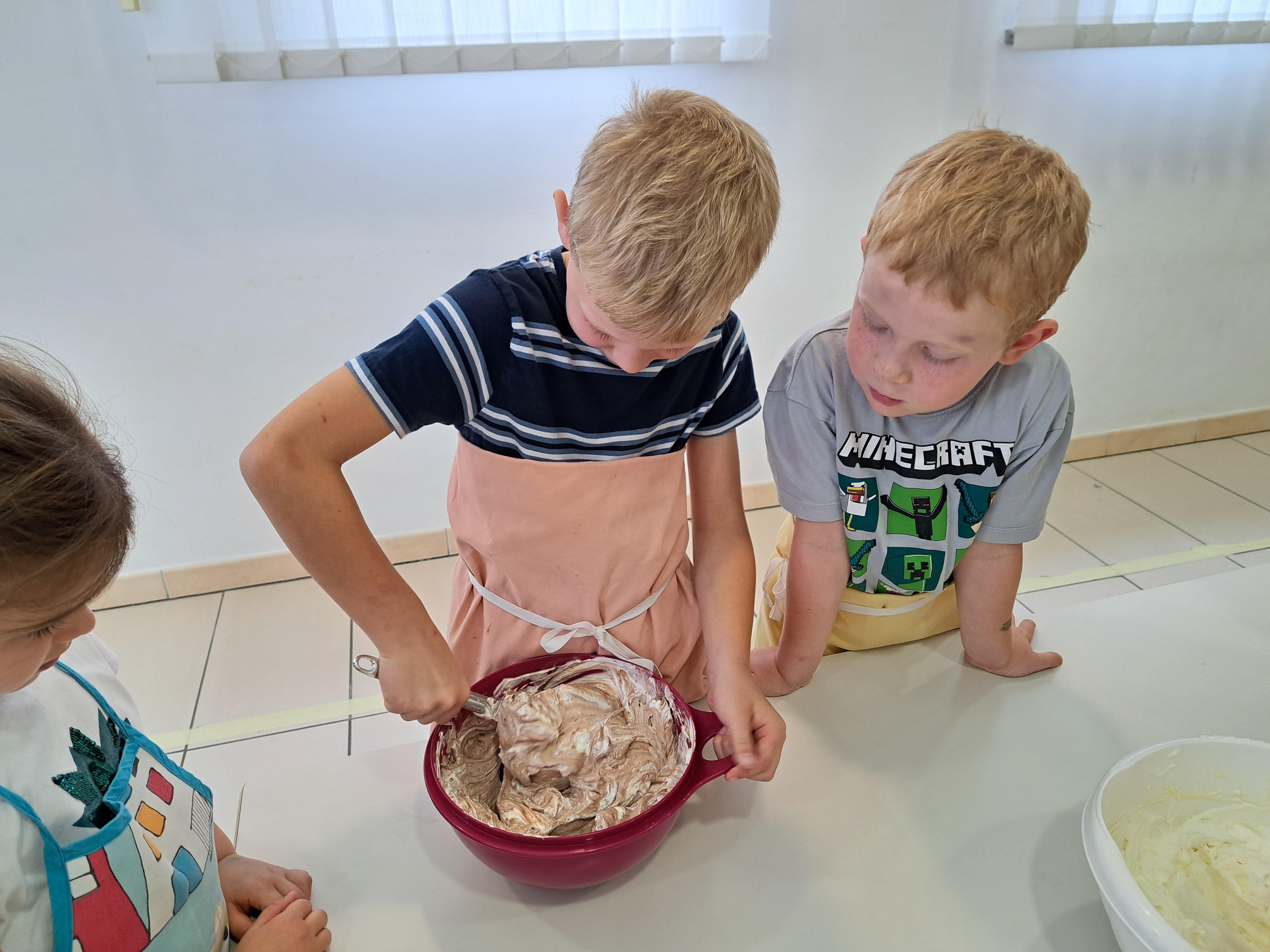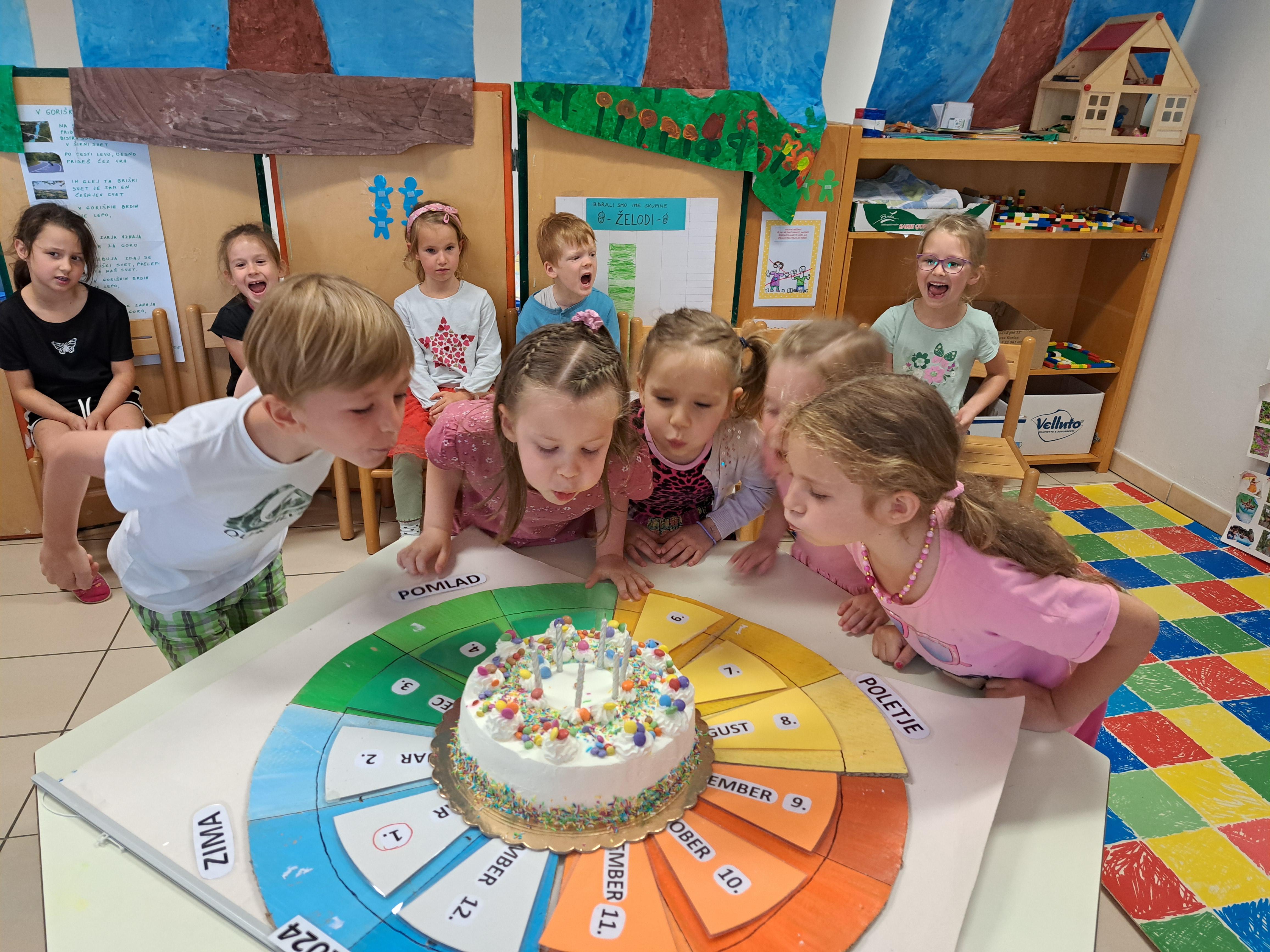 V skupini Želodi smo rojstne dneve, za otroke, ki praznujejo v poletnih mesecih praznovali na poseben način. Spekli smo torto.
