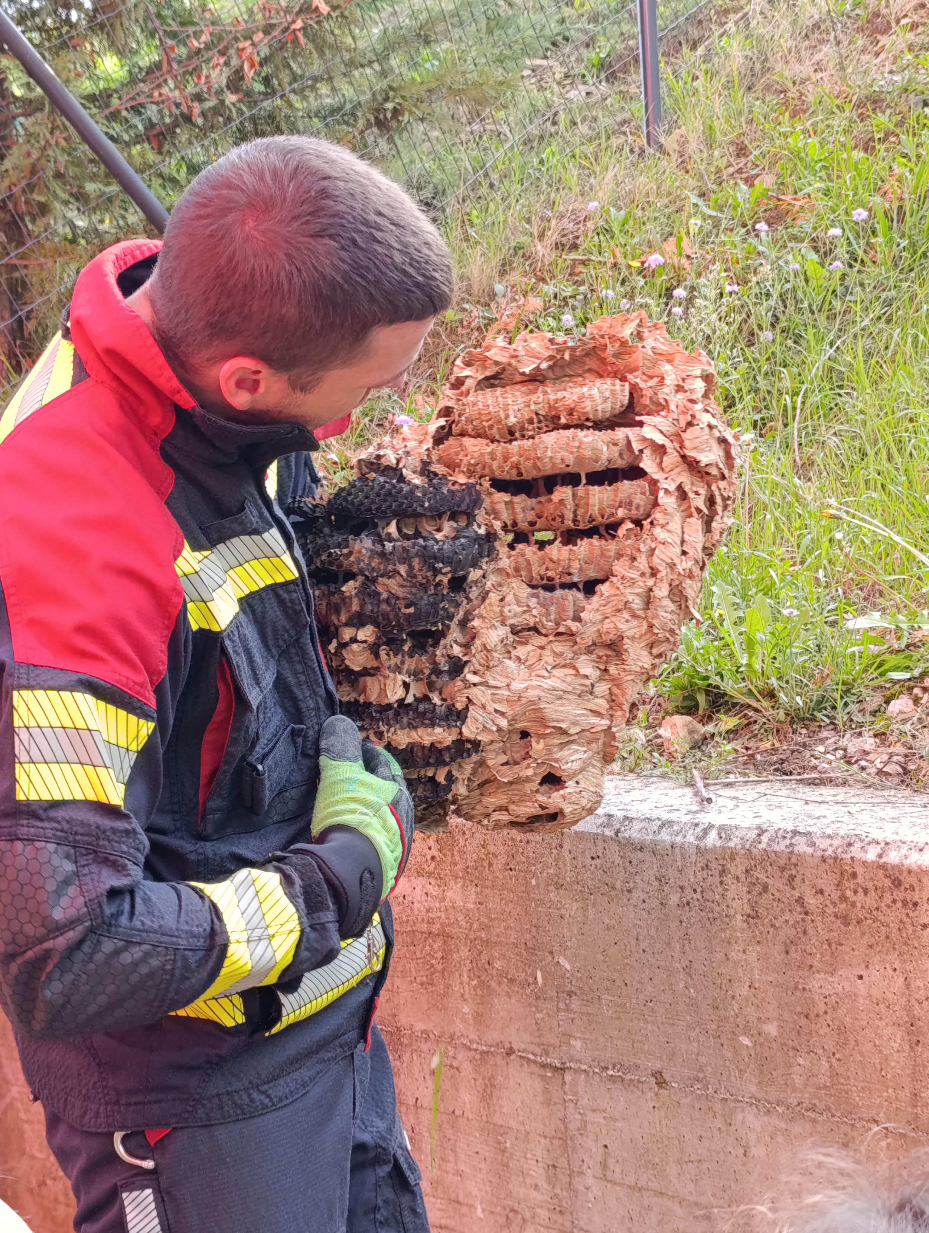 Po malici smo se peš odpravili do Dobrovega v tamkajšnji gasilski dom. Sprejela sta nas gasilca Vid in Matej in nam razkazala prostore gasilskega doma, opremo, ki jo gasilci uporabljajo pri svojem delu in gasilski kamion. Spoznali smo, da gasilci uporabljajo različne čelade in zaščitna oblačila glede na vrsto intervencije, ki jo opravljajo. Zanimive so nam bile velike hlače, ki jih gasilci oblečejo, ko posredujejo ob poplavah in zaščitna obleka, ki jo uporabljajo pri odstranjevanju sršenjih gnezd. Eno od gnezd nam je gasilec Vid tudi pokazal. Za konec smo se še sami preizkusili v špricanju z vodo.