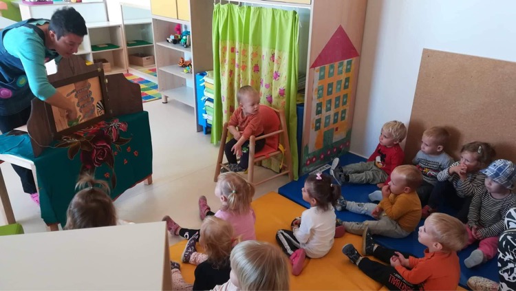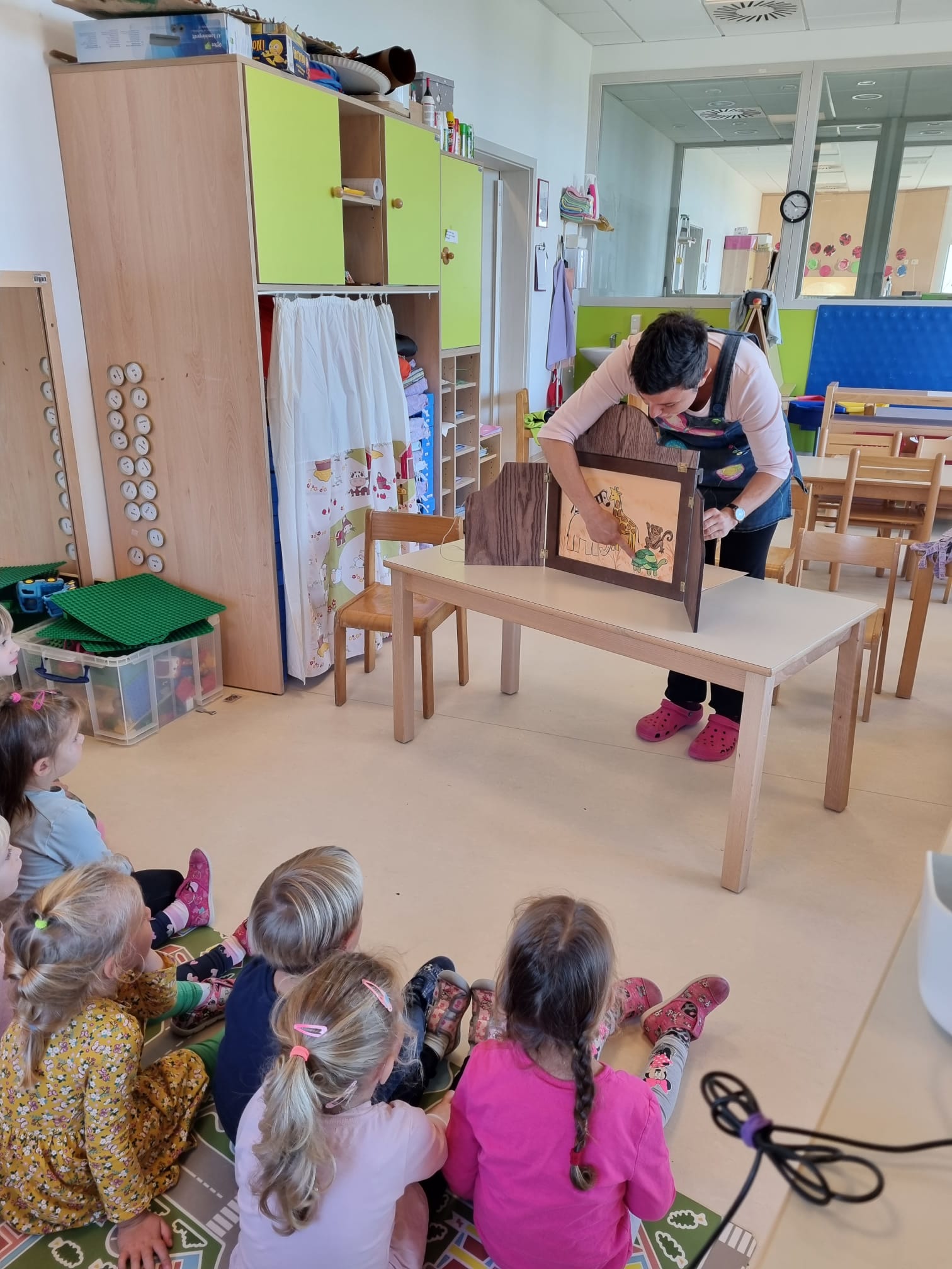 • poslušali smo pripovedovanje zgodbe Ime čarobnega drevesa, s pomočjo gledališča kamišibaj,