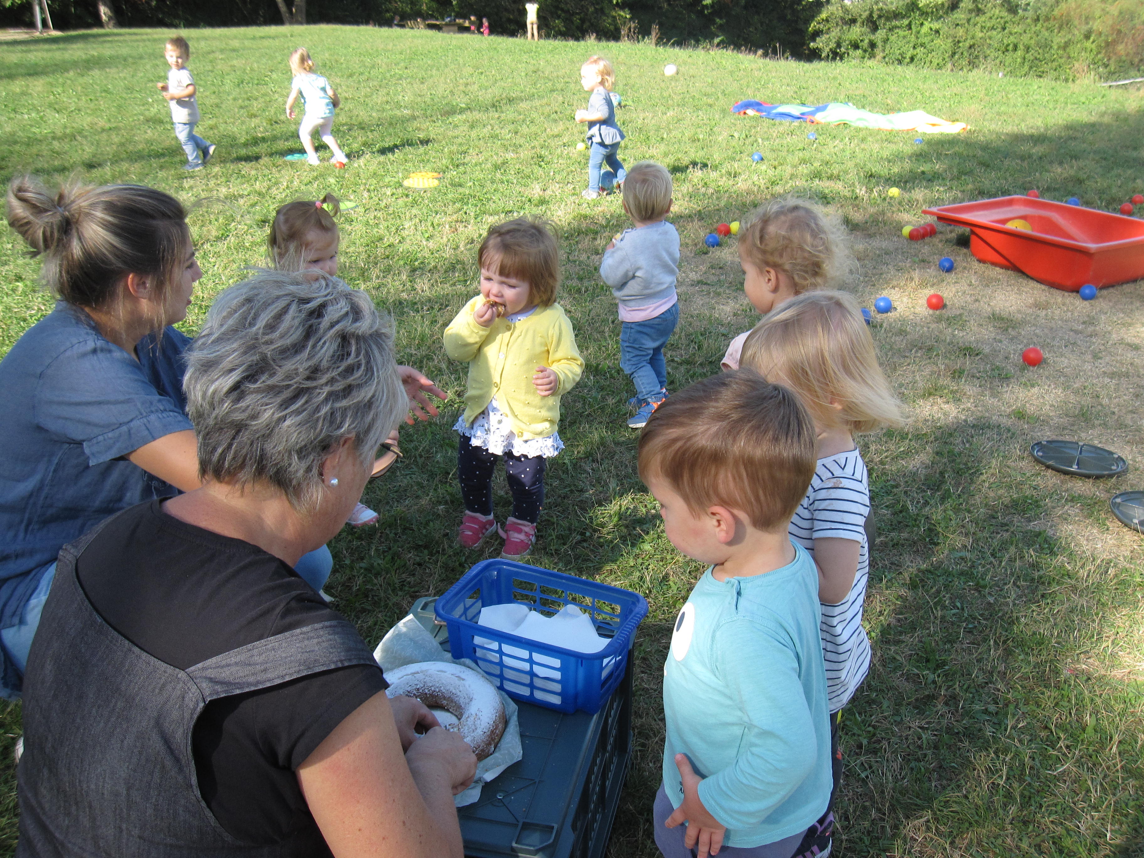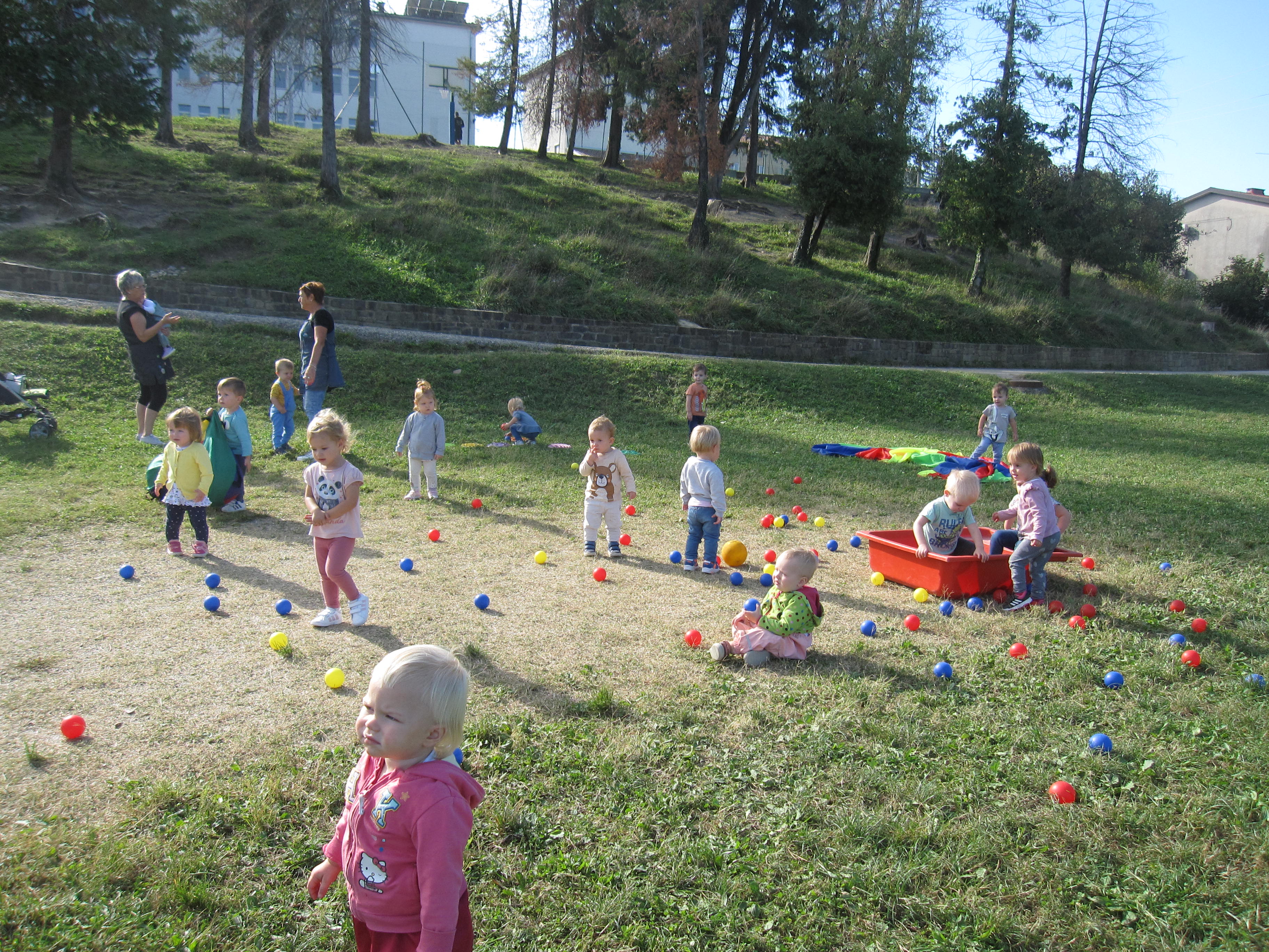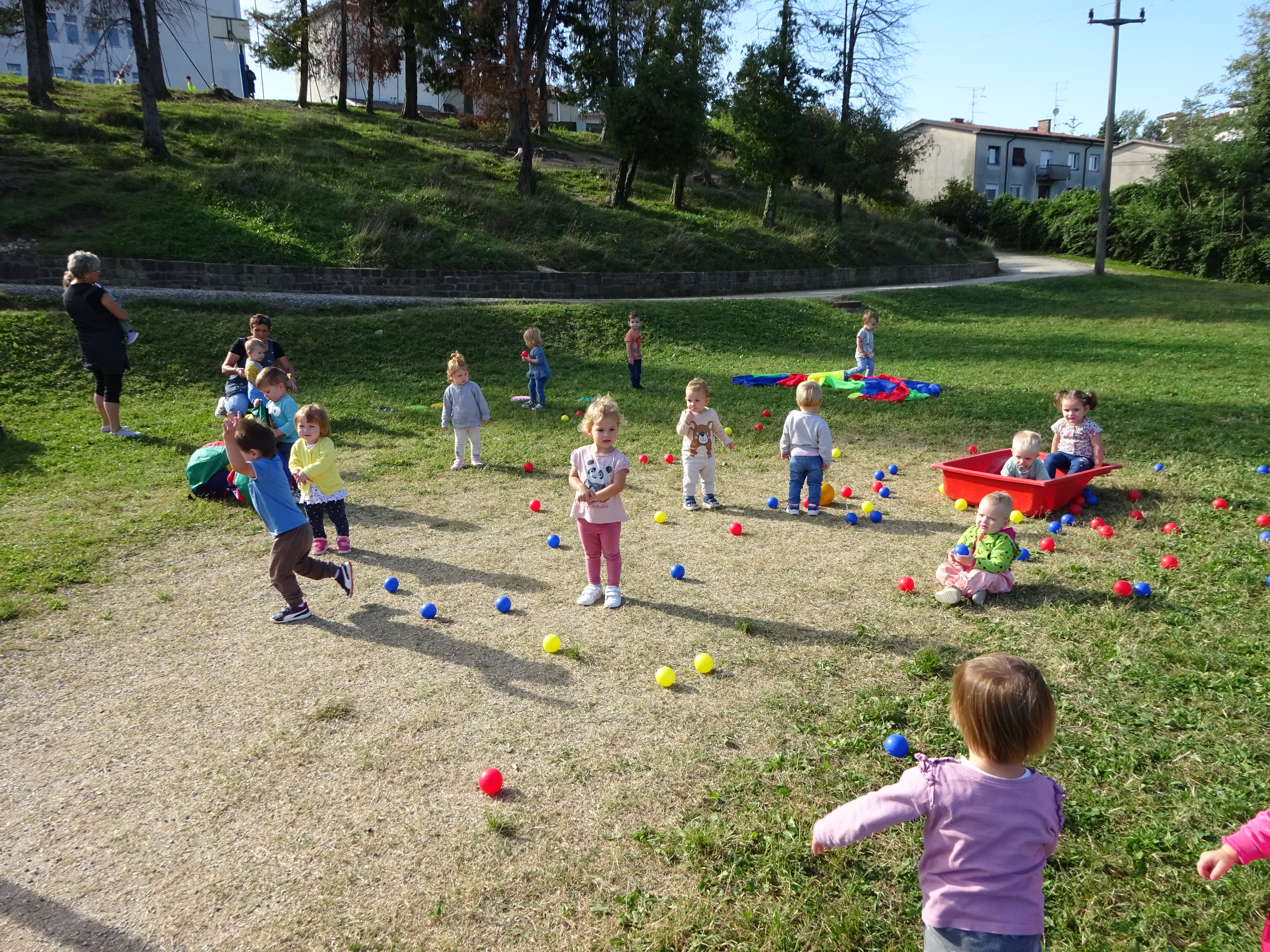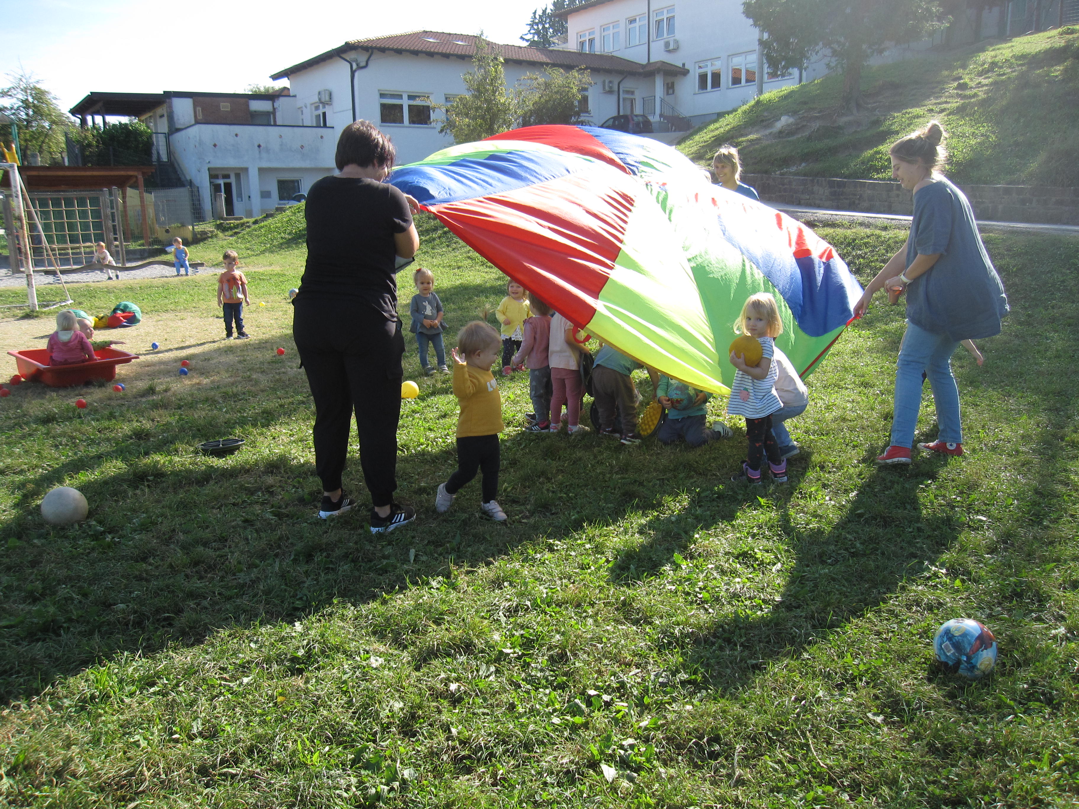 V tednu otroka s sloganom "Zakaji in zatoji radovednosti" smo v petek, 6.10.2023, jaslične skupine izpeljale druženje na travnatem igrišču. Skupaj z otroki smo zarajali ob glasbi ter premagovali različne gibalne izzive. Za konec smo se posladkali še z marmornim kolačem. Zelo smo se zabavali.
