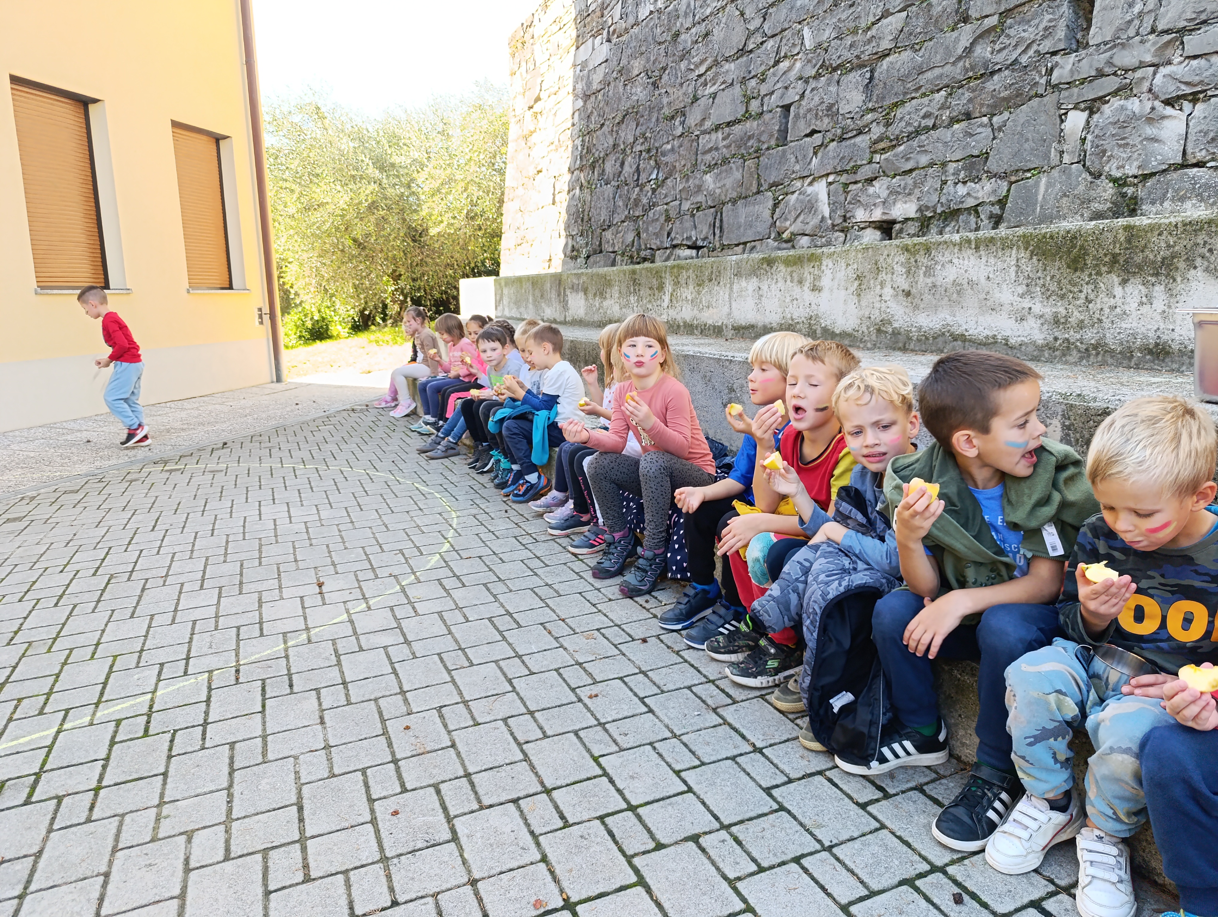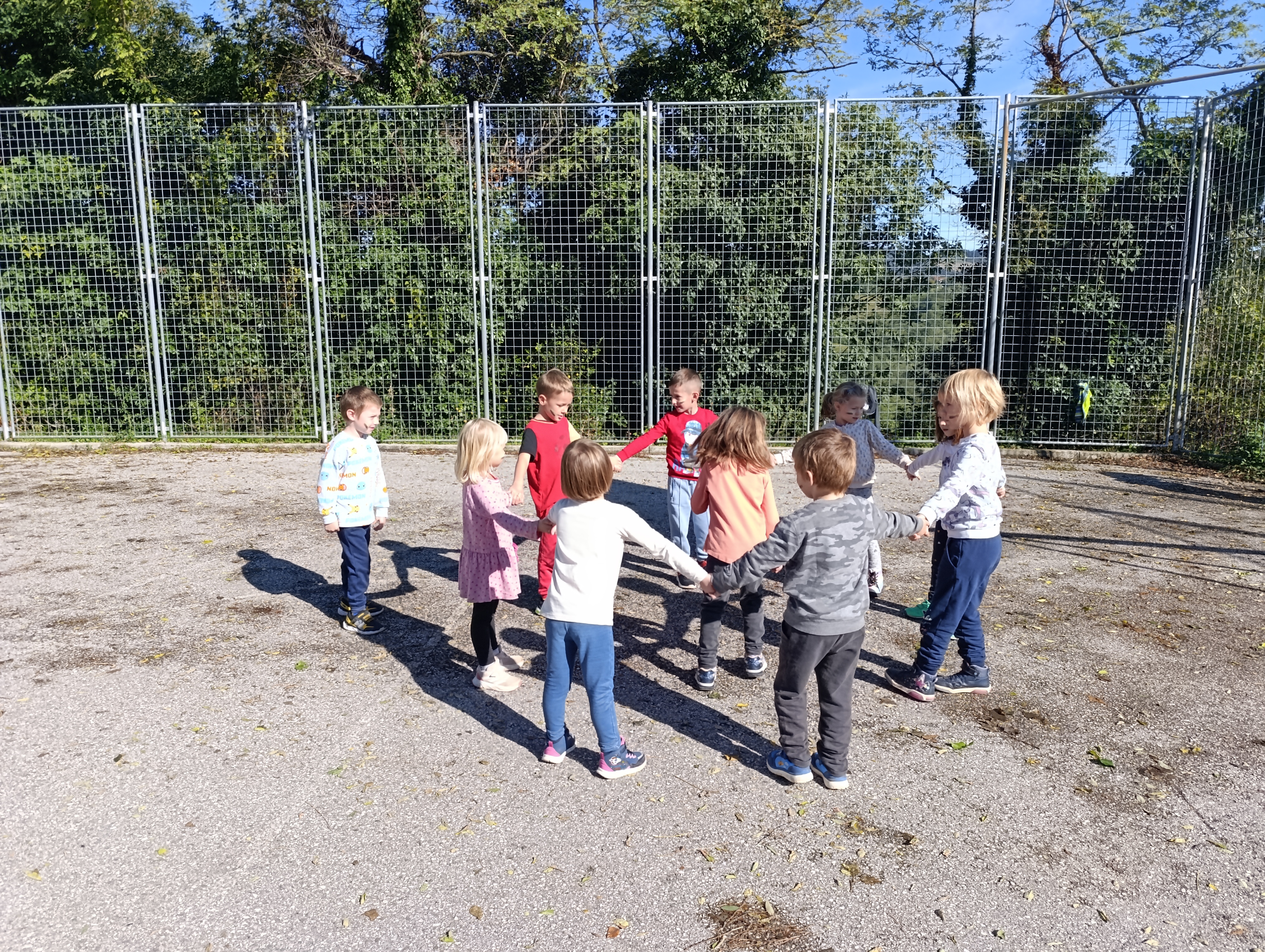 V tednu otroka je bilo tudi v vrtcu v Biljani pestro in igrivo.  Rdeča nit z naslovom Otrok, nepopisan list, nas opominja, kako pomembno je, da otrokom omogočimo pogoje za srečno in izpolnjujoče otroštvo. Teden smo začeli s pogovorom o tem kdo so otroci in kaj radi počnejo. Ugotovili smo,da se otroci radi igrajo, preživljajo čas s starši in sorojenci ter jejo sladkarije.  Tako smo se preko celega tedna igrali in se naučili novih iger.  Pogovarjali smo se o tem kako so se igrale naše none in nonoti. Povabili smo jih tudi na pohod , ki pa ga zaradi dežja nismo uspeli izvesti. Teden smo zaključili na igrišču, kjer smo se razdelili v skupine in se igrali Pšenico, Slepo miš, Mačko in miš ter preskakovali vrv.
