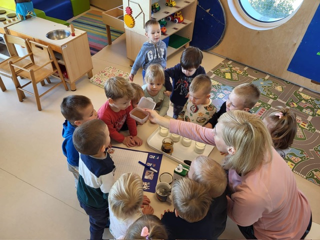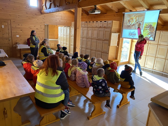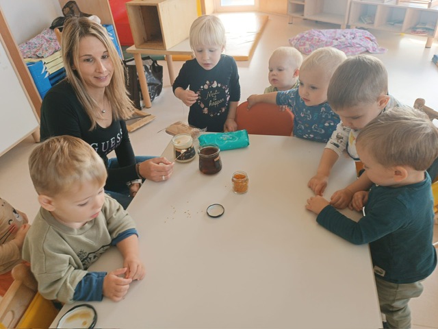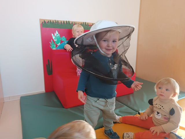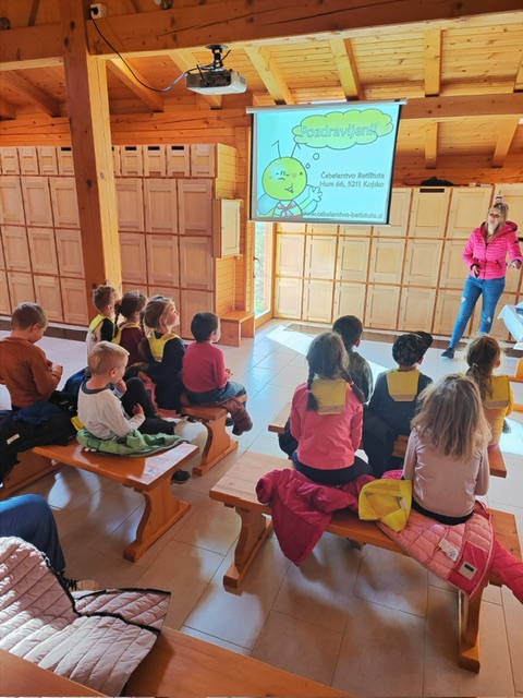Četrtek nam je kot zdaj že par let, tudi letos polepšala čebelarka Elis iz Čebelarstva Batištuta: najmlajši dve skupini je obiskala kar v vrtcu. Predstavila nam je svoje delo in čebele, nadeli smo si čebelarski klobuk in seveda poizkušali sladek med in zdravilen cvetni prah- te majhne, vitaminov polne kroglice so nam bile še posebej všeč. Starejše skupine pa je povabila v svoj čebelnjak, kjer smo izvedeli vse o delu čebelarja in imeli pravo medeno degustacijo. Elis, tebi in tvojim čebelam hvala za lep in sladek četrtkov dopoldan!