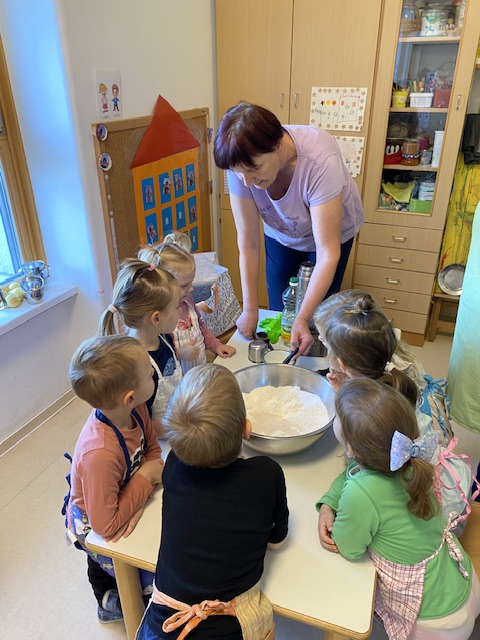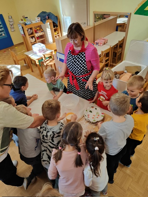 Povabili smo mame in none, da so z nami spekle kruh-cel vrtec je čudovito dišal po sveže pečenem kruhu.