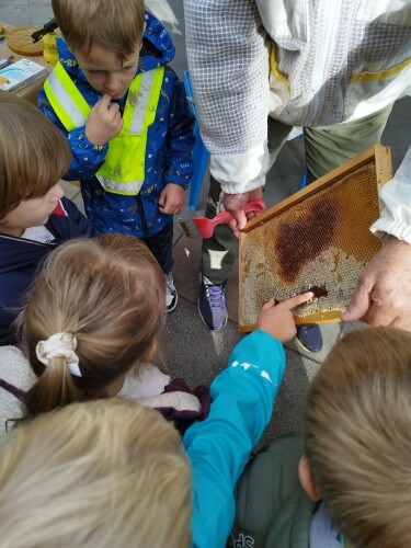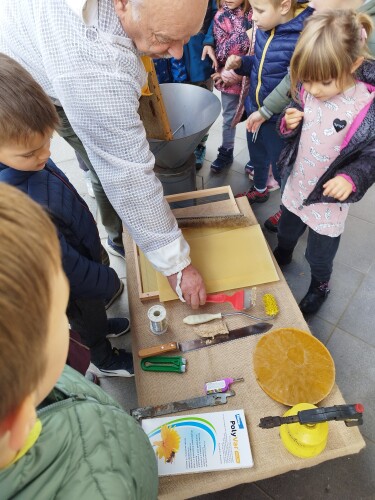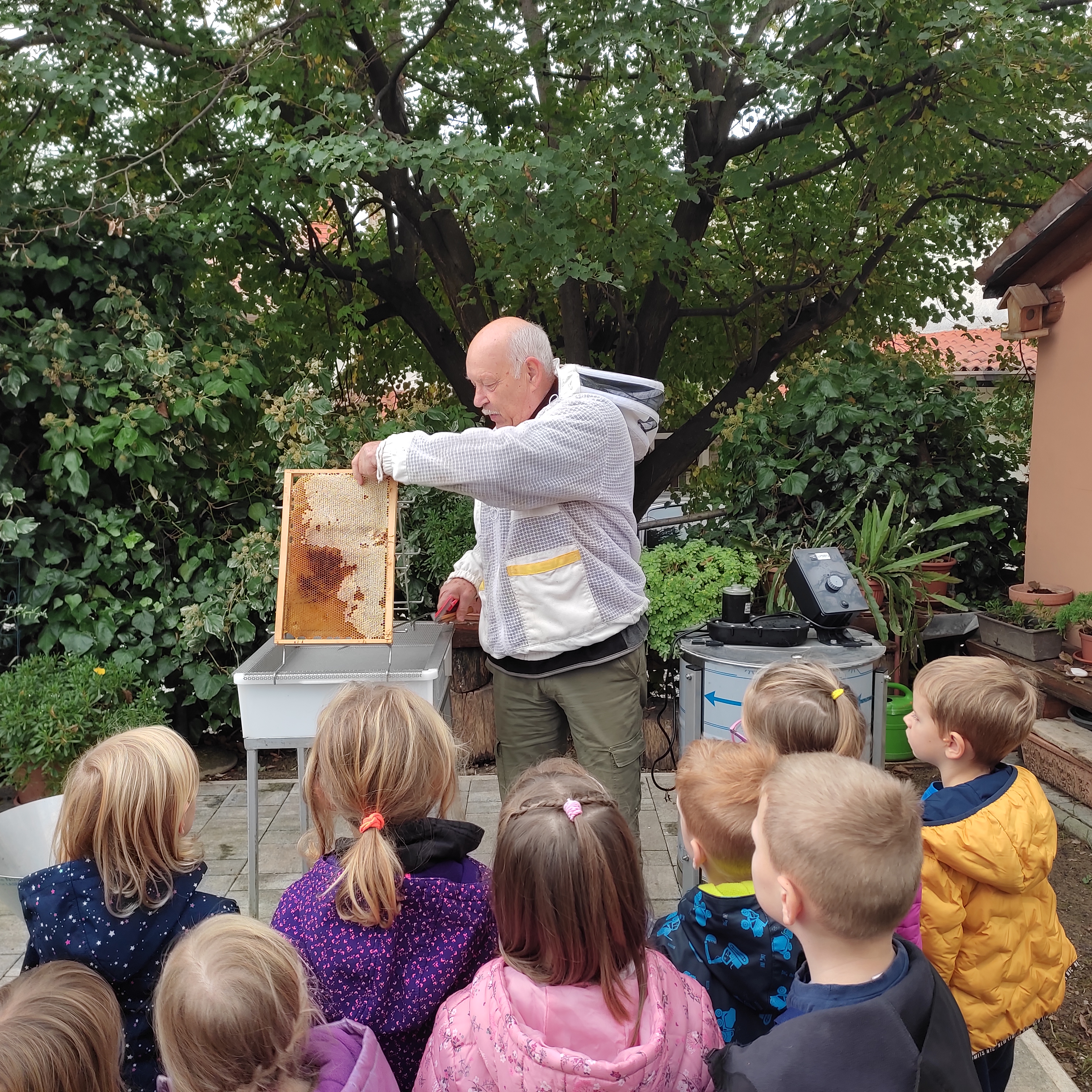 Obiskali smo čebelarja g. Danila Podvrščka, ki nam je izčrpno predstavil življenje čebel in delo čebelarja. Pokazal nam je pripomočke, ki jih čebelar potrebuje, ter nam pokazal čebelnjak, ki ga je sam poslikal. V istem tednu, pa so nas obiskale tudi njihove članice in nam pokazale, kako se zamesi kruh.