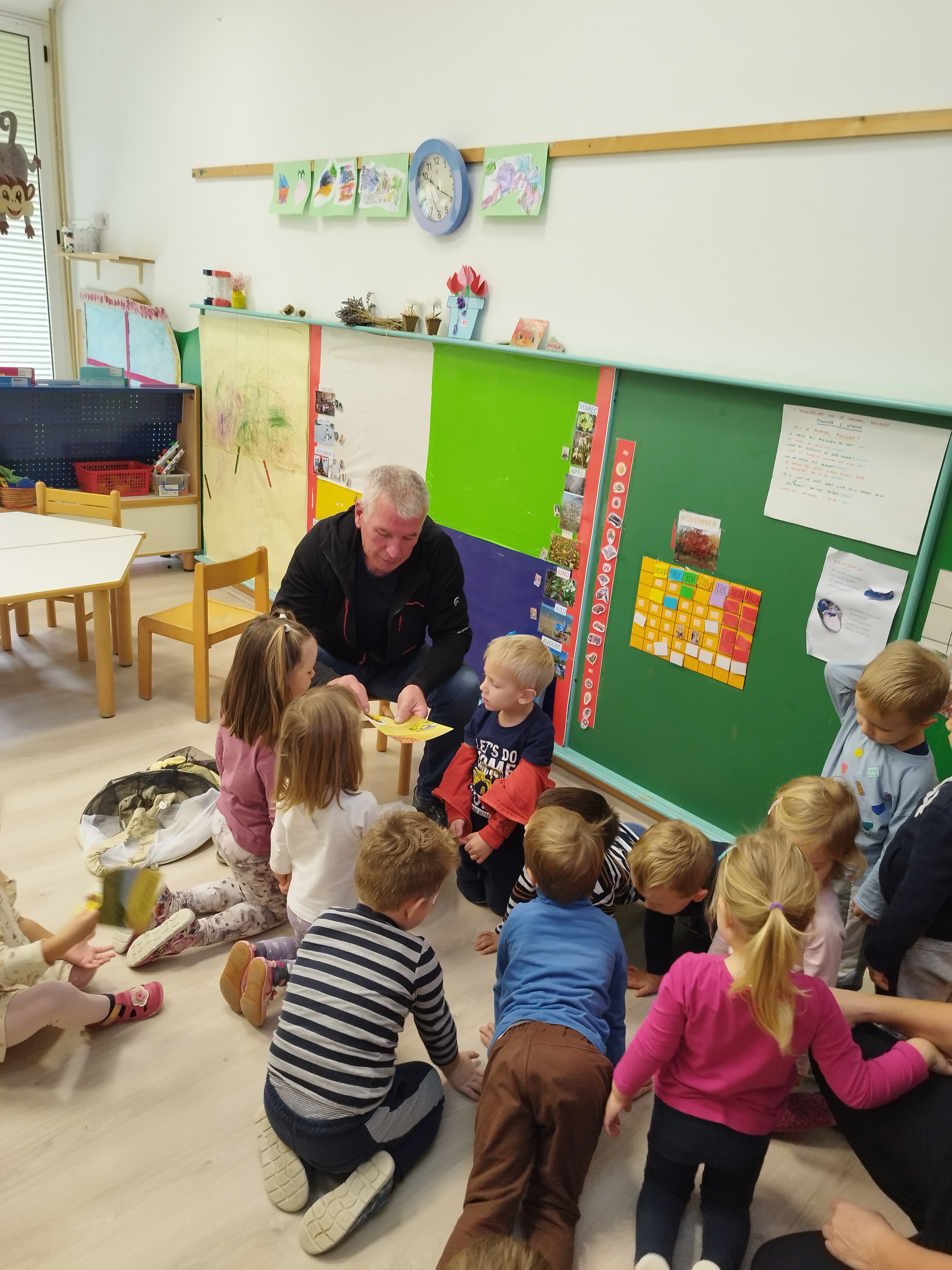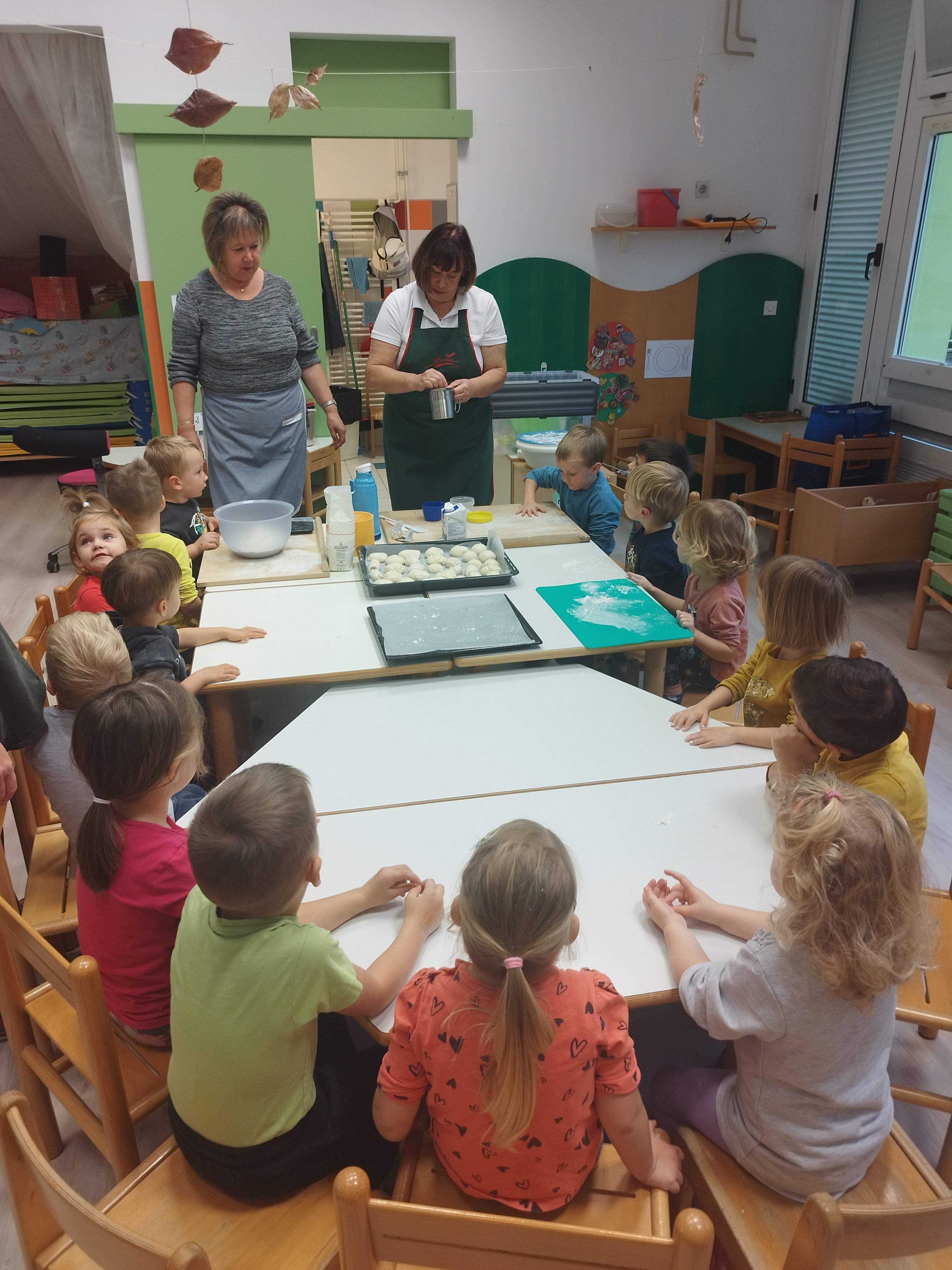 Tudi letos, smo na glavni dan slovenske hrane, 17.11.2023, zajtrkovali s kruhom, medom, maslom, mlekom in jabolki. Dan pred tem pa nas je obiskal čebelar Oskar, ki nam je predstavil življenje, delo in pomen čebel. Poizkuisili smo med, cvetni prah ter si nadeli čebelarsko obleko.  Prav tako pa so nas v naslednjem tednu z obiskom razveselile gospe iz Društva kmečkih žena, ki so nam prikazale, kako se umesi in speče kruh. Nastale so slastne žemljice in hlebi, ki smo jih z užitkom pojedli.