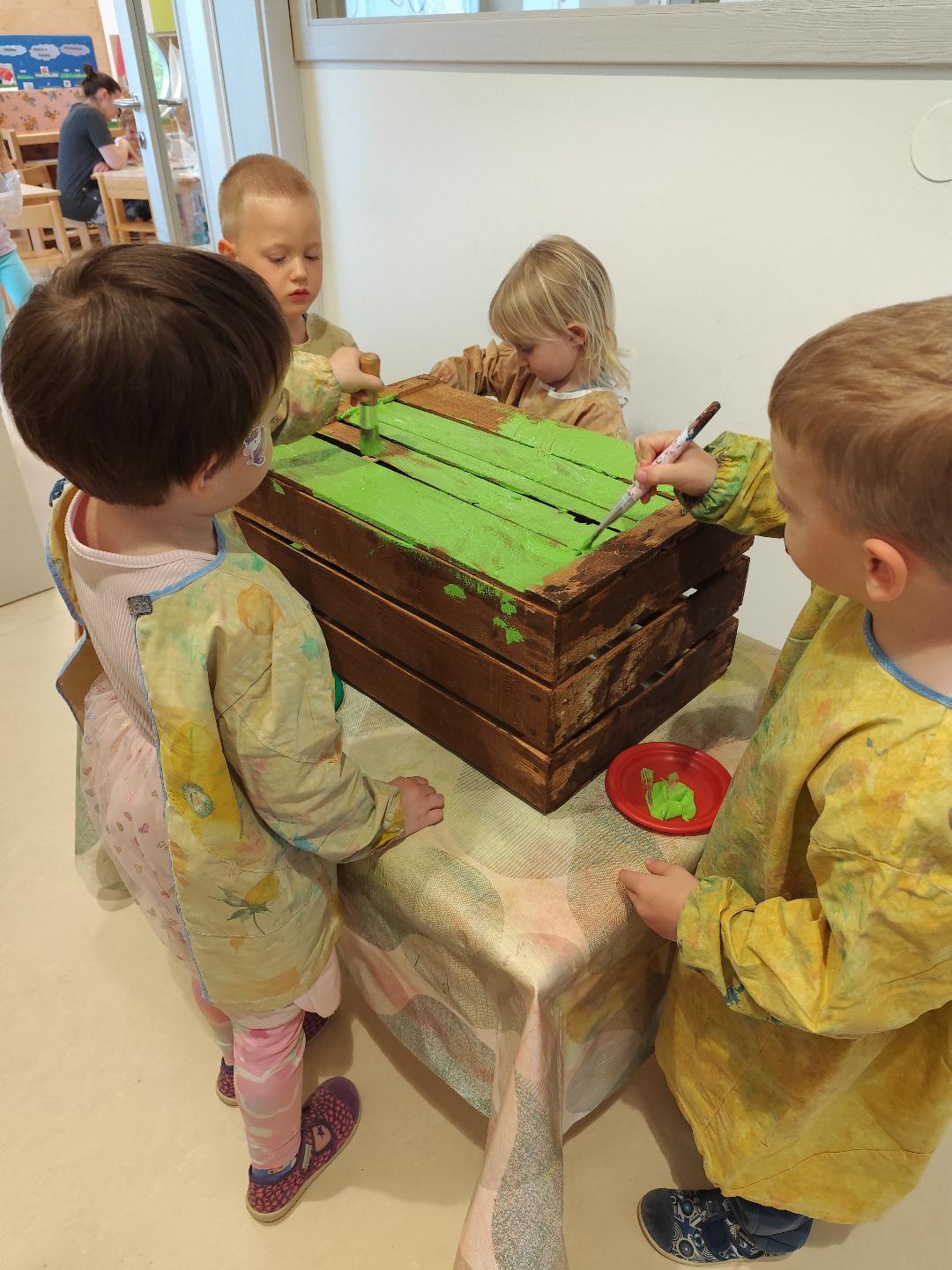 Čaka nas še projekt predelave plastičnih zabojev za shranjevanje škornjev, ki jih uporabljamo za našo pot v gozd.