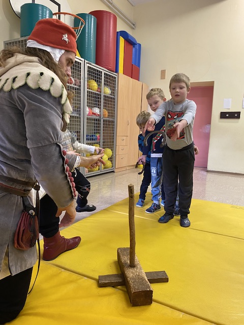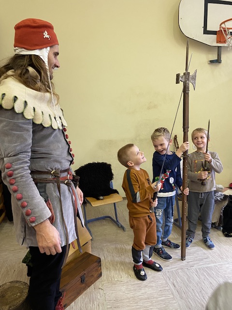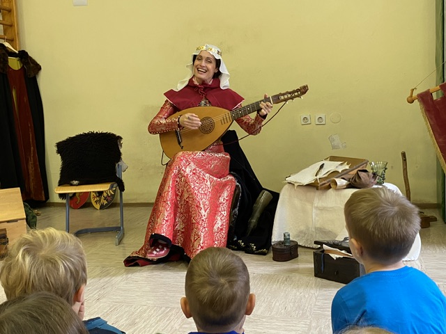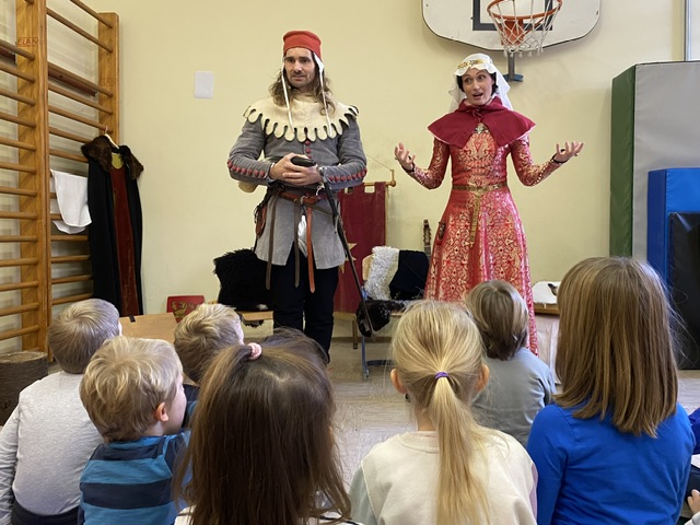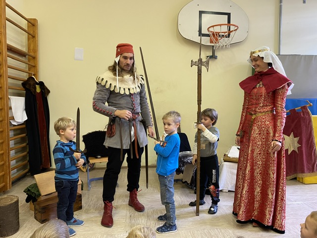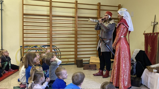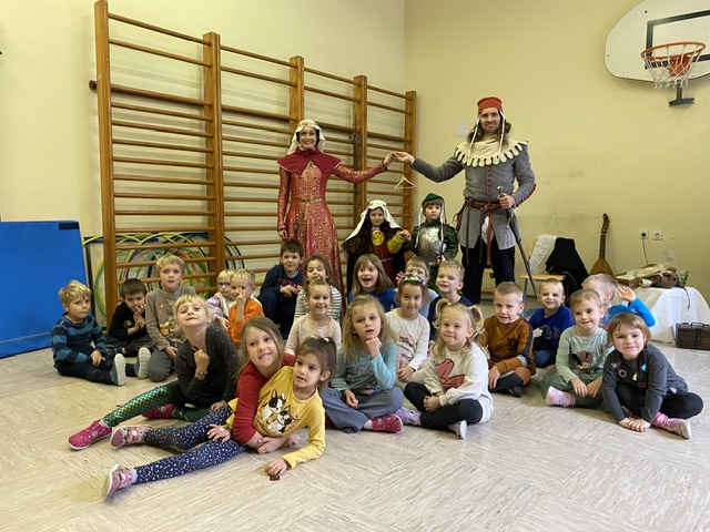 V okviru medgeneracijskega sodelovanja, sta nas v torek, 10. 12. 2024, počastila z obiskom dama Eleonora Rihemberška in njen vitez Ferdinand Rihemberški, iz častivrednega gradu Rihemberg. Predstavila sta nam grajsko življenje, njihove navade in običaje. V skupni otrok pa so iskali tudi bodoče oprode in mlade dame, katerim so postavljali izzive takratnega srednjega veka, kot naprimer: ciljanje šaličic z kostanjem, met podkve, ples in mečevanje. Dama Eleonora pa nam je tudi zapela.