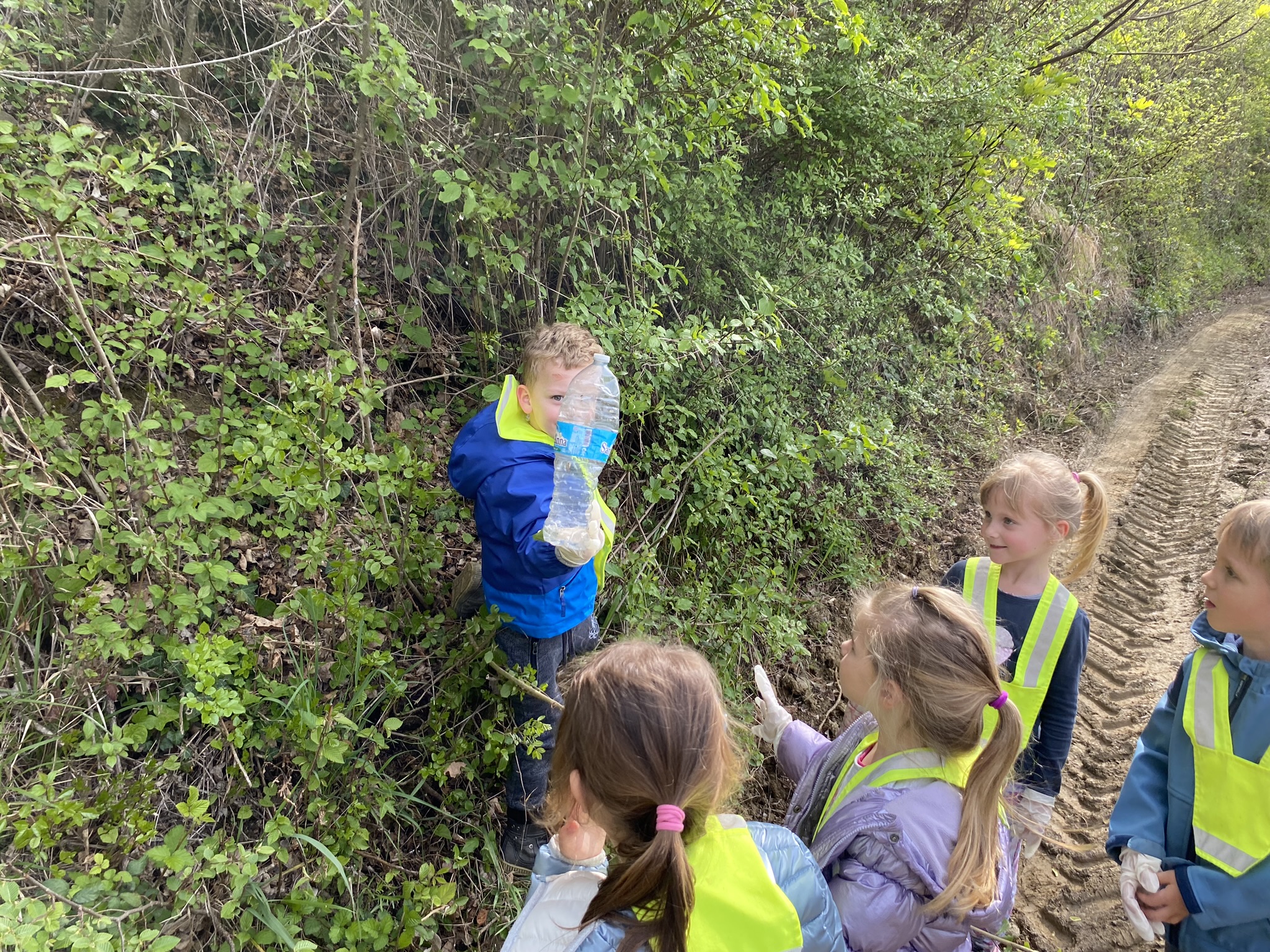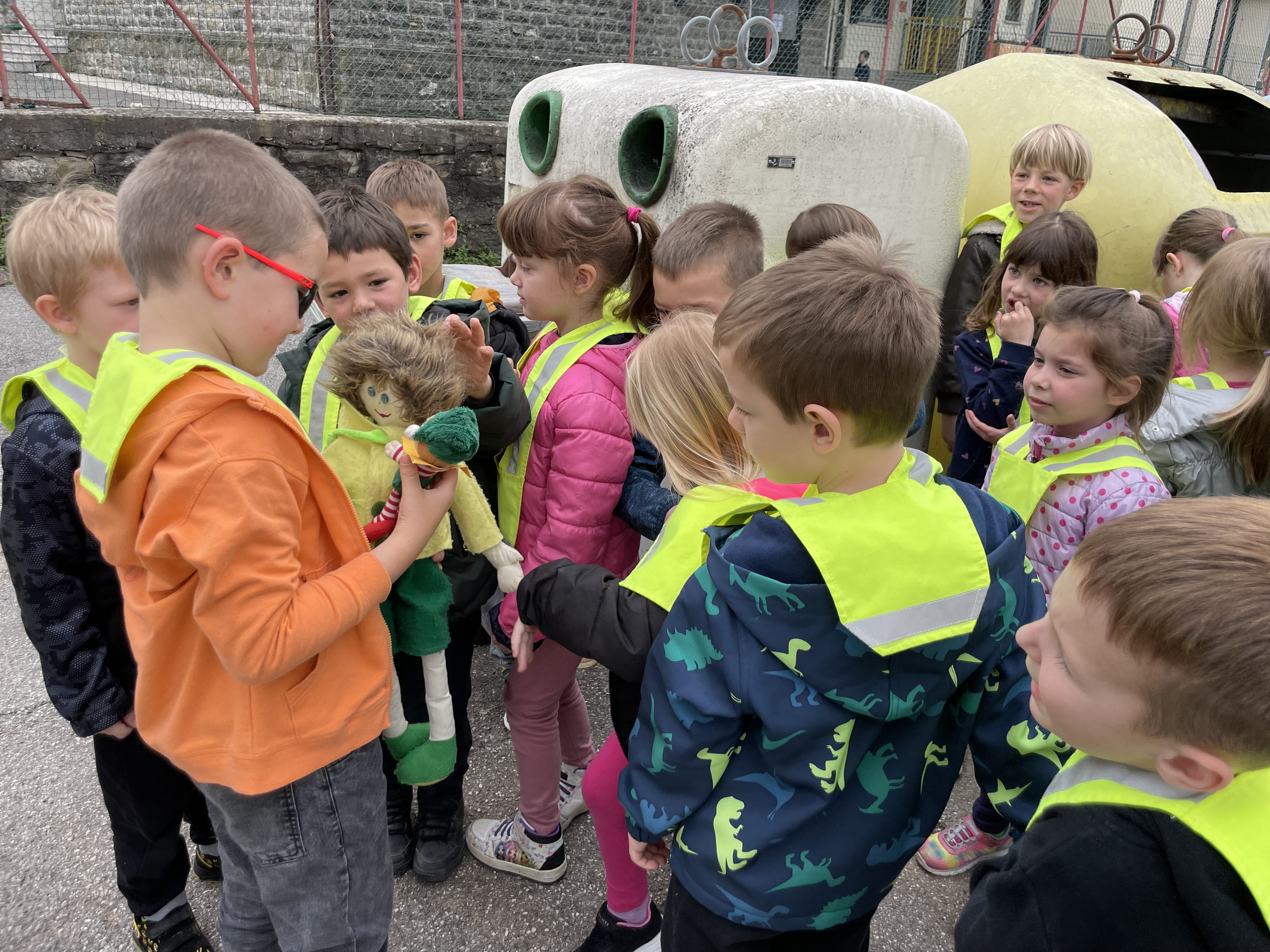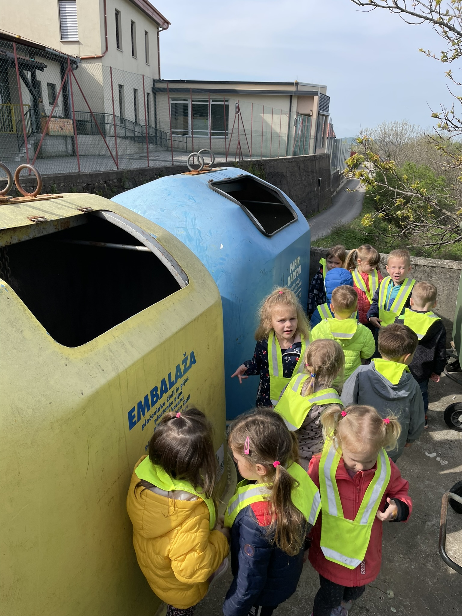 Z otroki smo najprej spoznavali ukrepe za zmanjšanje količine odpadkov, opazovali ekološke otoke v bližini vrtca ter izvedli čistilno akcijo.