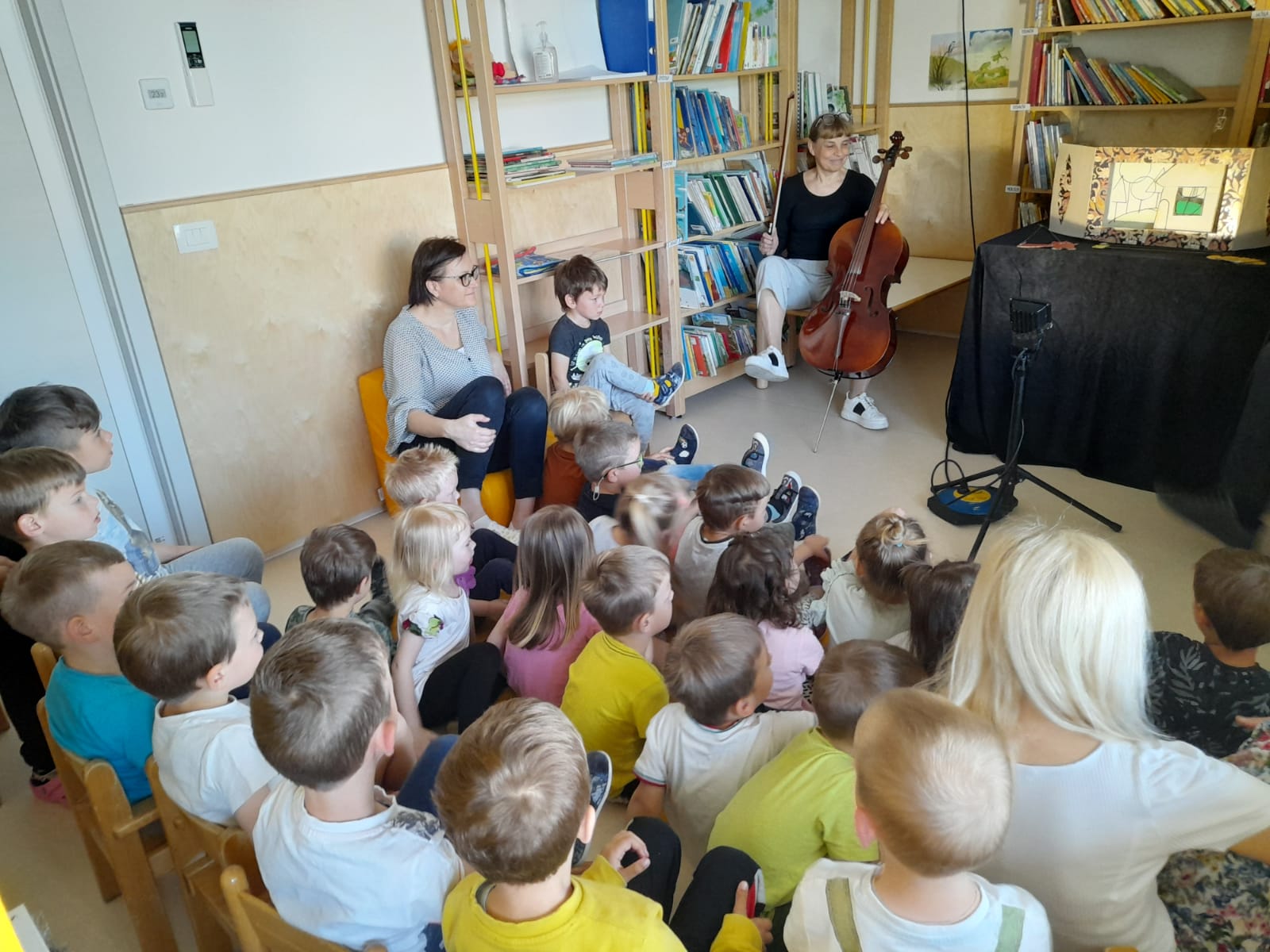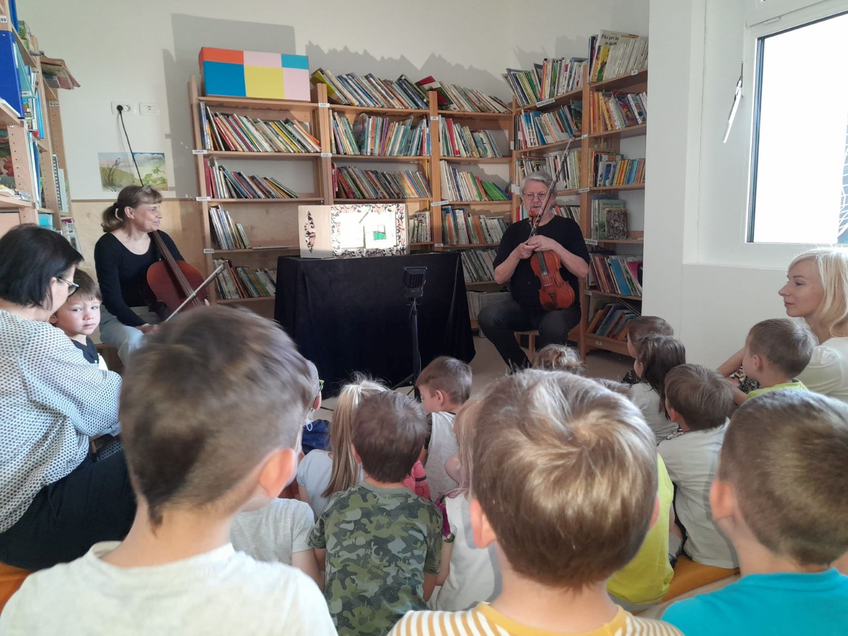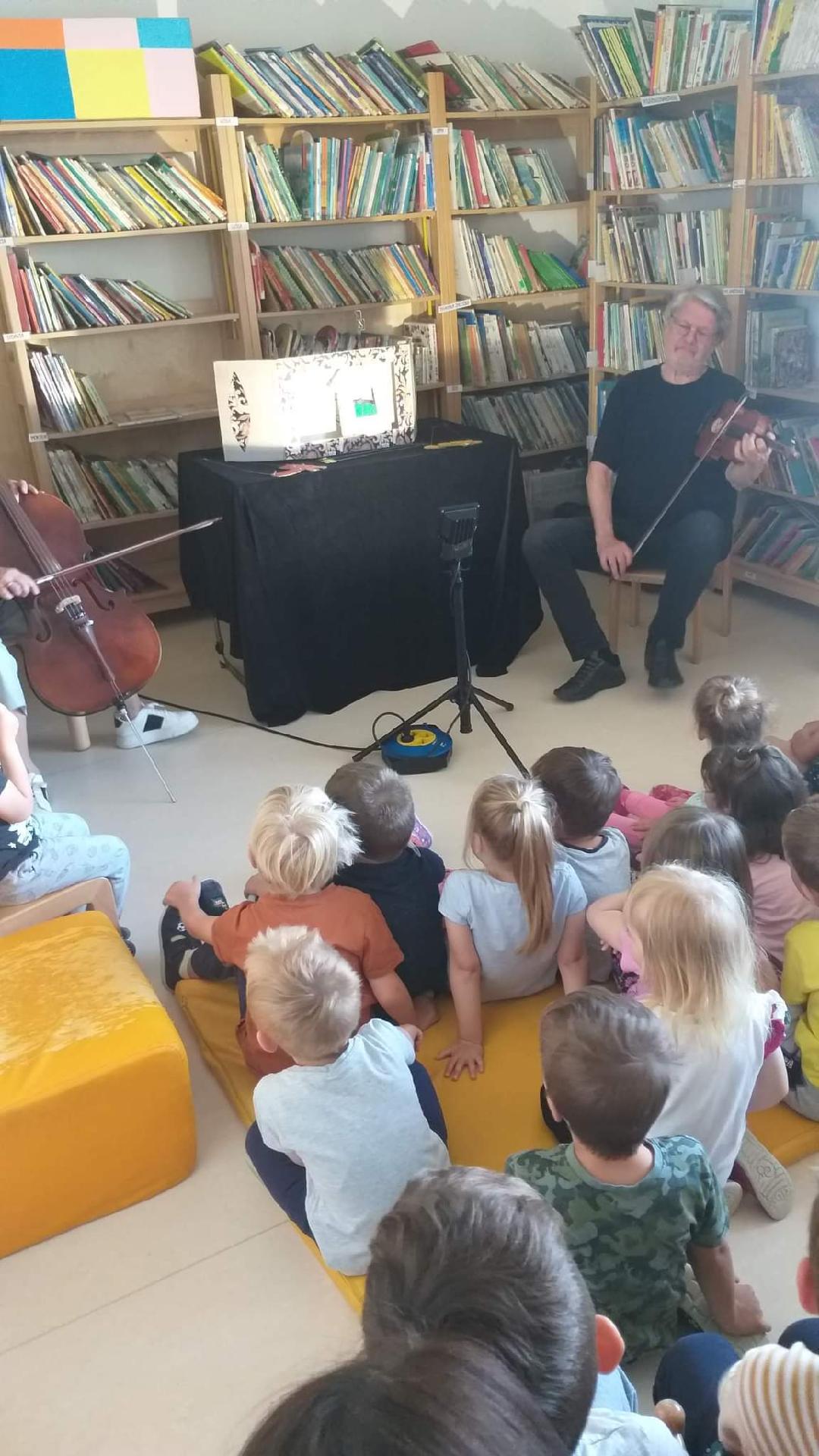 Otroci iz skupin Krokodili in Pikapolonice so si danes ogledali lutkovno predstavo Zverinice iz Rezije. Jelena Sitar Cvetko in Igor Cvetko sta pripravila bogat program. Otroci so tako spoznavali dva instrumenta, in sicer violino in violončelo, ter prepoznavali njune visoke in nizke tone. Sodelovali so z avtorjema ob glasbi in plesu ter prisluhnili rezijanski ljudski pravljici Zverinice iz Rezije.