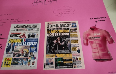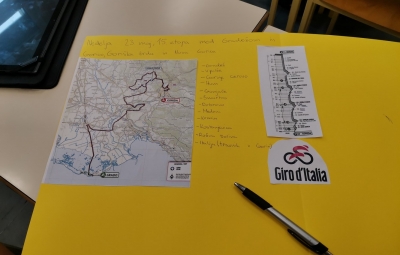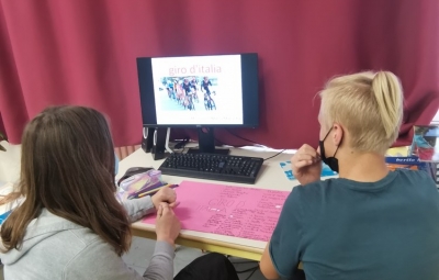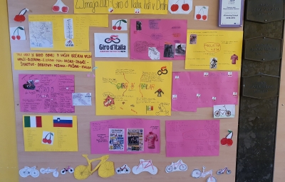 - Pri izbirnem predmetu italijanščina smo učenci 7. in 8. razredov nekaj ur posvetili kolesarskemu spektaklu, Giru d'Italia, ki se je 23. maja odvijal tudi v Brdih.