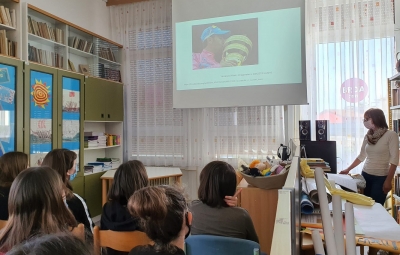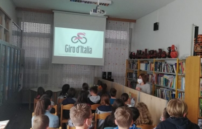 - Knjižničarka Ivanka Škerlj je predstavila zgodovino Gira od samega začetka pa vse do danes. Opisala je potek Gira, predvsem pa se je osredotočila na 15. etapo 104. kolesarske dirke, ki je peljala skozi Brda in Novo Gorico. Predstavila je tudi slovenske kolesarje, ki so nastopili na Giru ter njihove dosežke. Predstavitvi so prisluhnili učenci 2. in 3. triade znotraj pouka športa.